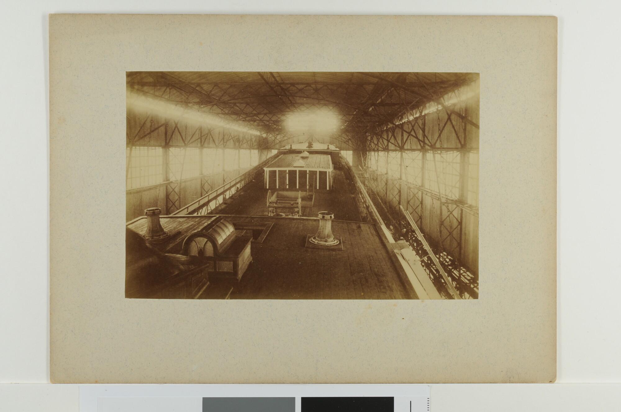 De stalen bark "Columbus" in aanbouw bij scheepswerf 'De Boot' te Amsterdam. Gezicht op het bovendek.