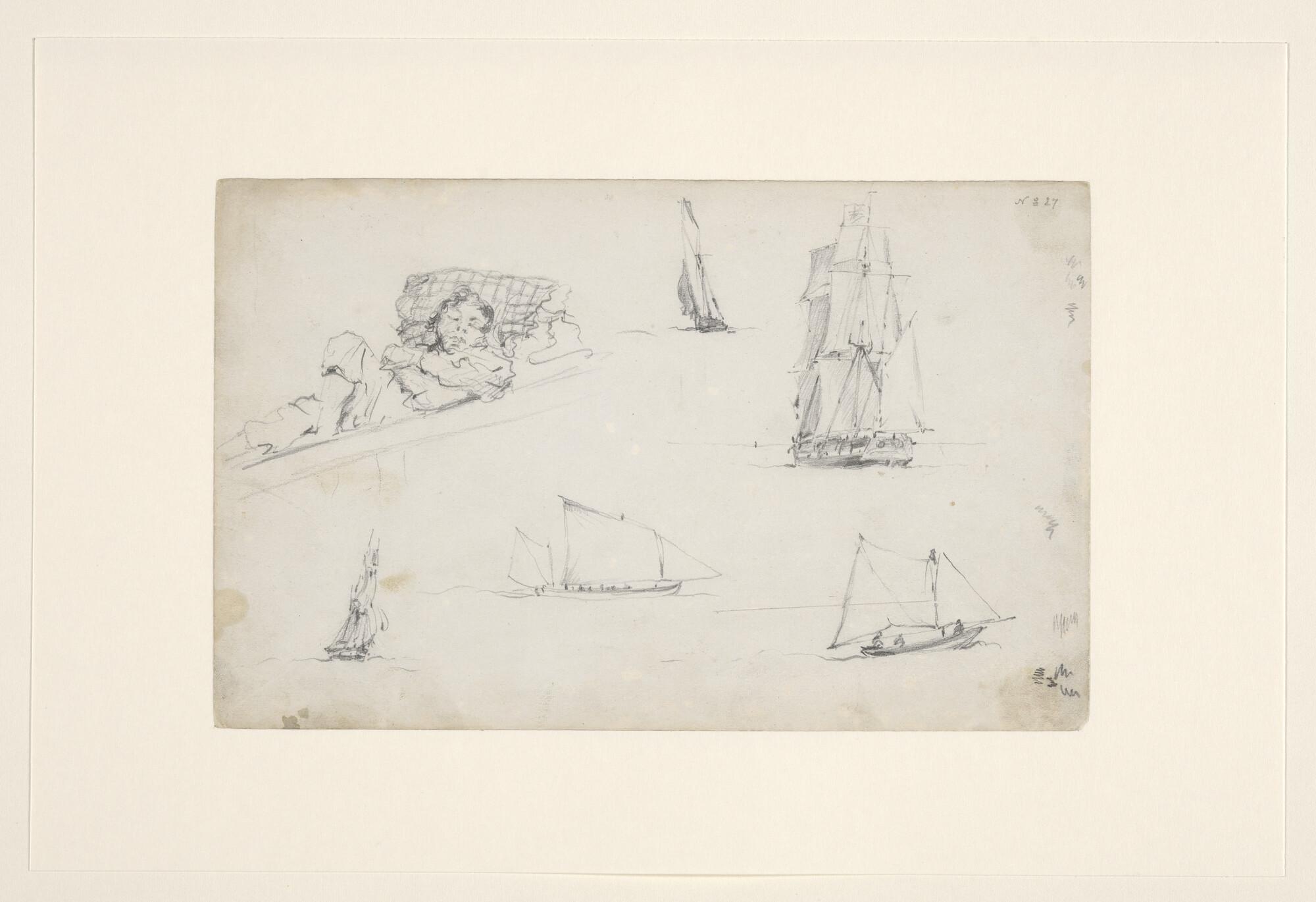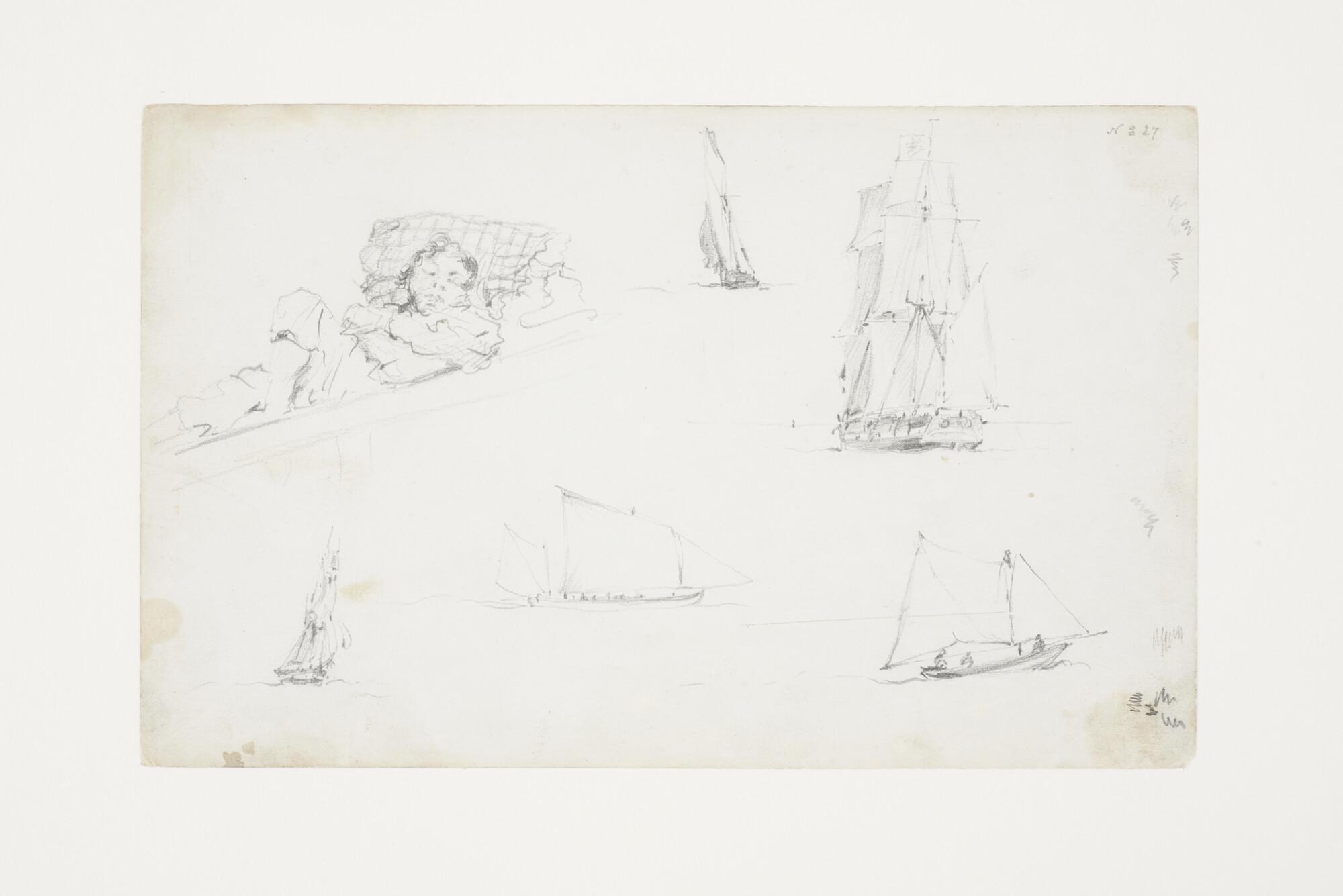 Studie schepen en een slapende matroos.