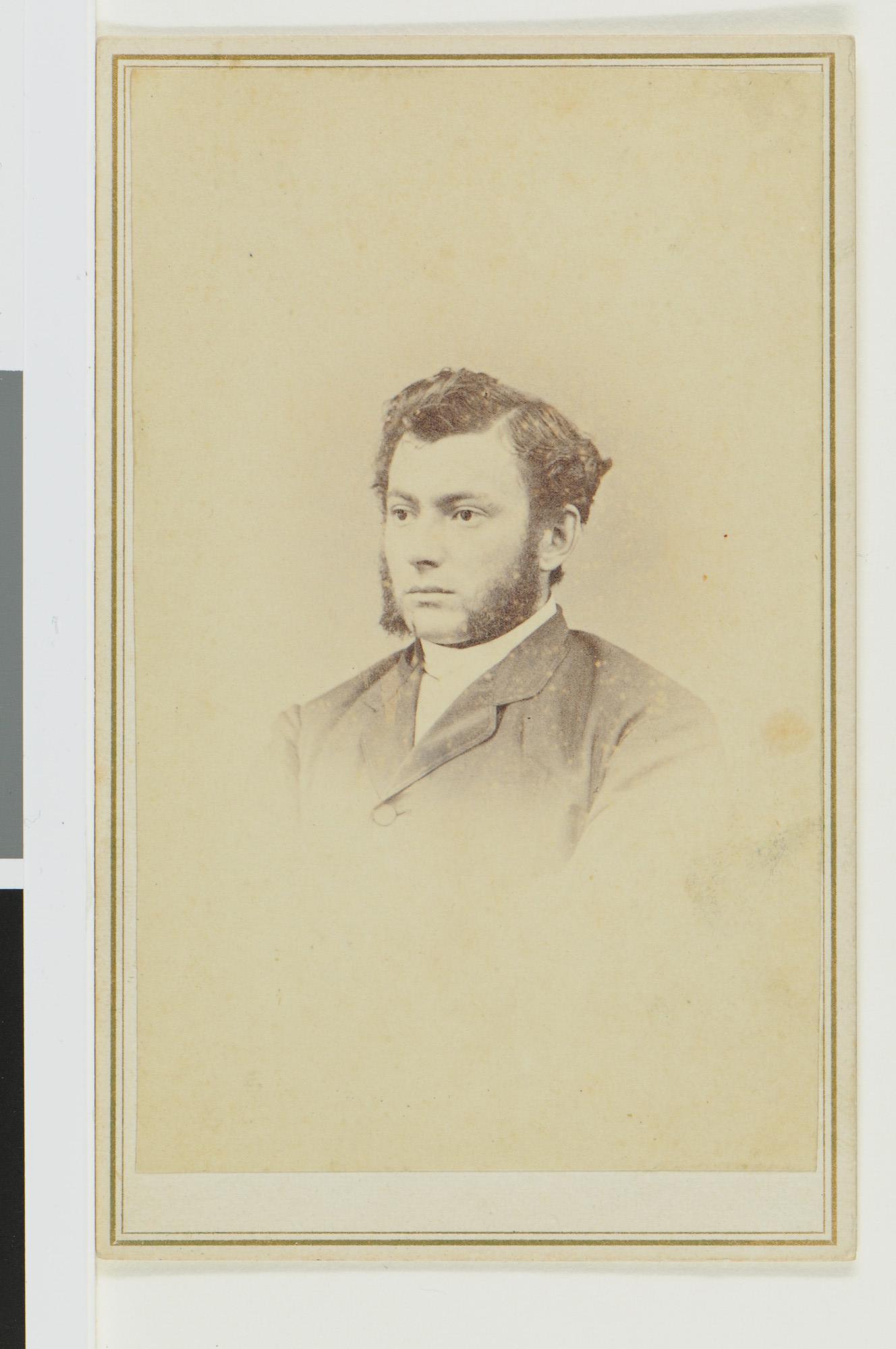 Carte-de visite. Zwart-wit portretfoto van A.A. Pistorius, Yokohama, 13 juni 1869.