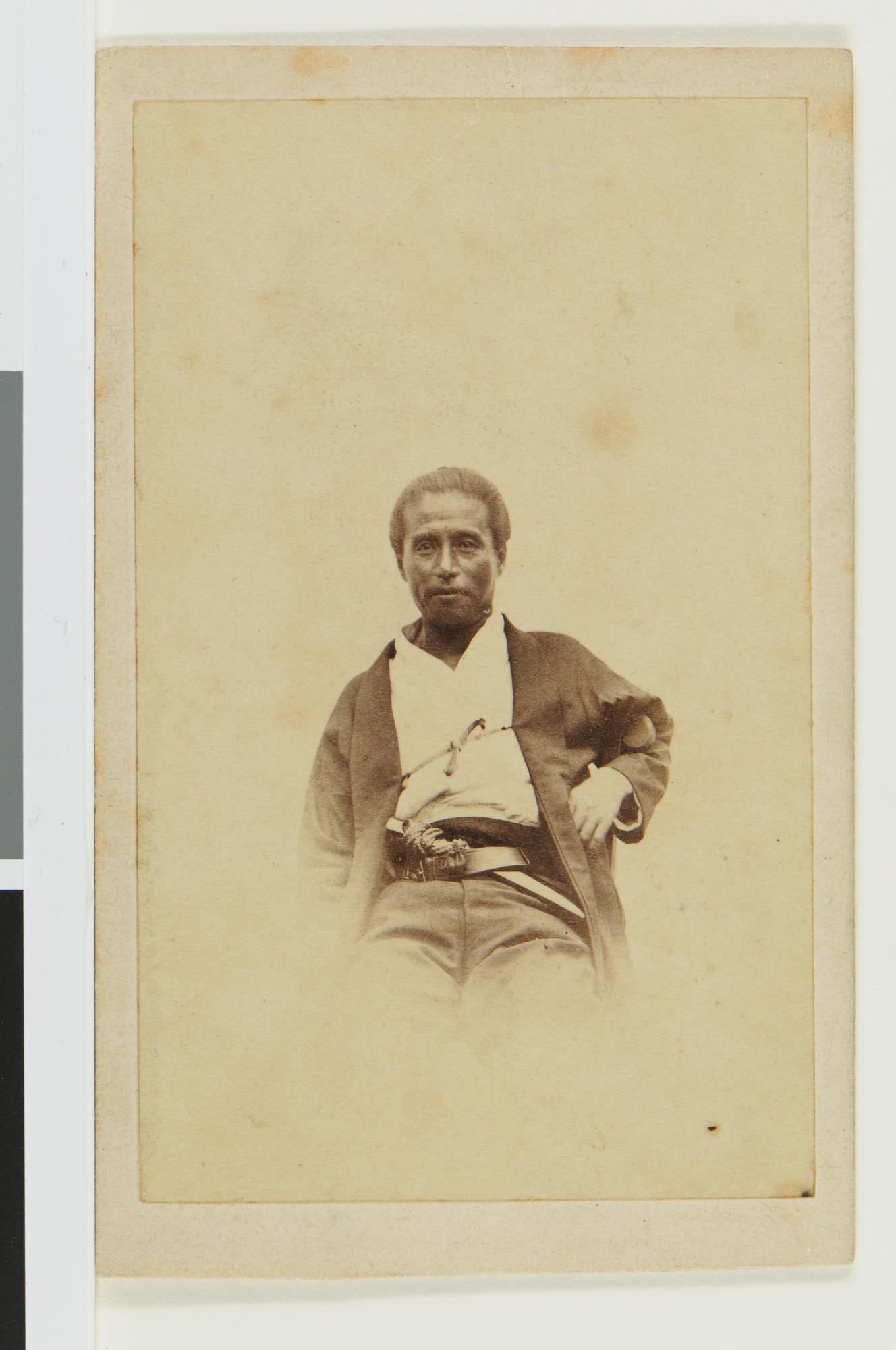 Carte-de-visite. Zwart-wit portretfoto van (Kaos?) Katsu Kaishū, Awa-no-Kami (= Prins van Awa), september 1867.