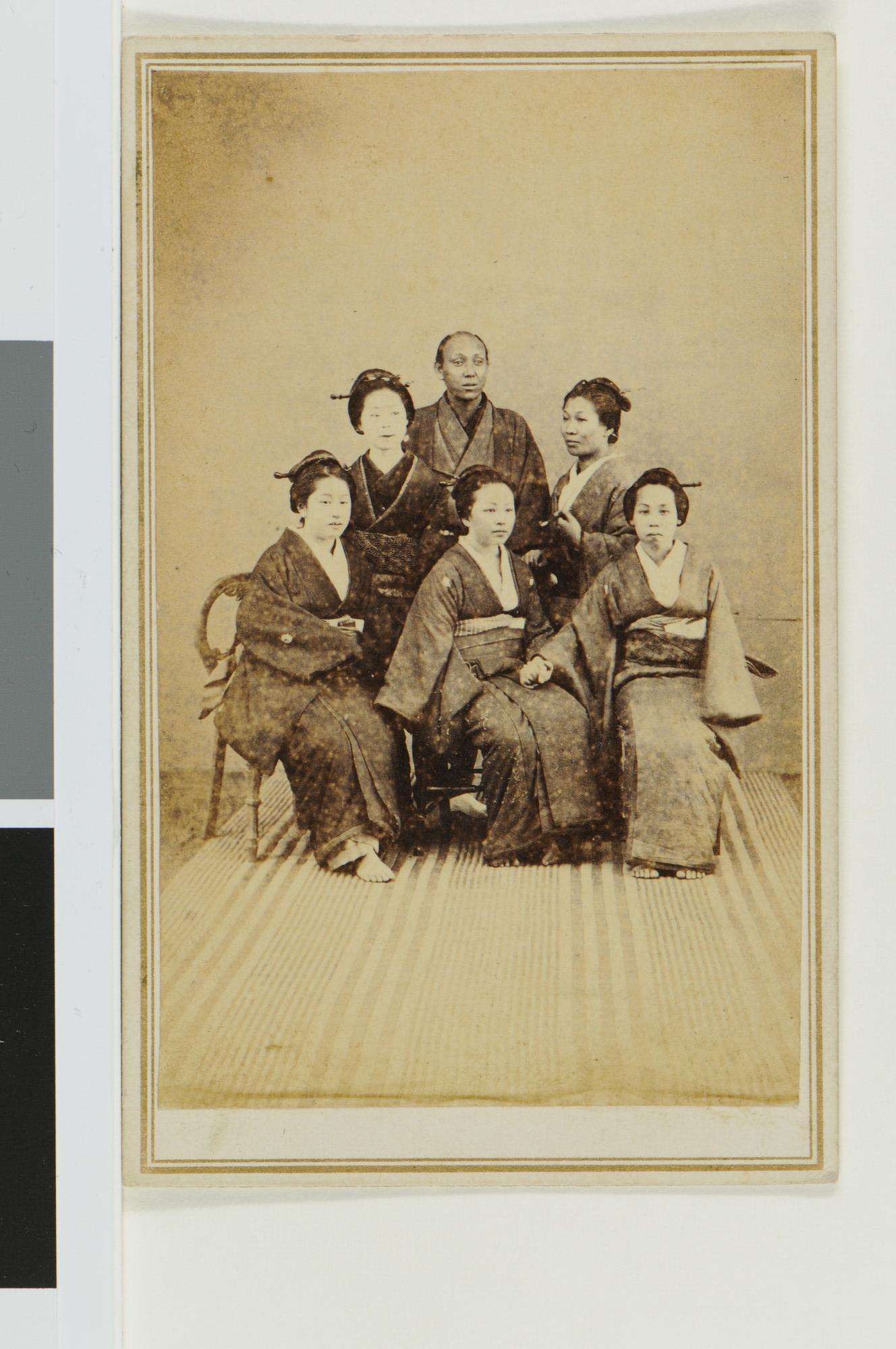 Familieportret bestaande uit vijf vrouwen en een man