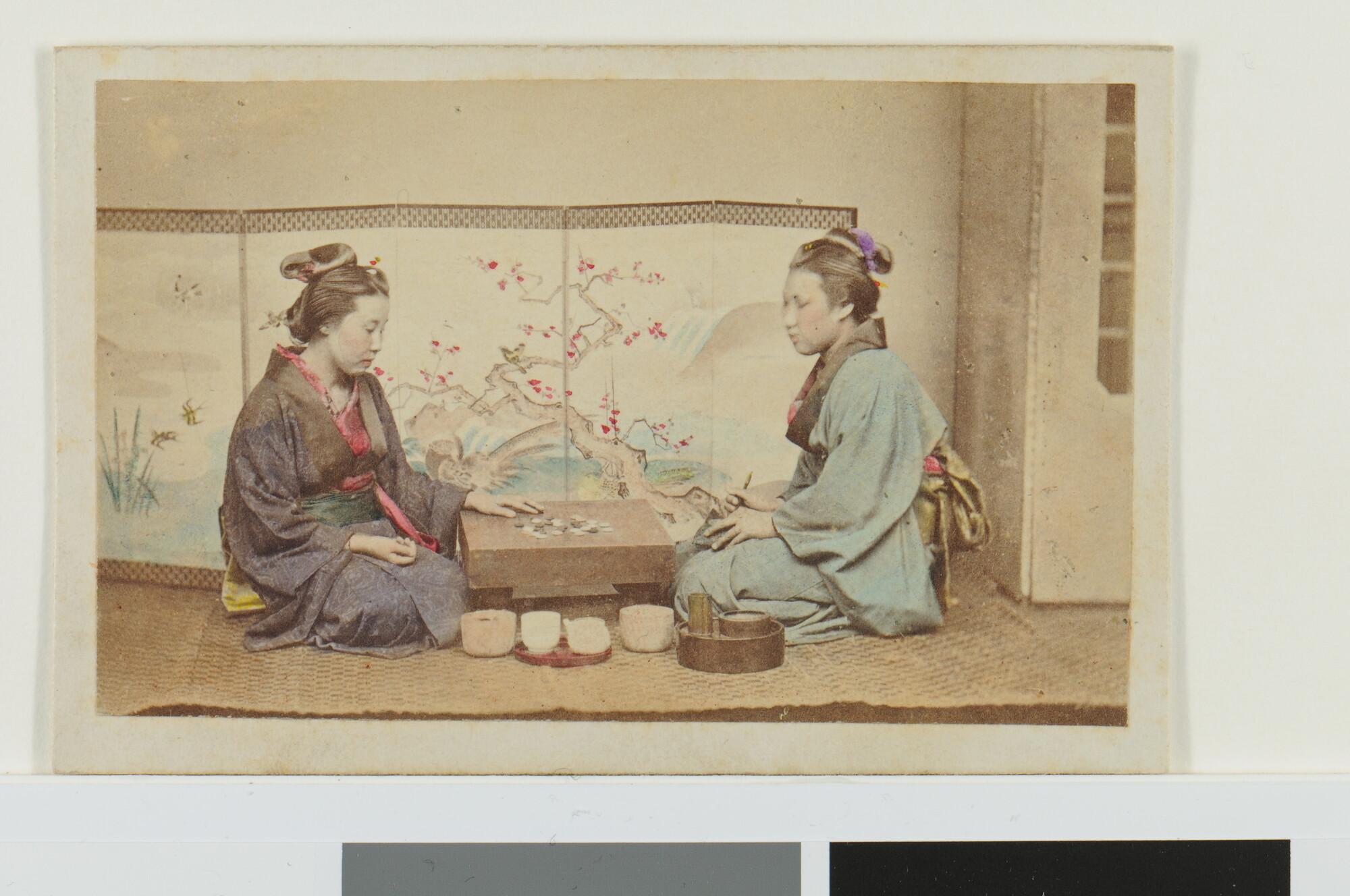 Groepsportret van twee vrouwen bezig met een spelletje.