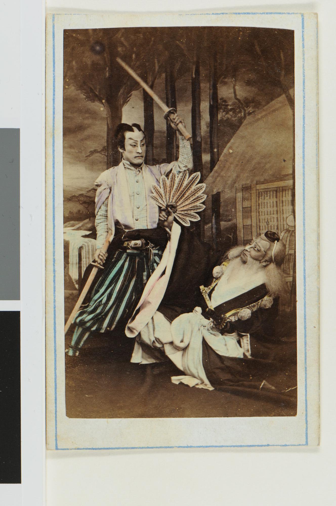 Groepsportret van twee toneelspelers.