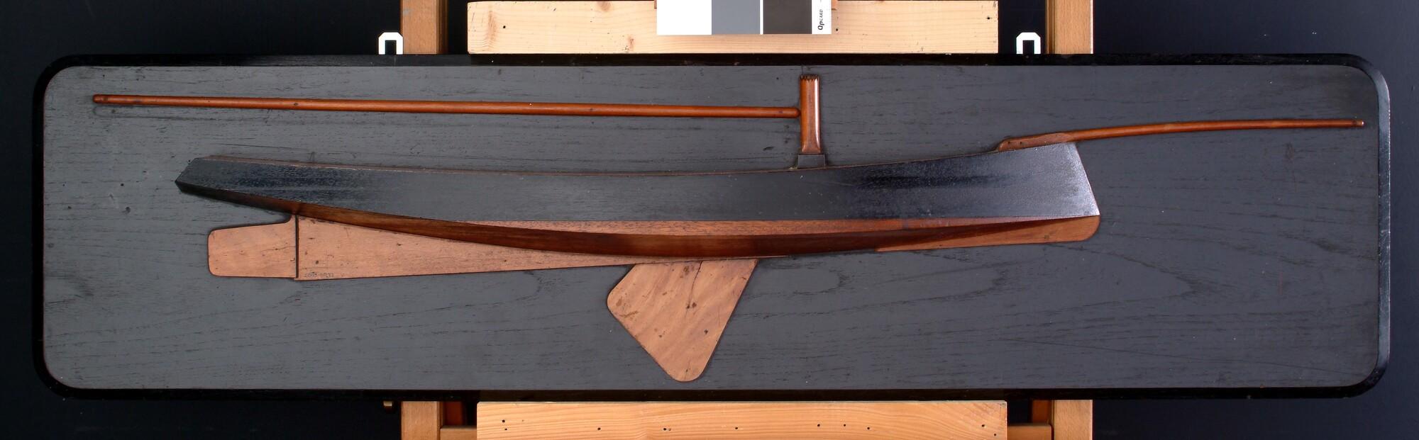 Halfmodel van een zeiljacht met een midzwaard.