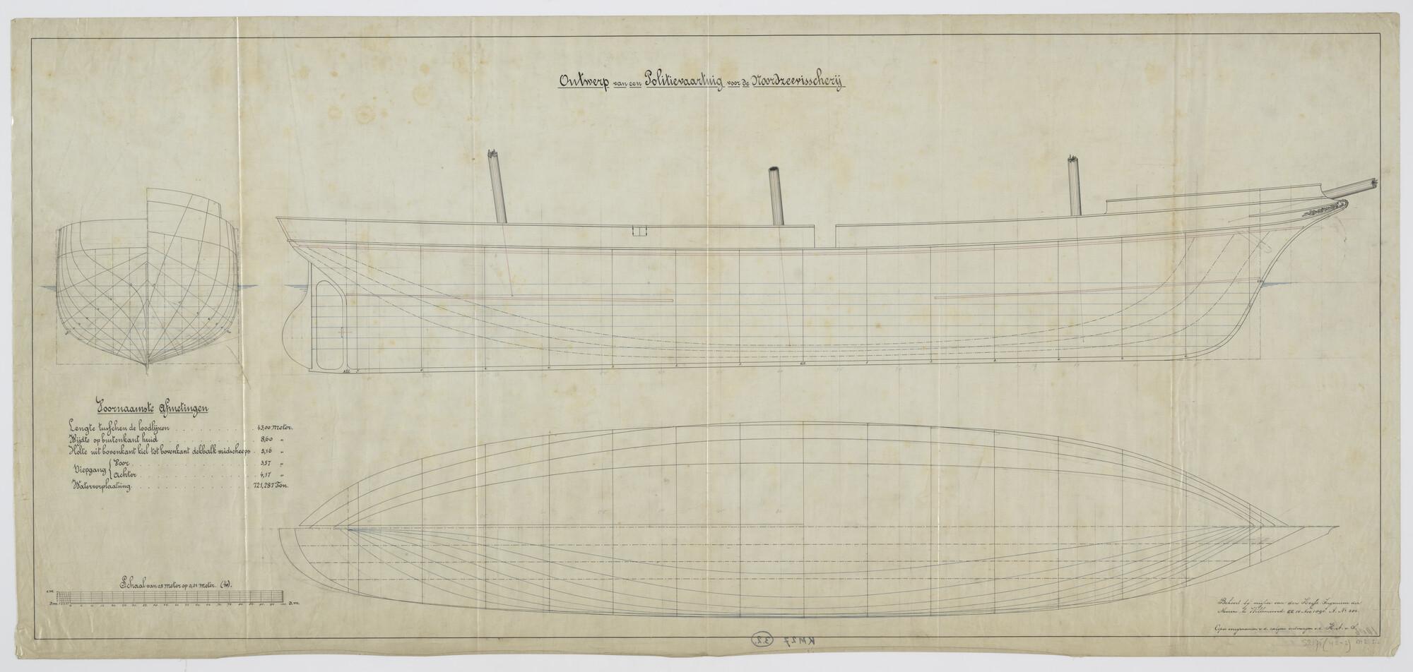 Lijnentekening en spantenraam van Hr.Ms. 'Zeehond' [ontwerp]