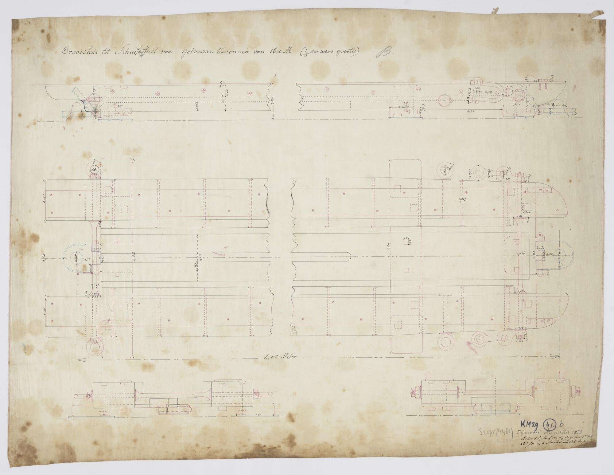 Doorsneden van de draaislede tot schuifaffuit voor het getrokken kanon 16 cm (schaal 1:5).