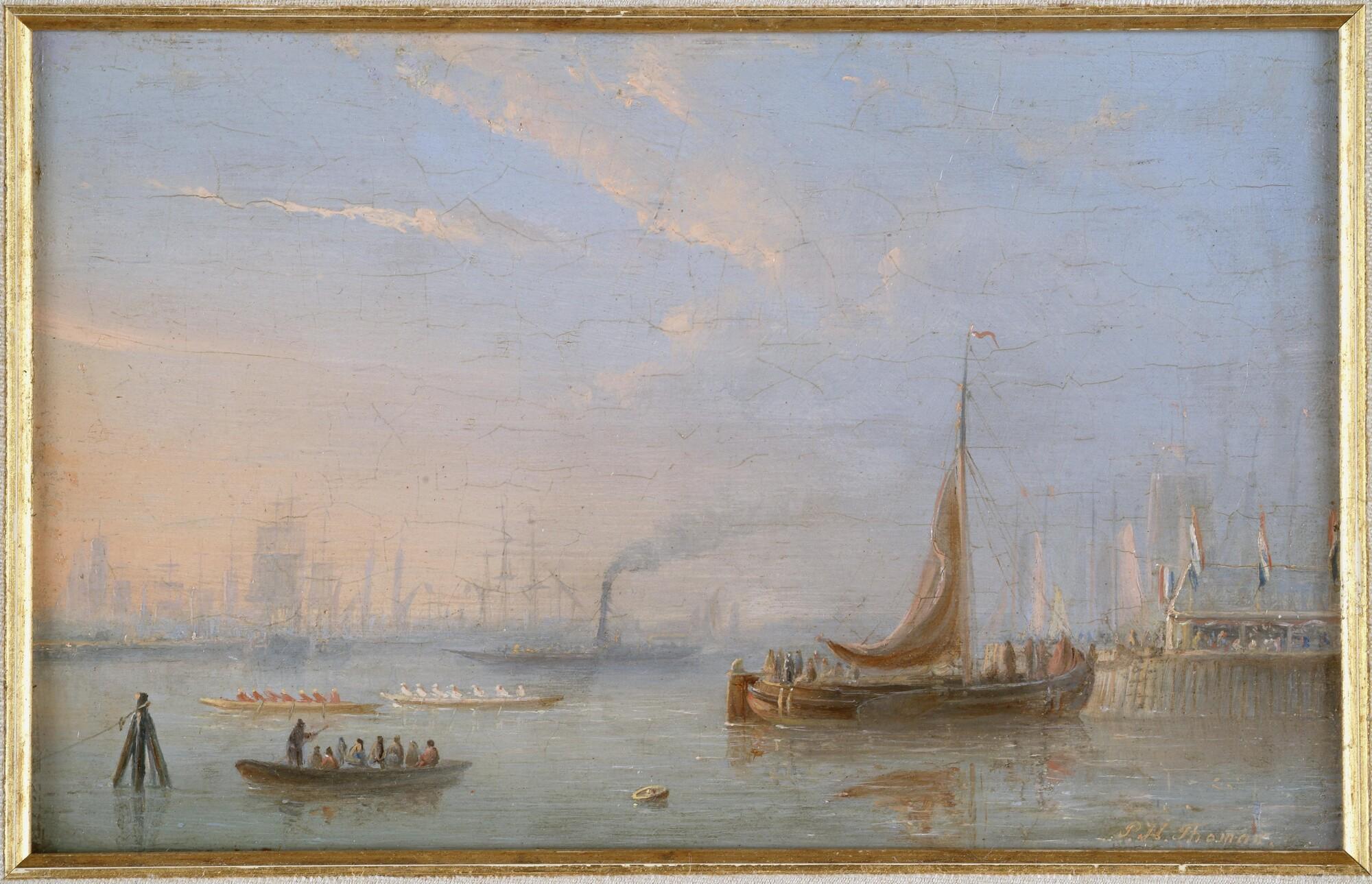 Roeiwedstrijd op het IJ te Amsterdam, vermoedelijk de wedstrijden die plaatsvonden in september 1846, de eerste van de Koninklijke Nederlandsche Yacht Club.