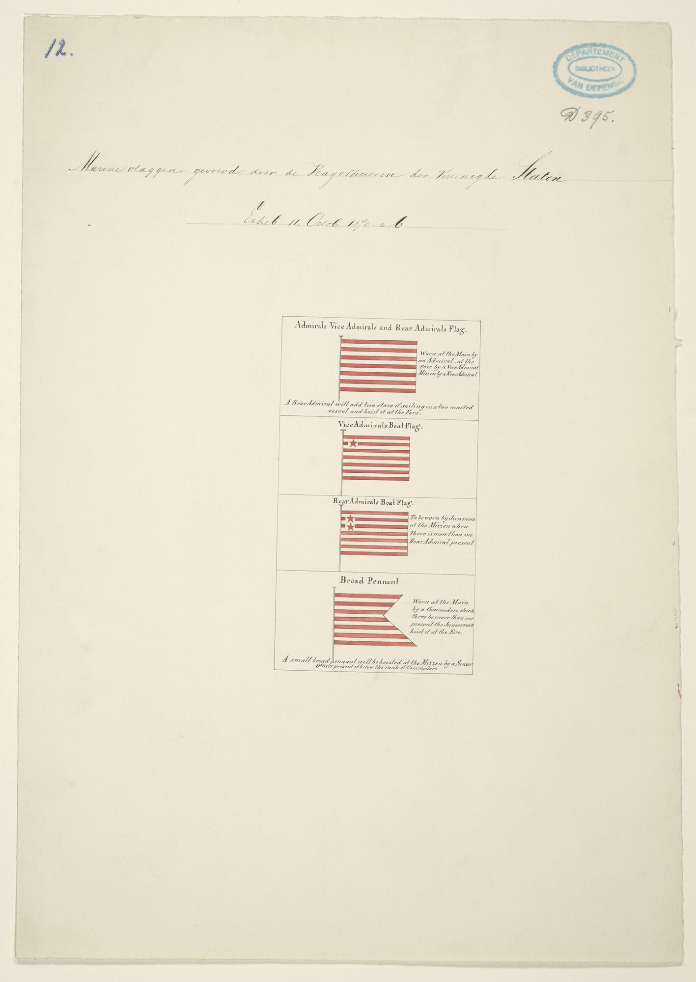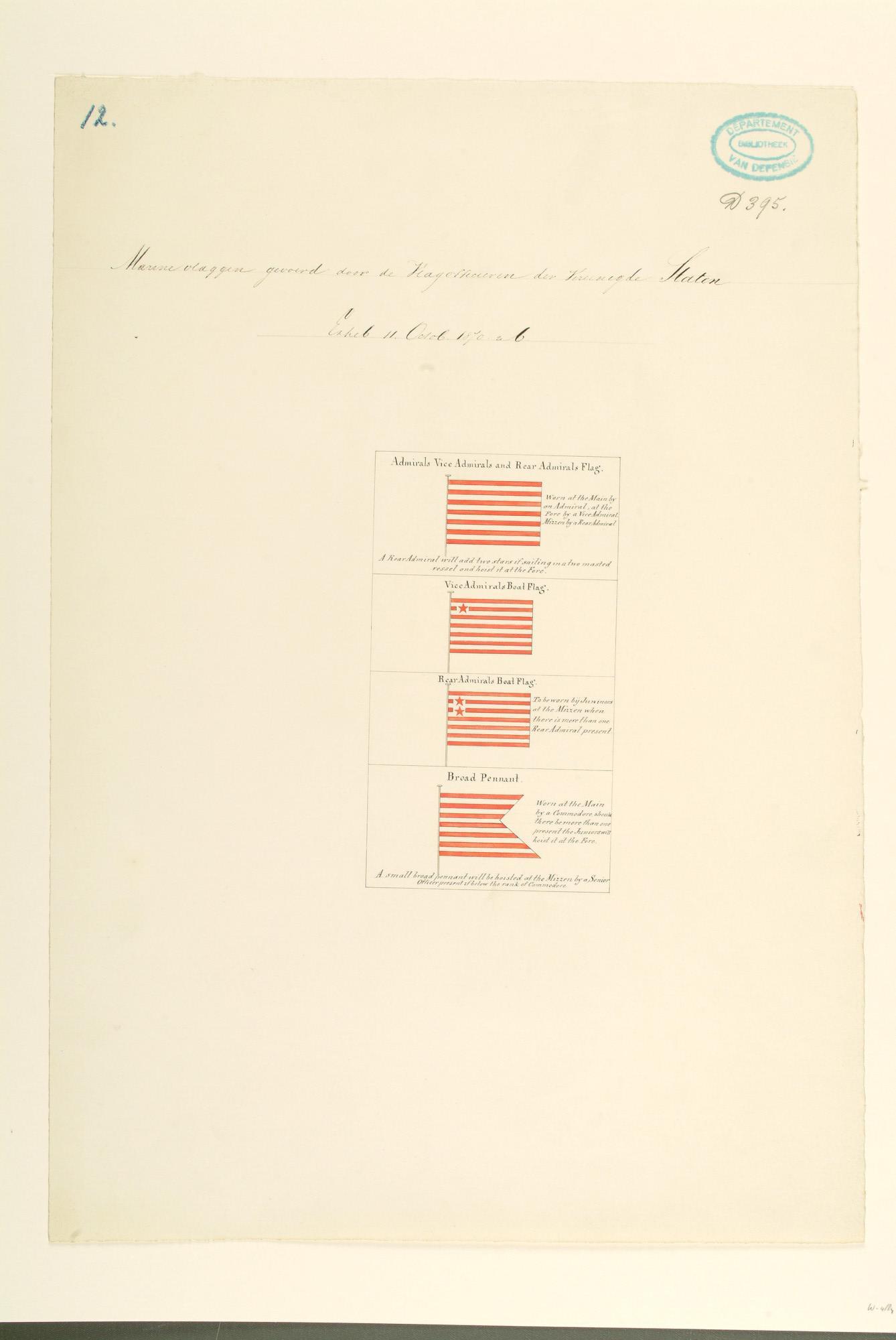 Vlaggenkaart met vier vlaggen, gevoerd door vlagofficieren van de Verenigde Staten