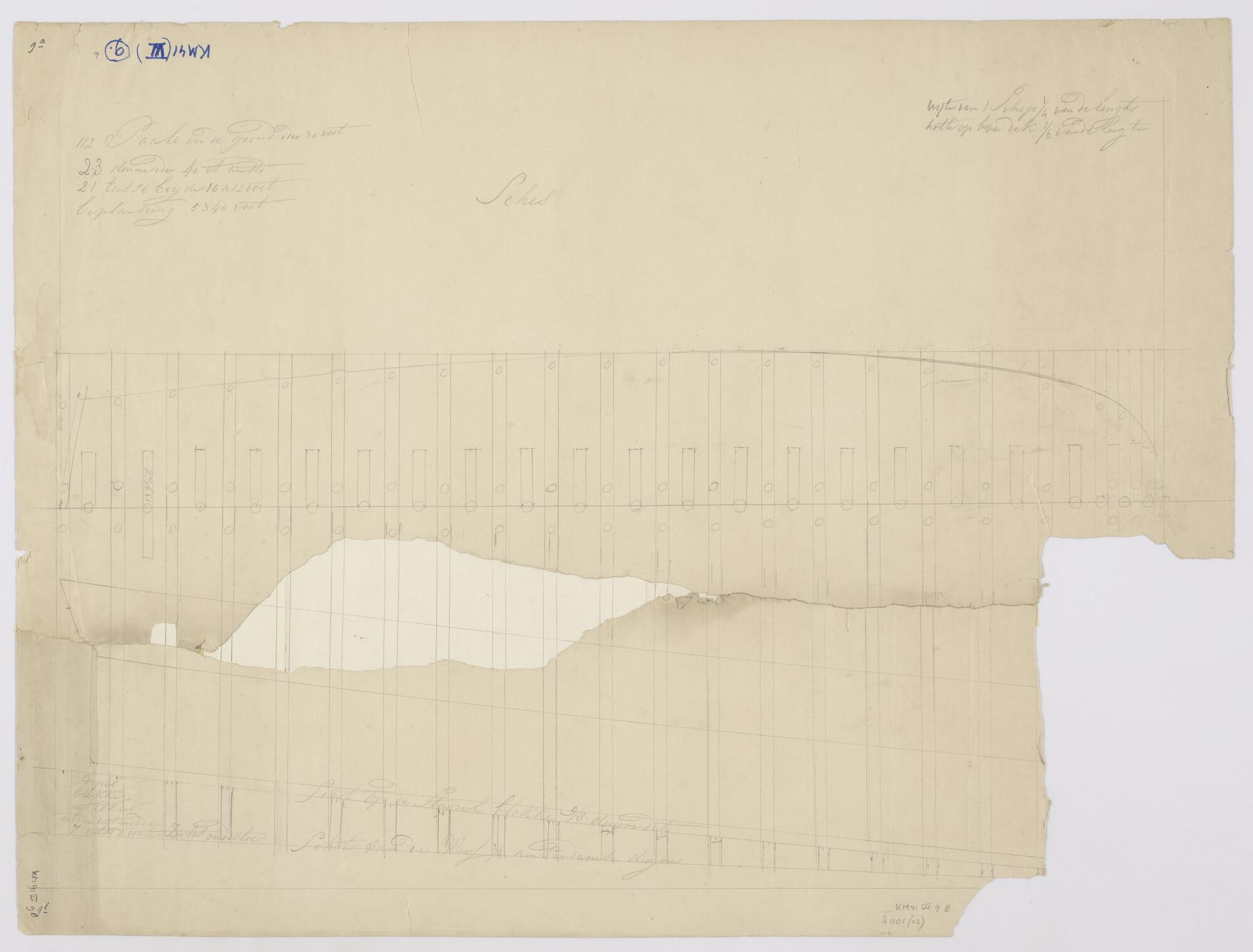 Plan voor een scheepshelling met bouwkundige aanwijzingen