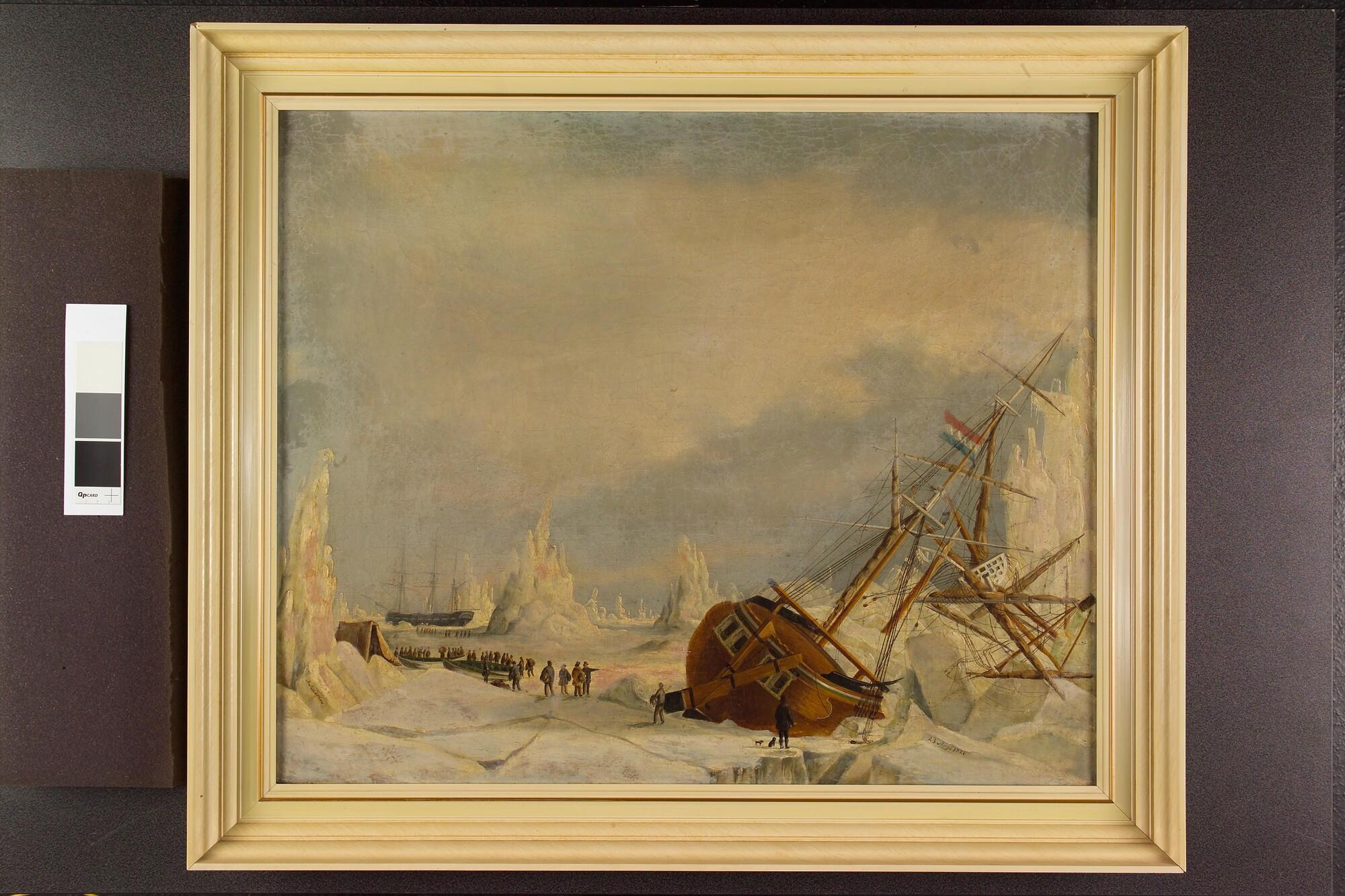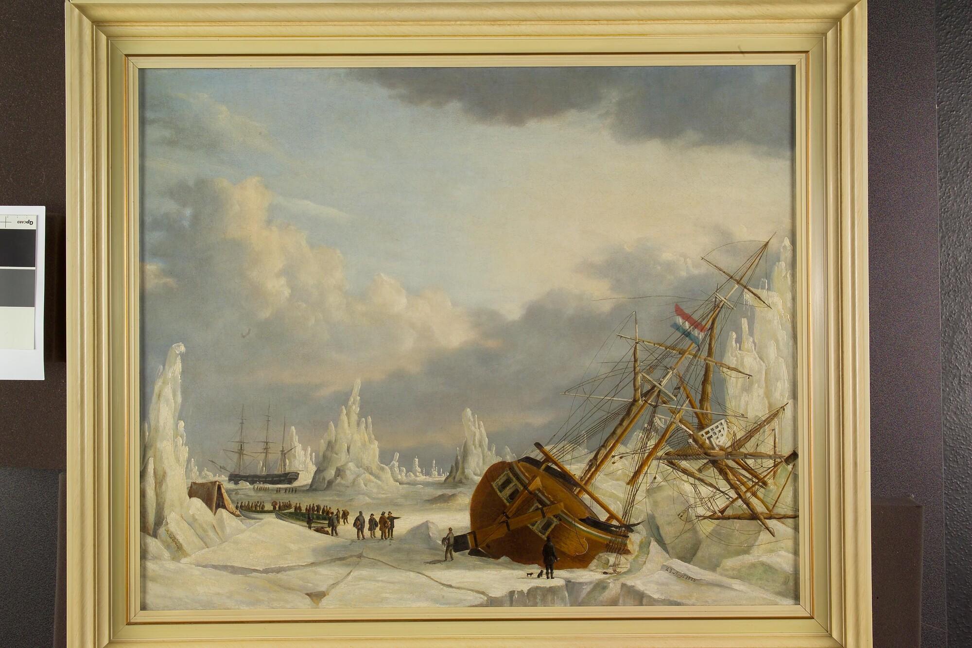 Het galjootschip Harlingen in het ijs in Straat Davis, 1826