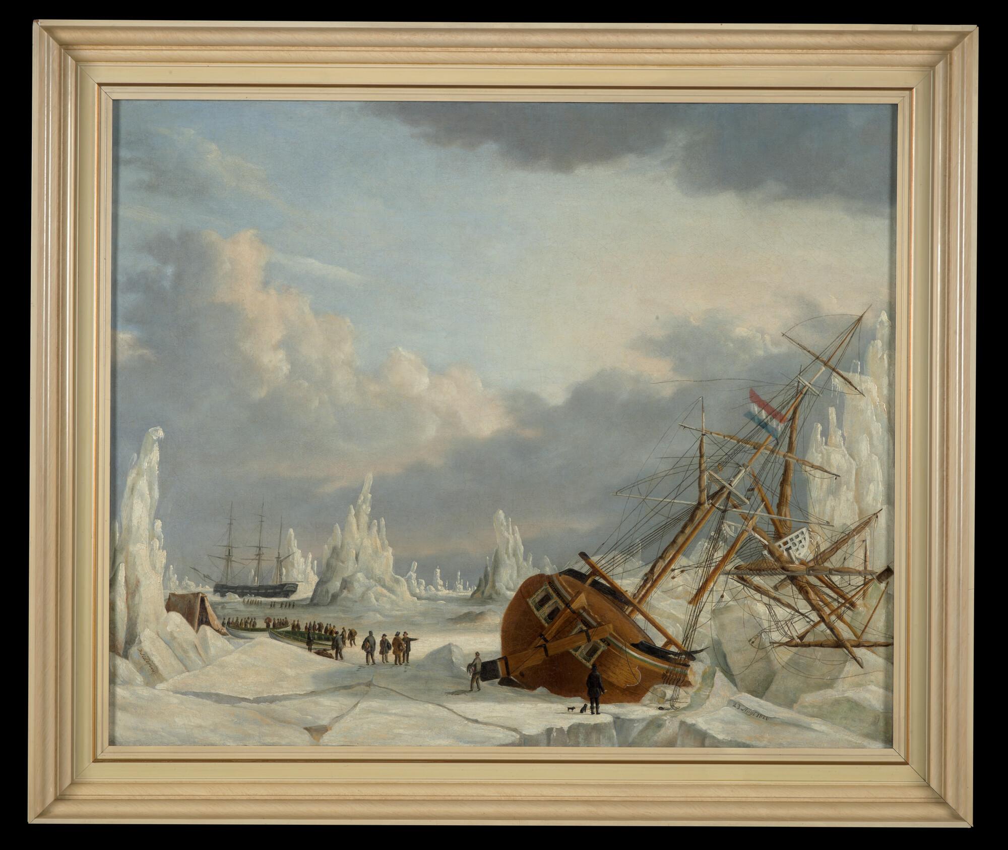 Het galjootschip Harlingen vastgevroren in het ijs in Straat Davis, augustus 1826.