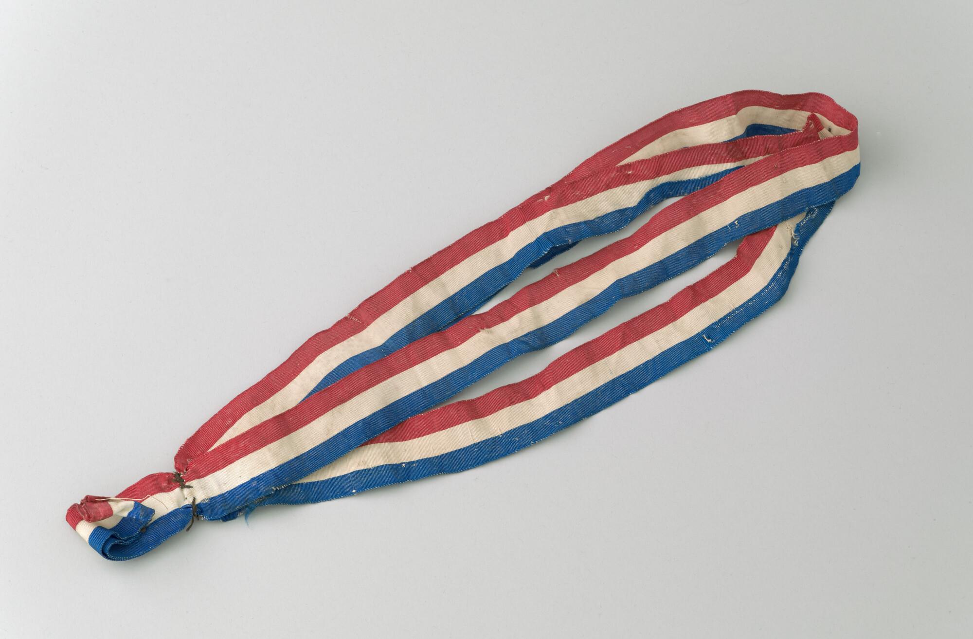 Rood-wit-blauw lint, waarschijnlijk als sjerp gedragen.
