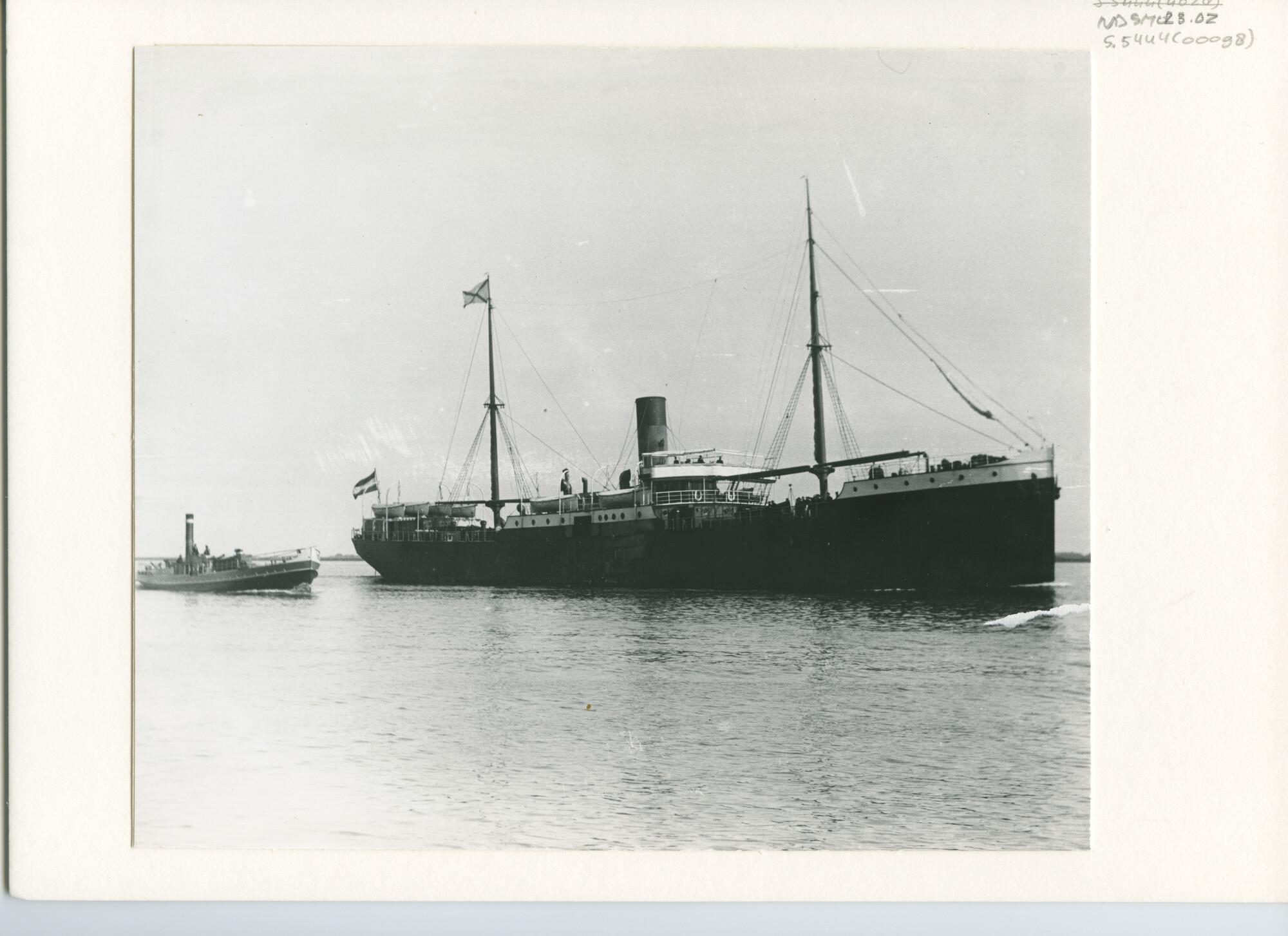 Het vrachtschip ss. "Soembawa", gebouwd door de Nederlandsche Scheepsbouw Maatschappij in opdracht van de Stoomvaart-Maatschappij "Nederland" (SMN). [Reproductiefoto]