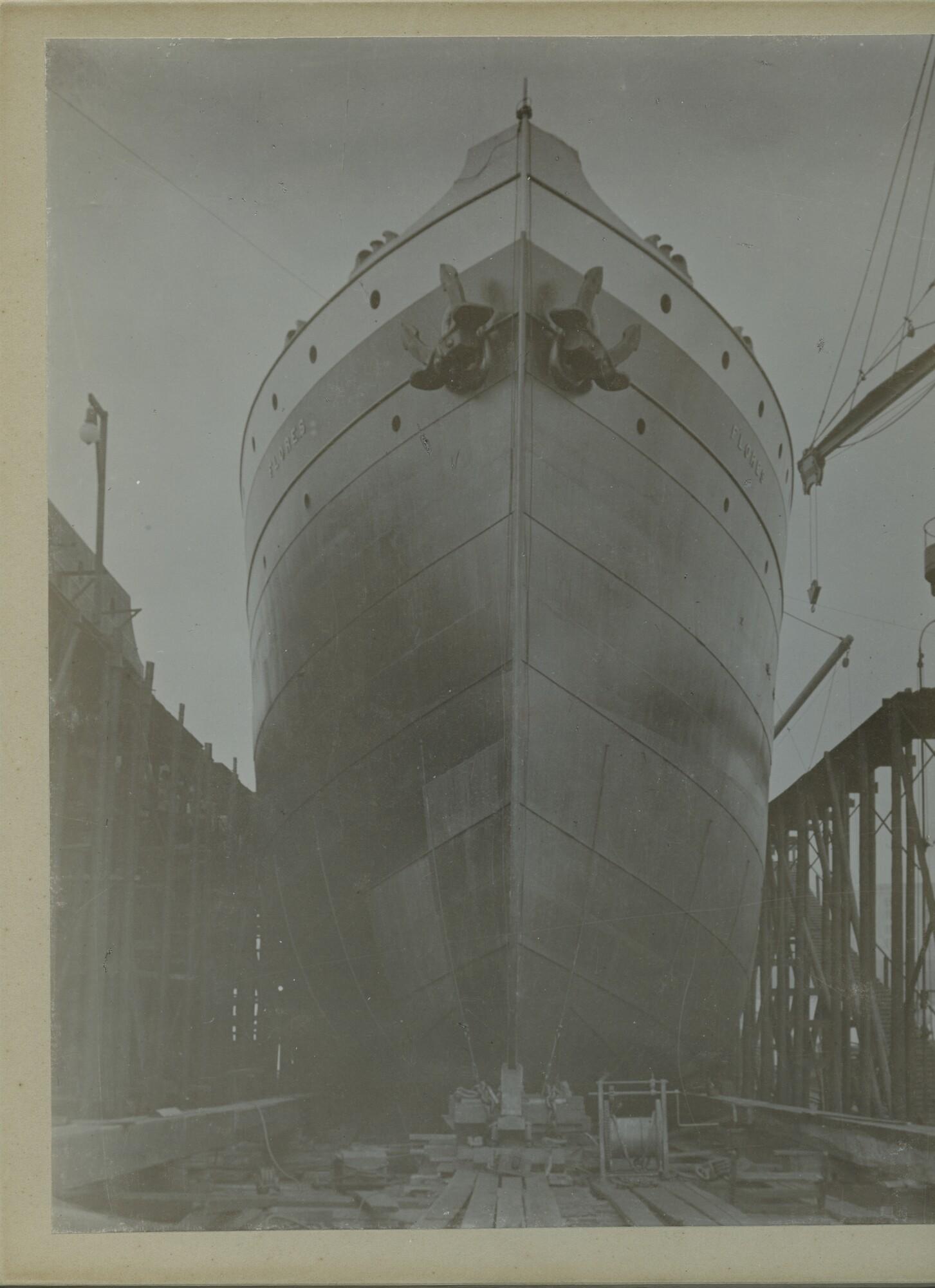 Foto van het vrachtschip ss. Flores in aanbouw door de NSM voor de SMN