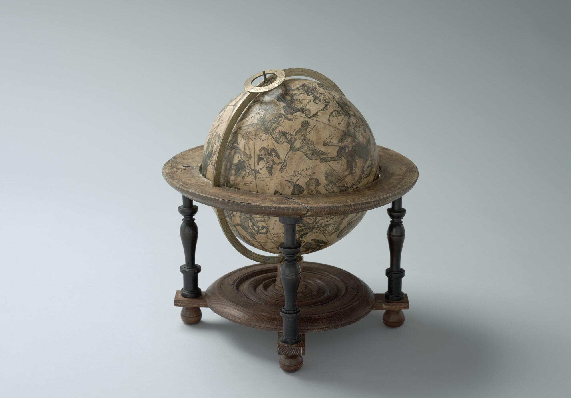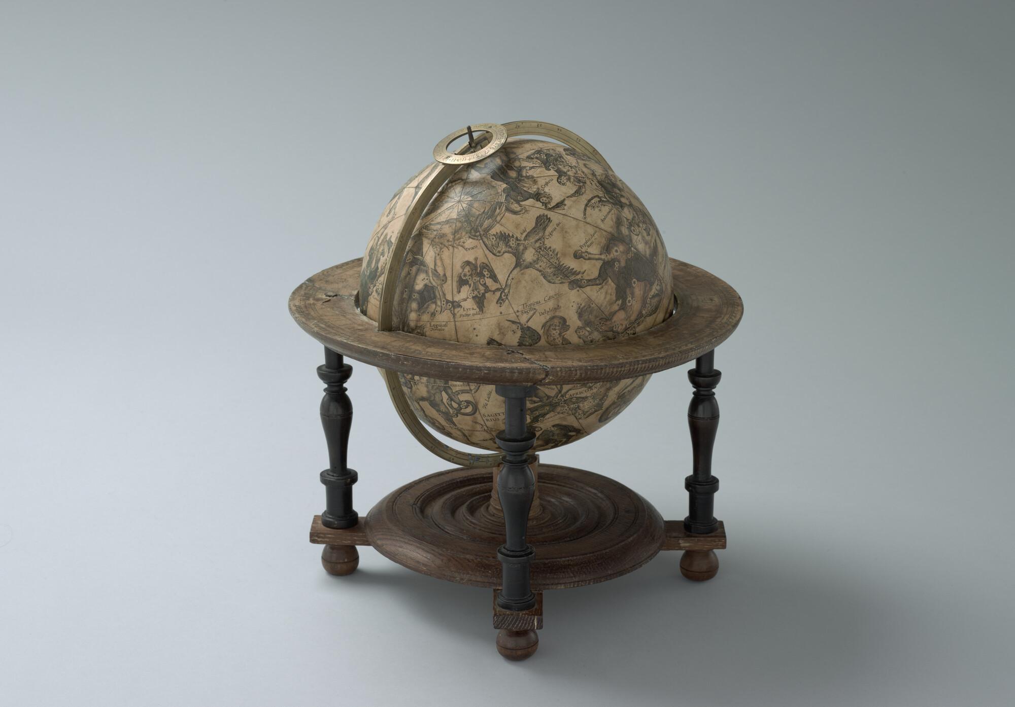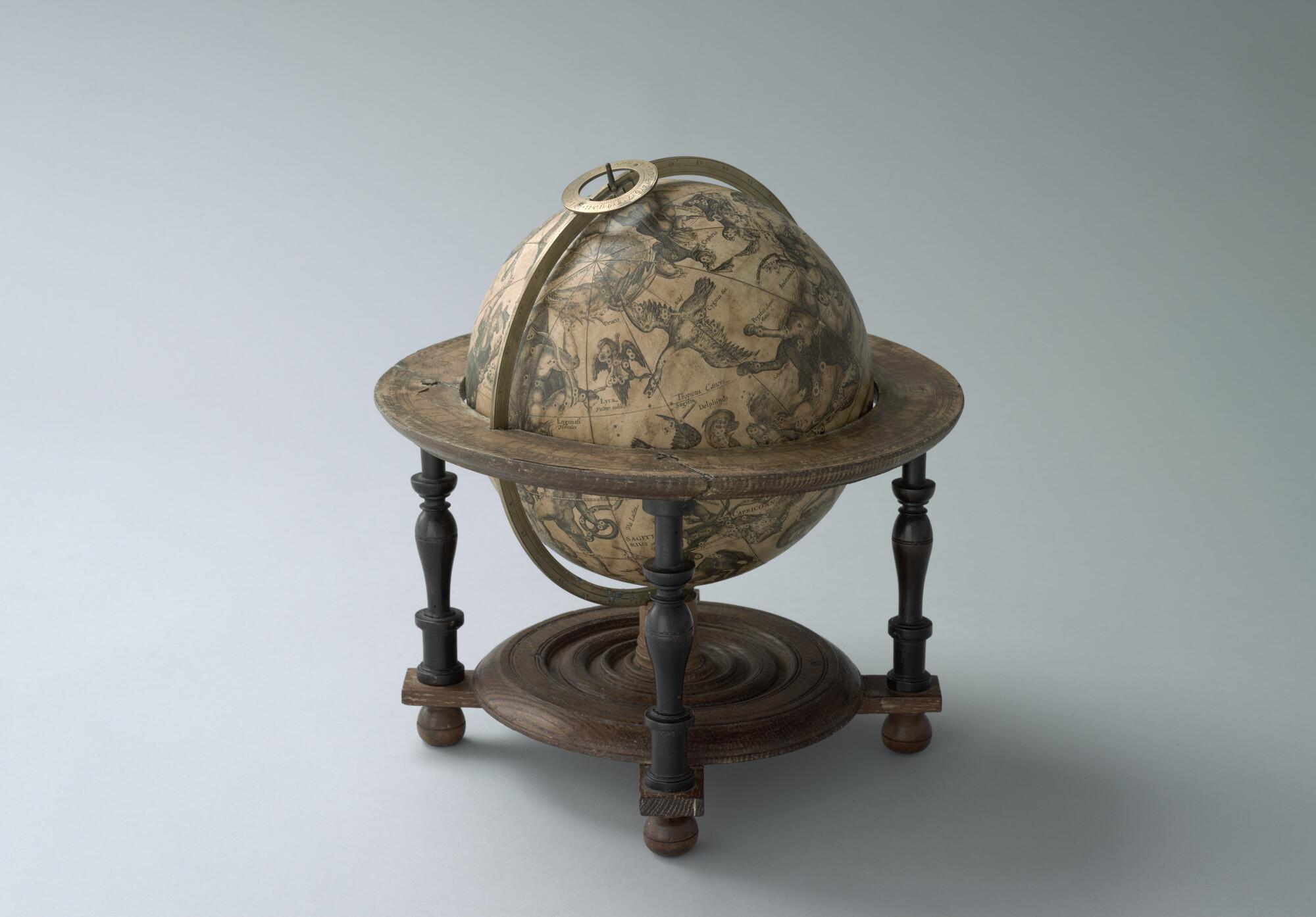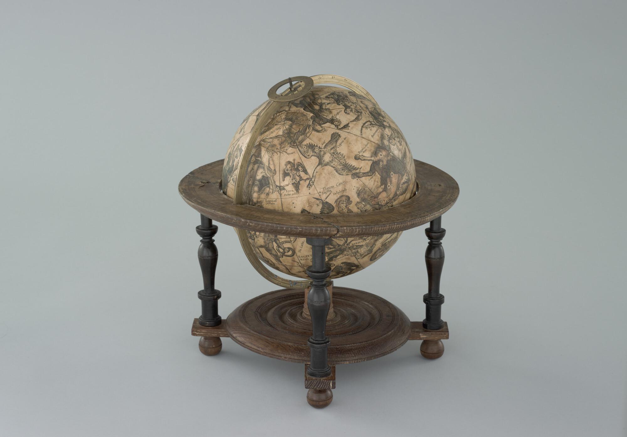 Hemelglobe van 21 cm. diameter in een Hollandse globestoel