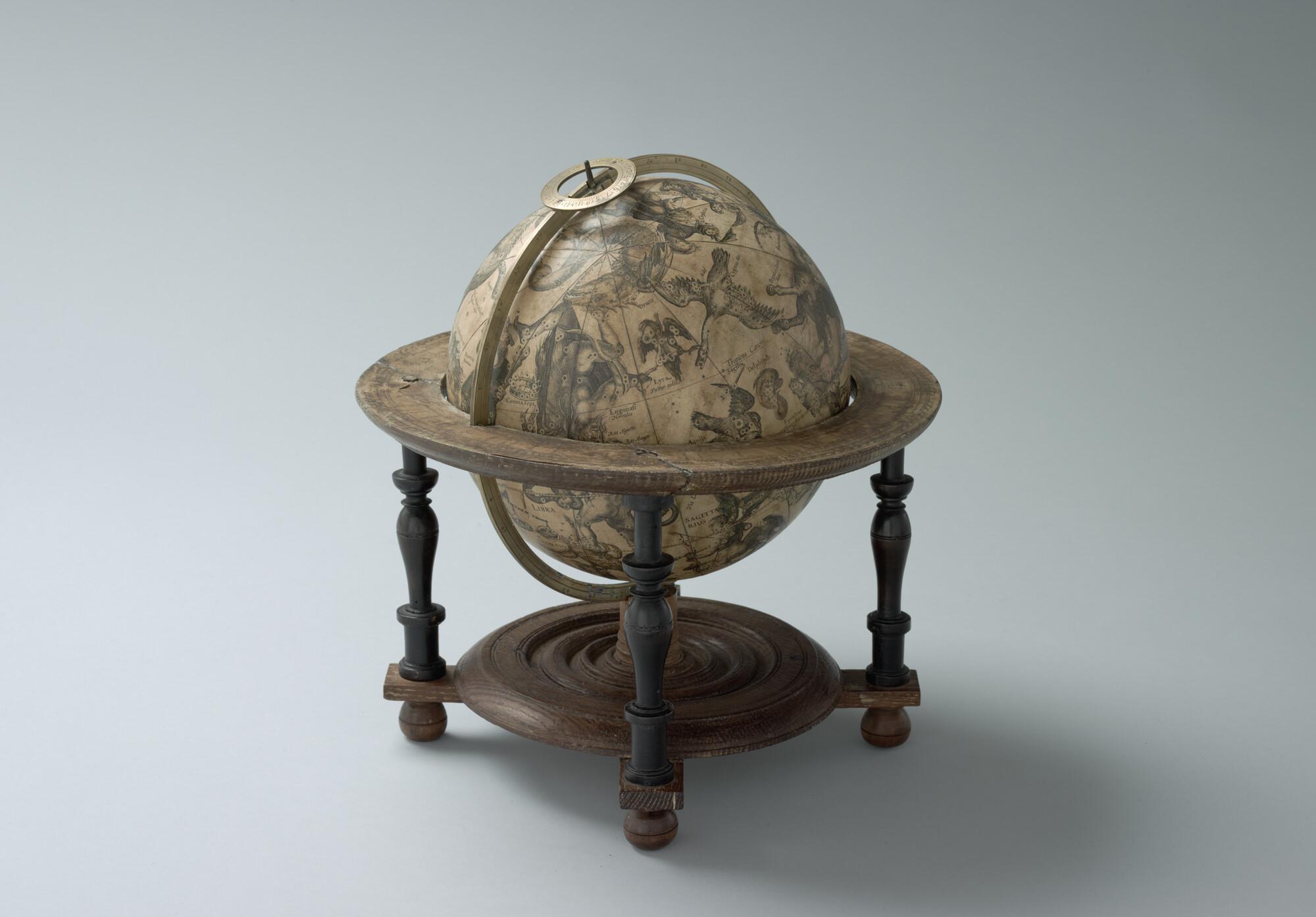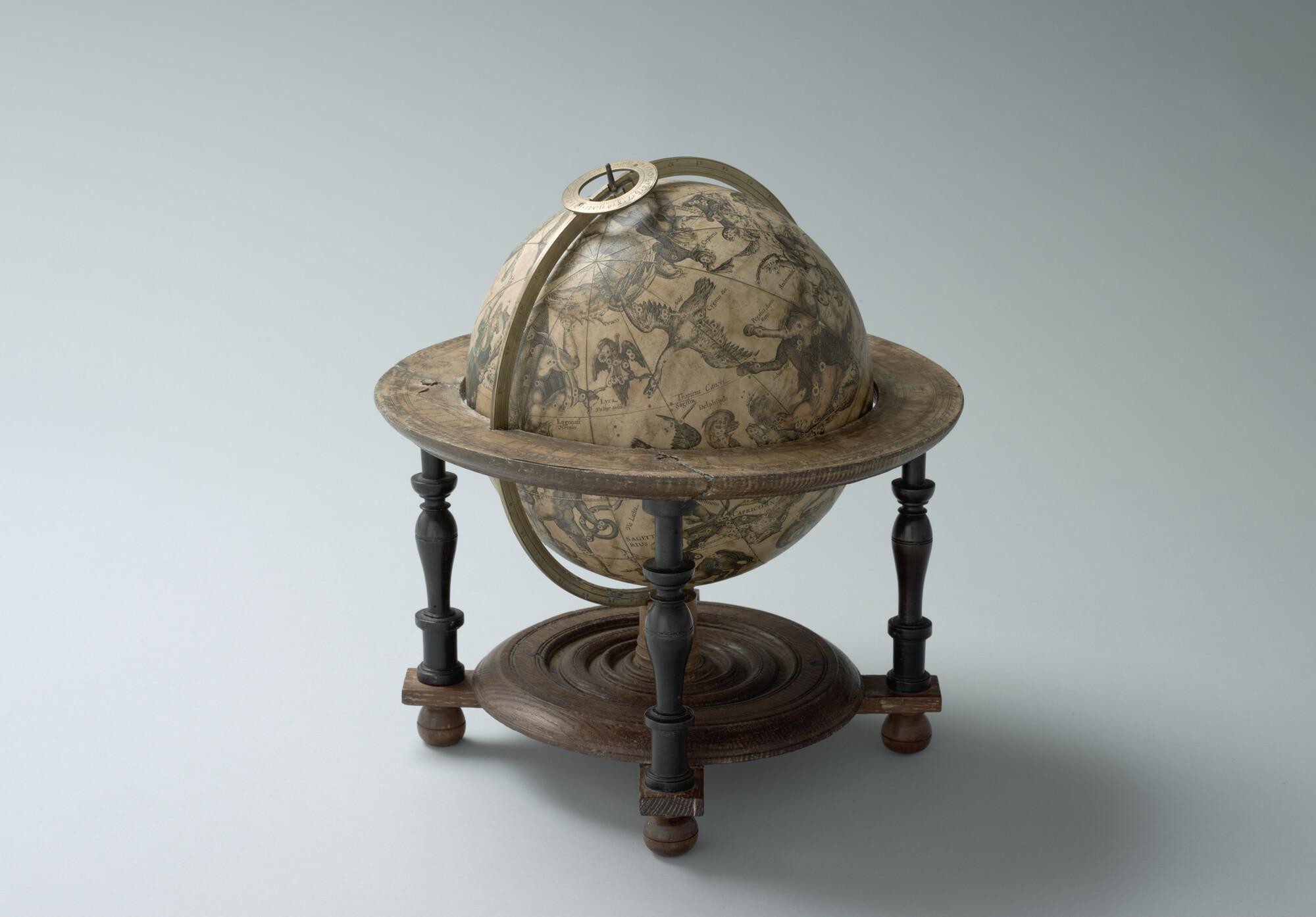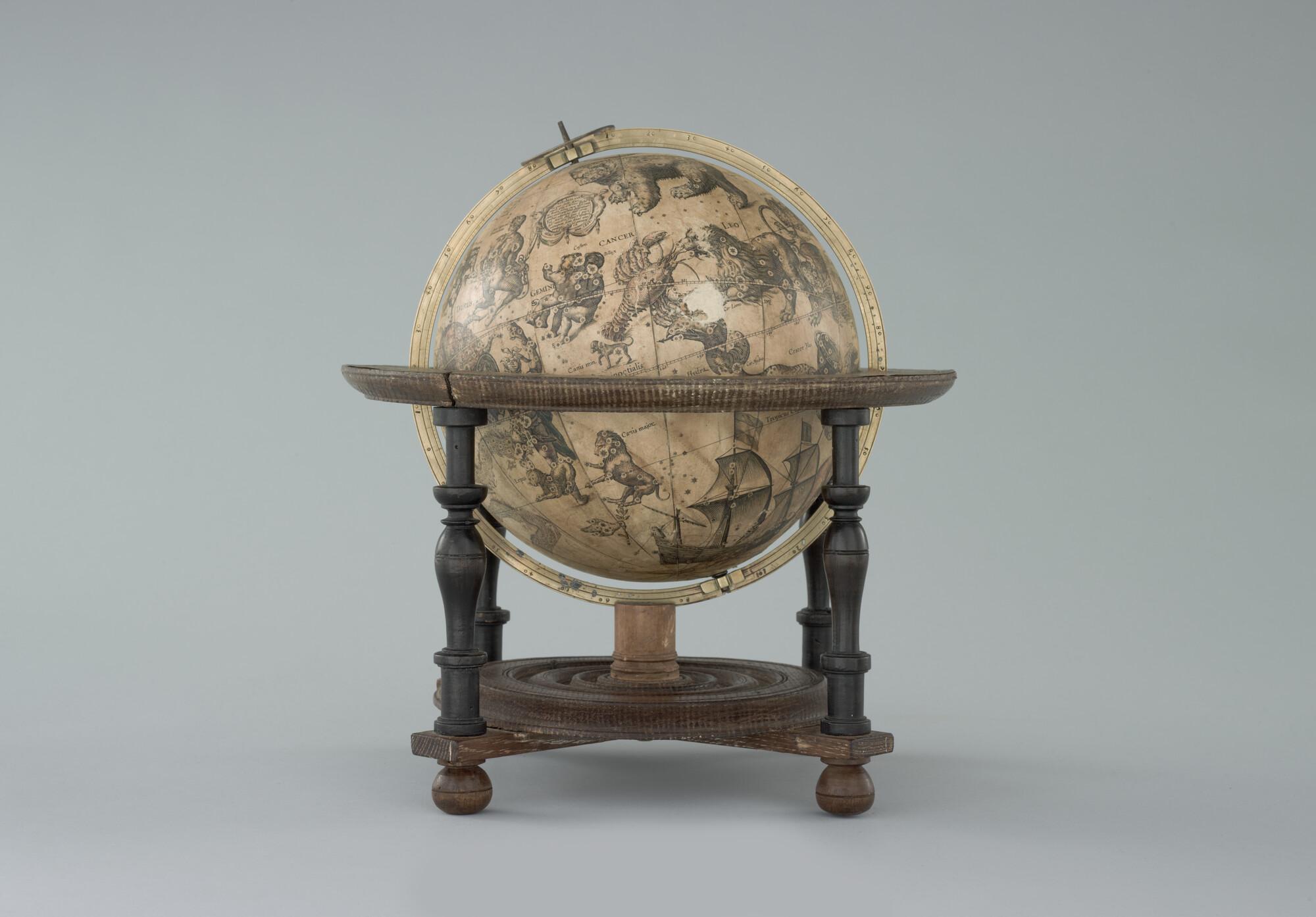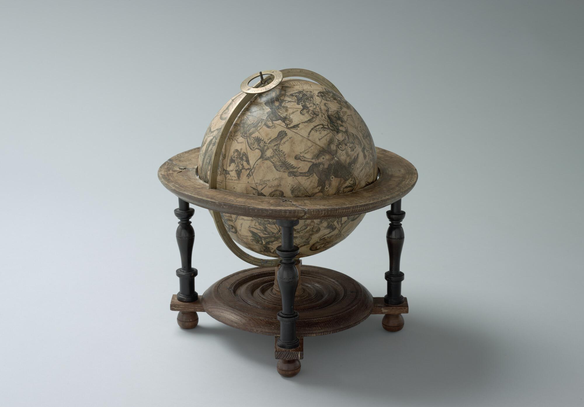Hemelglobe van 21 cm. diameter in een Hollandse globestoel