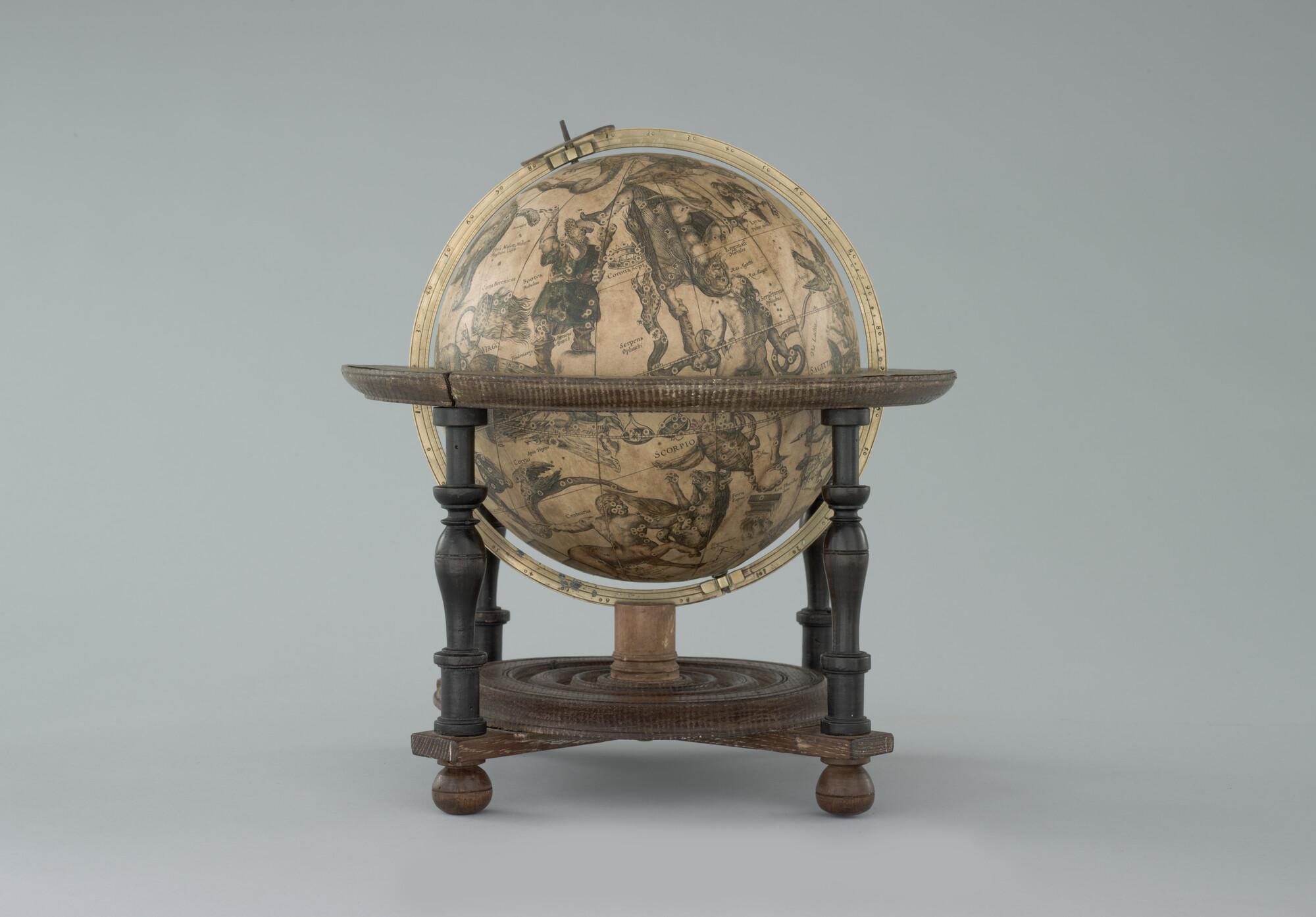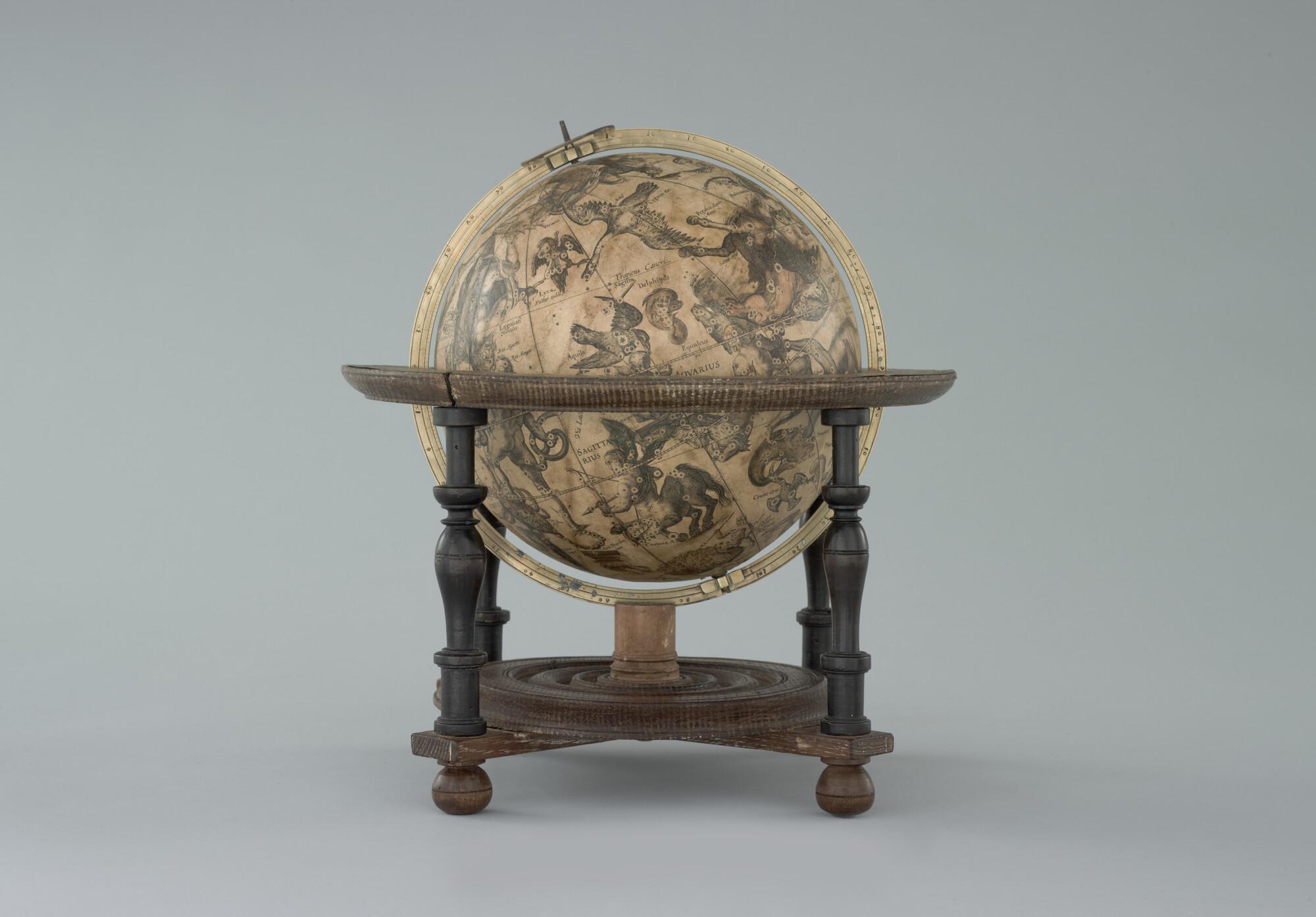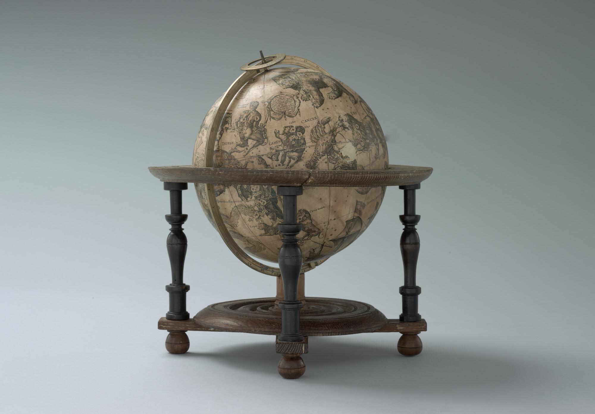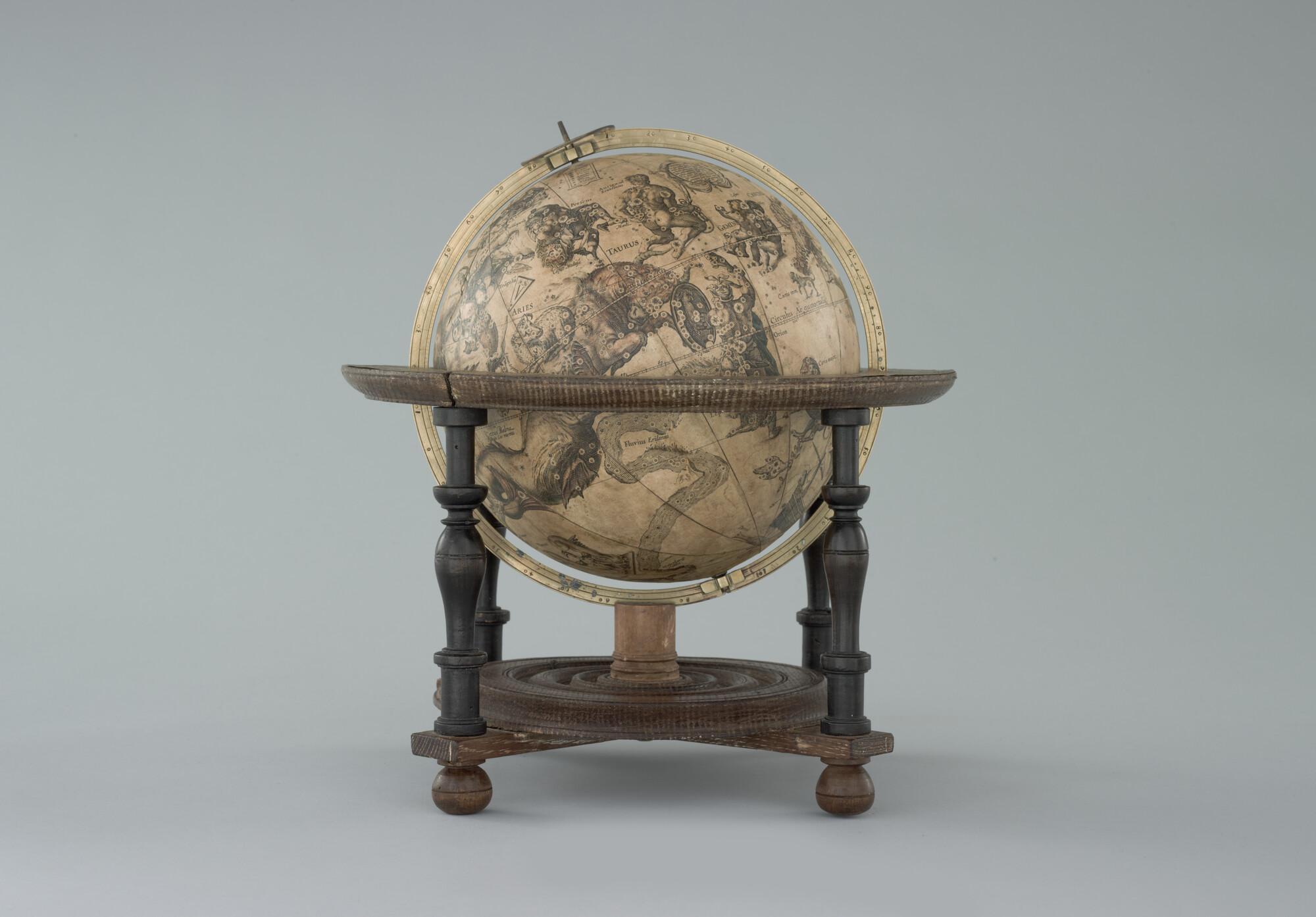 Hemelglobe van 21 cm. diameter in een Hollandse globestoel