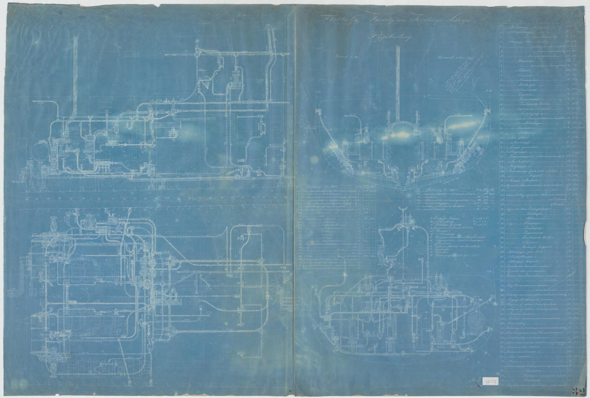 Pijpleiding van het flottieljevaartuig Hr.Ms. Koetei voor het Departement van Marine (schaal 1:20).