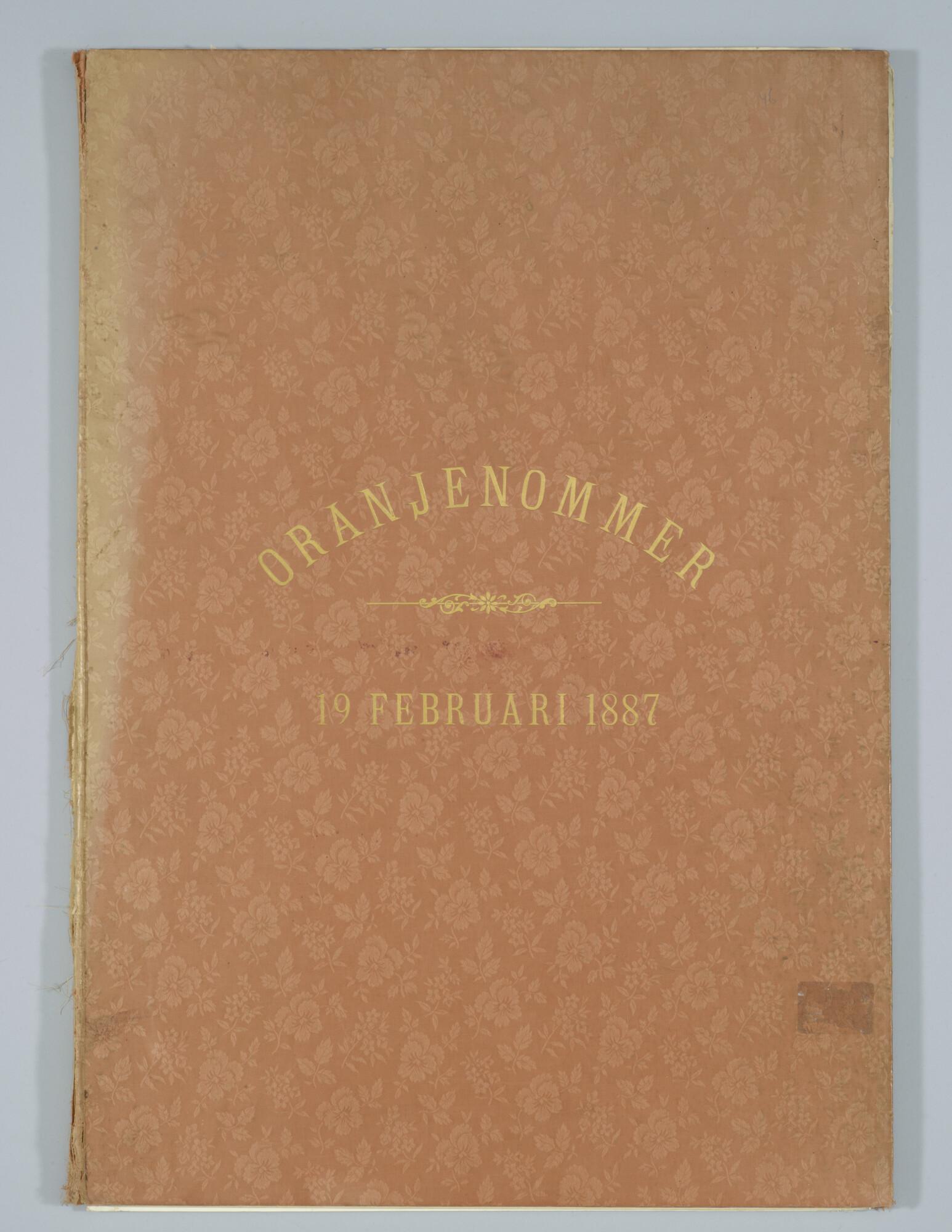 Map voor het Oranjenommer, uitgegeven op 19 Februari 1887 door 'de Amsterdammer', weekblad voor Nederland, ter gelegenheid van de 70e verjaardag van Koning Willem III.