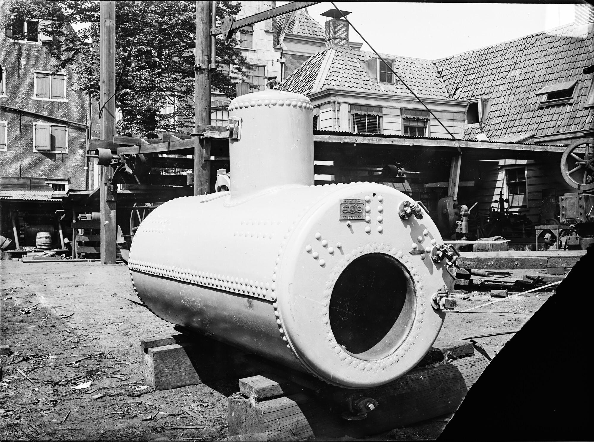 Een stoomketel (nummer 48) voor het ss. Tjaden'in aanbouw op de werf De Nachtegaal