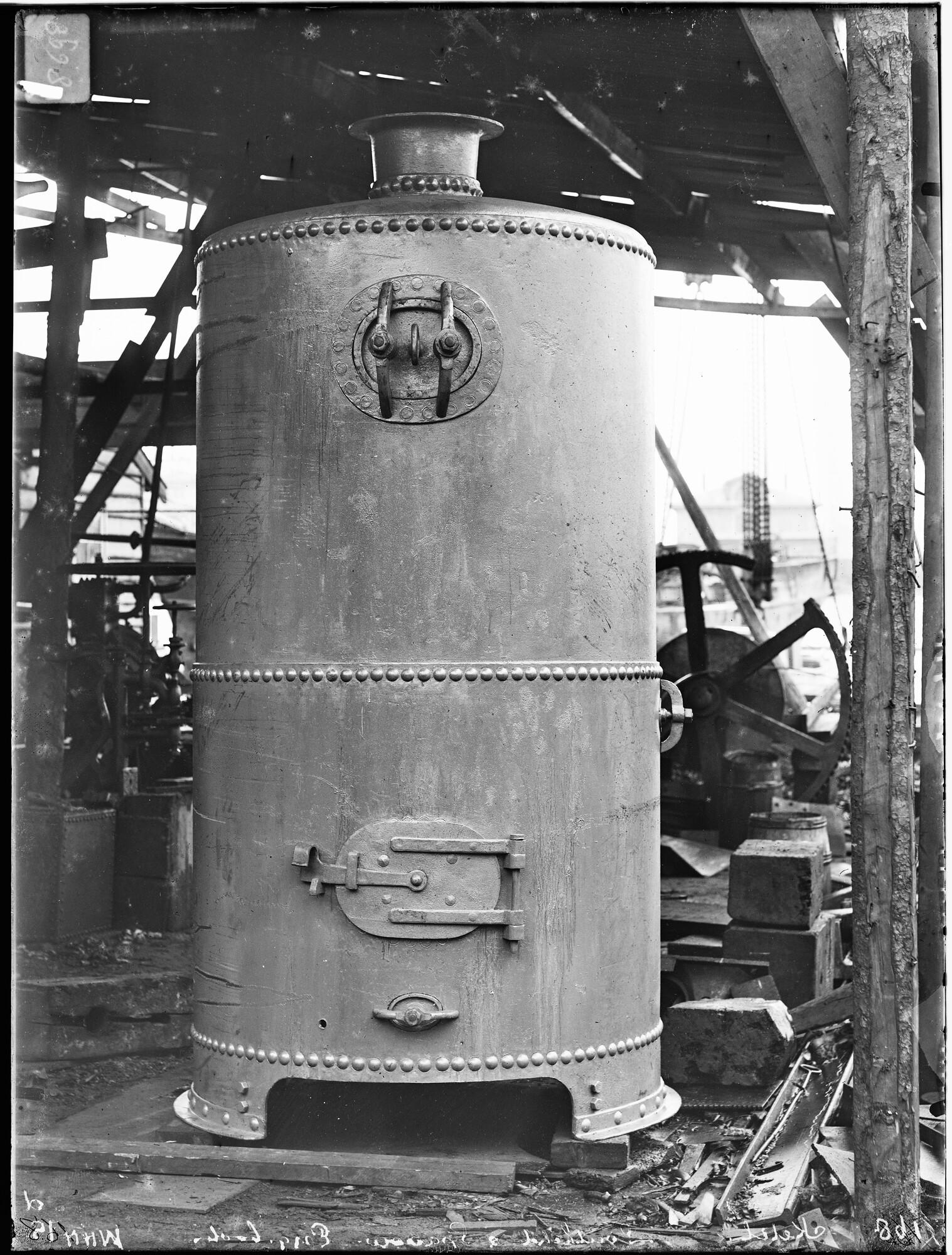 Glasnegatief van een donkeyketel (nummer 32 of 33) in aanbouw