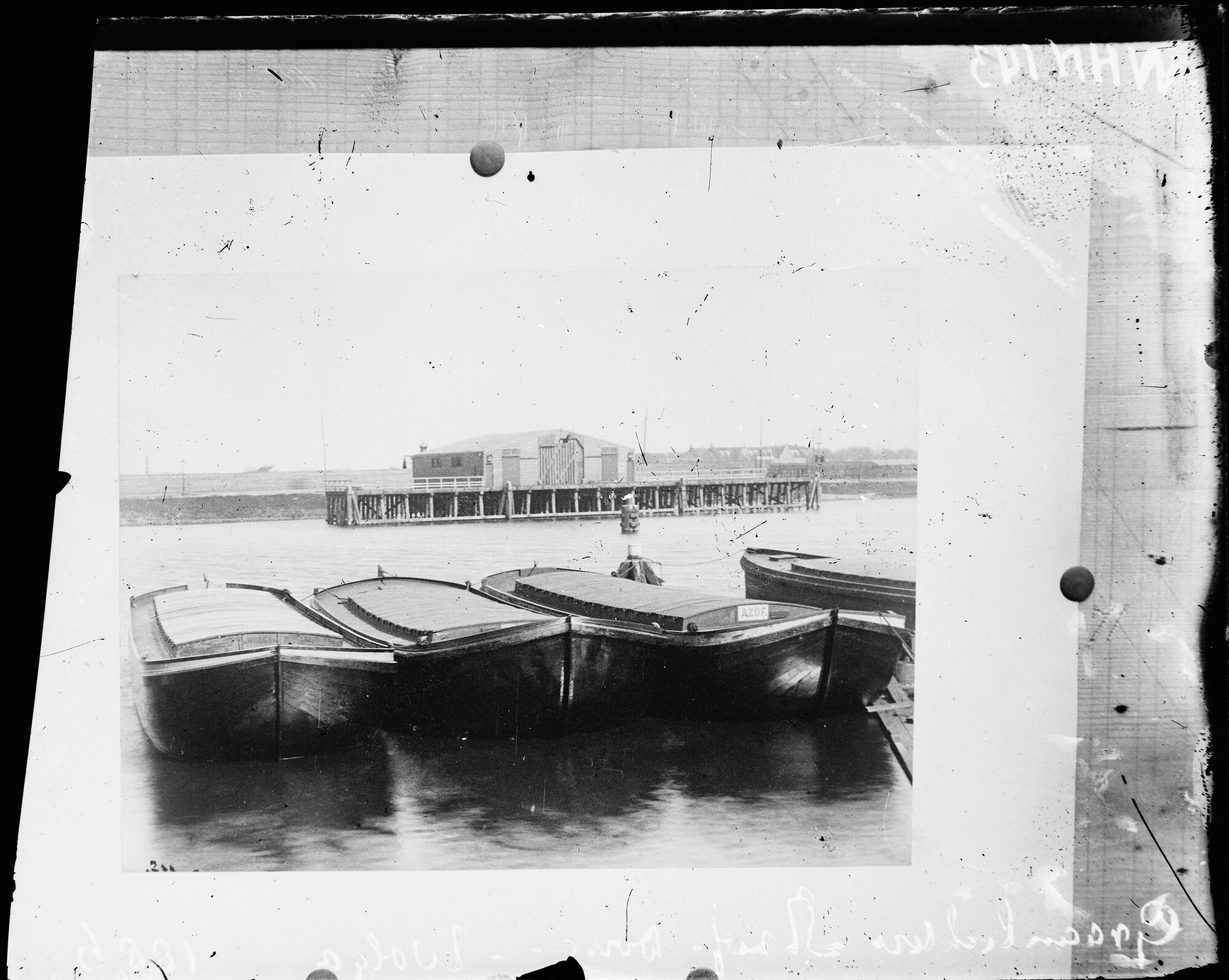 De graanlichters Azof gebouwd in 1889, Donau gebouwd in 1886 en Wolga gebouwd in 1891, vooraanzicht, liggend in een Amsterdamse haven.
