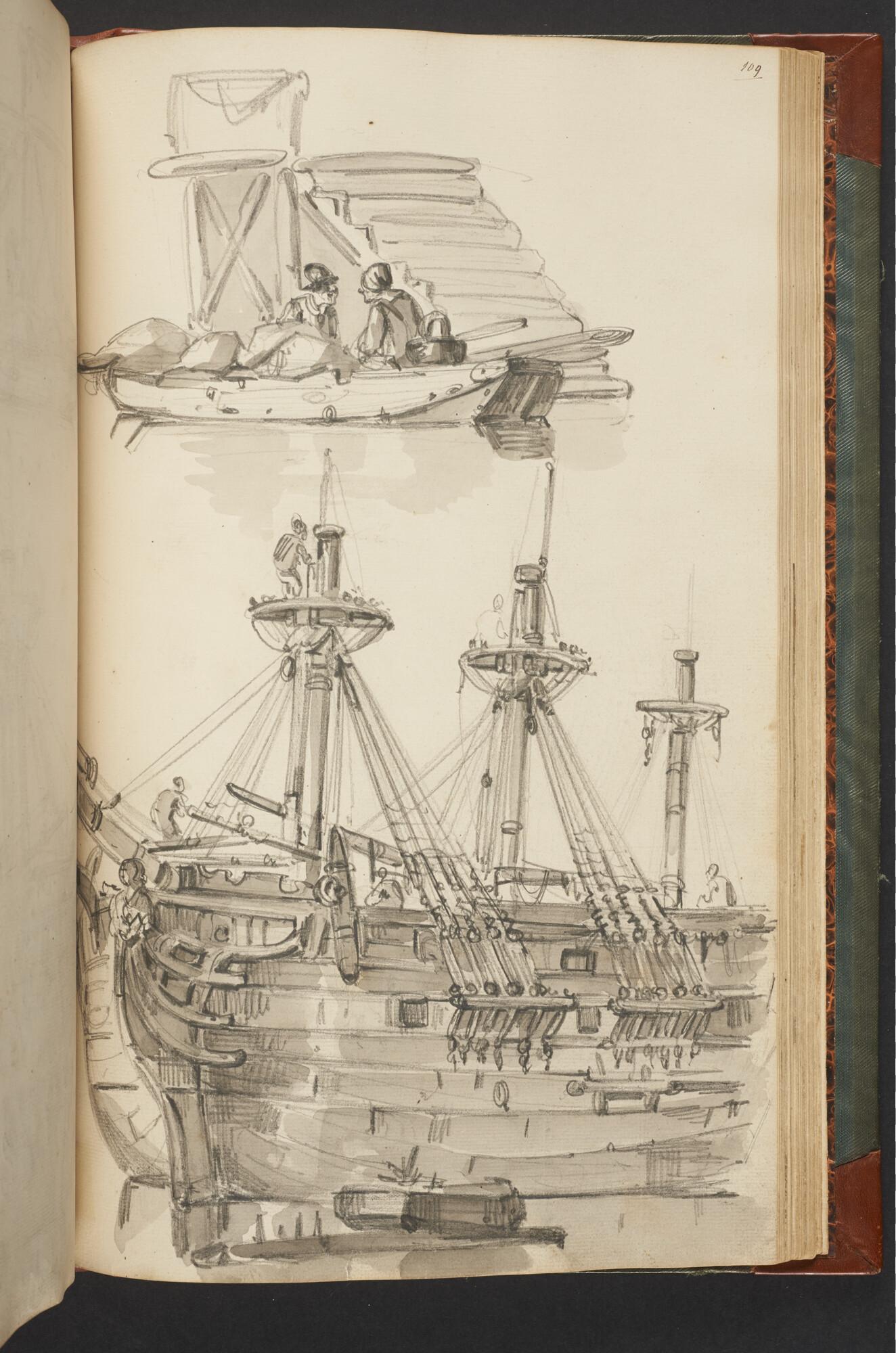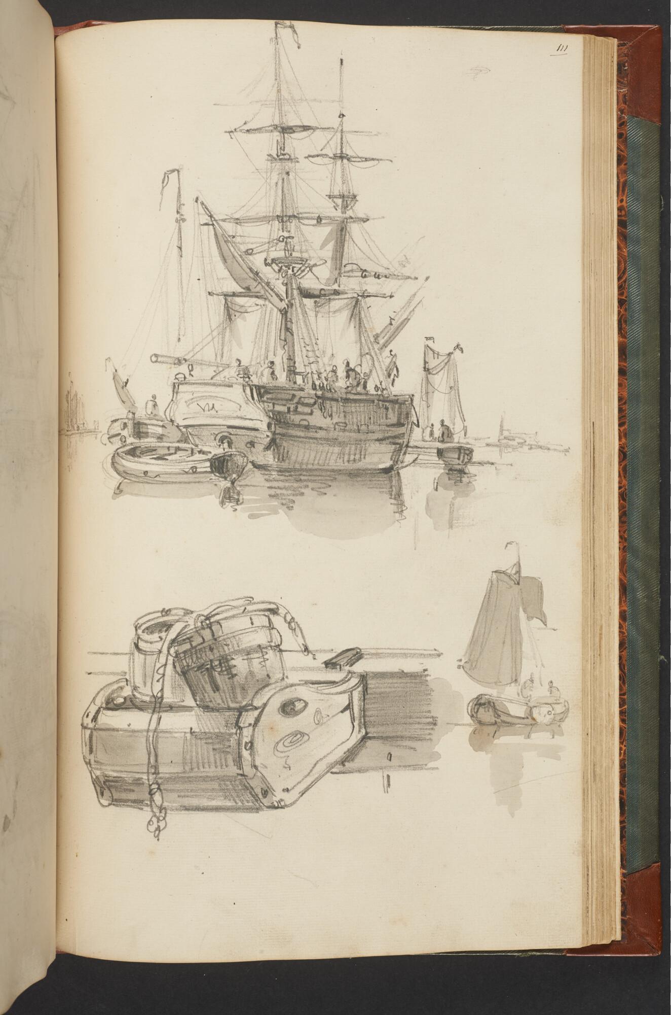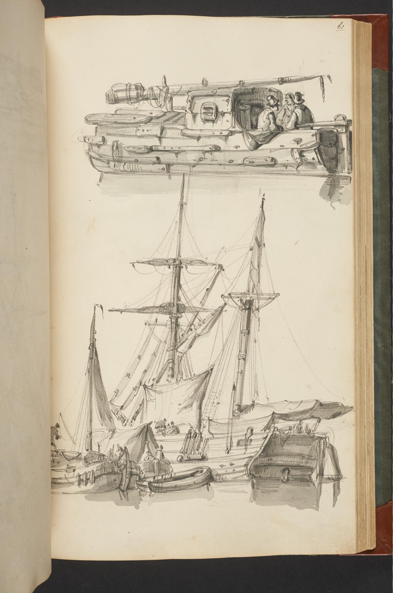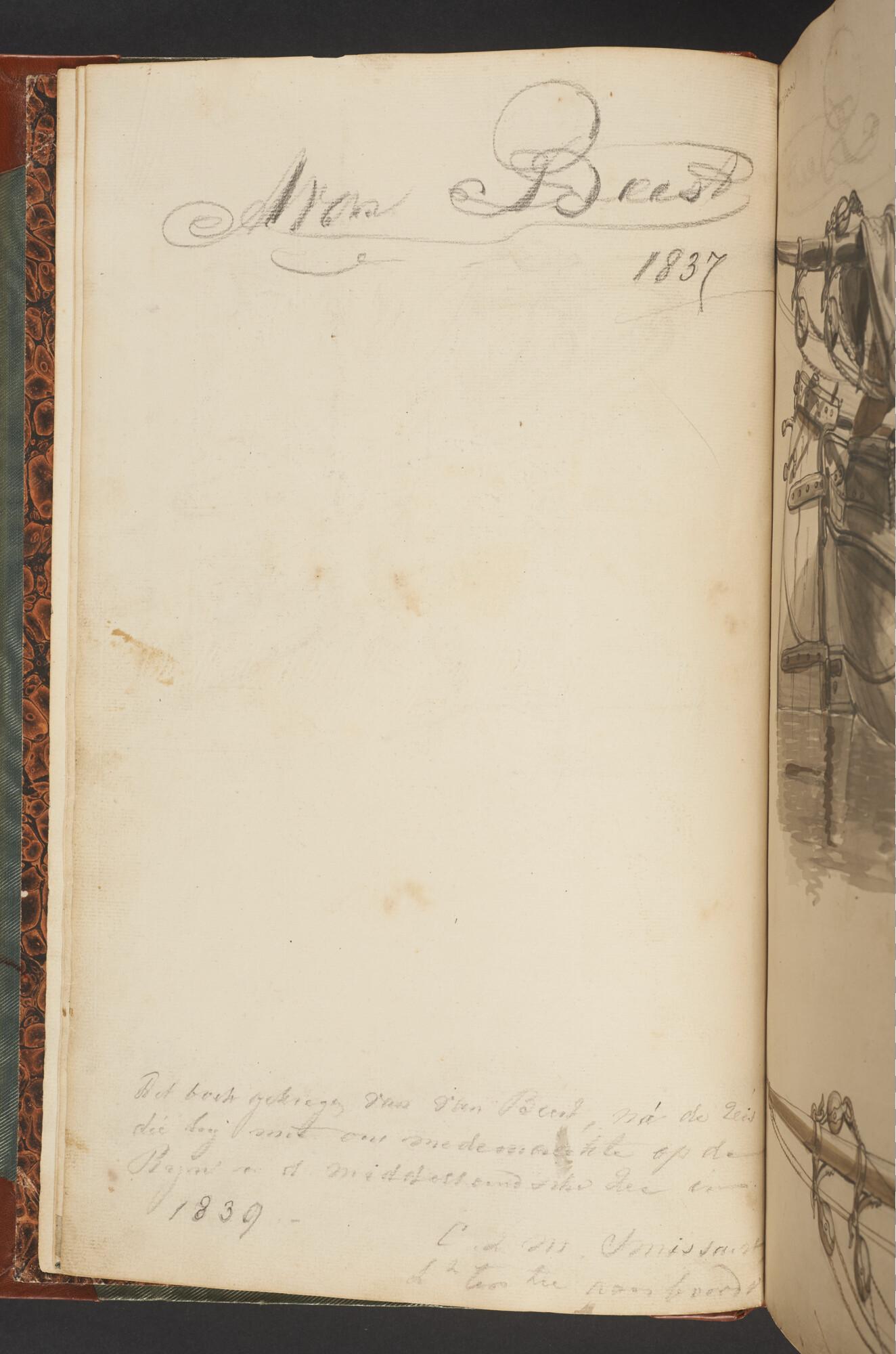 Schetsboek met tekeningen door Albertus van Beest, met achterin twee schetsen door Louis Meijer. Door Van Beest geschonken aan luitenant ter zee C.L.M. Smissaert na een reis die zij samen meemaakten a/b de Rijn in de Middellandse Zee in 1839.
