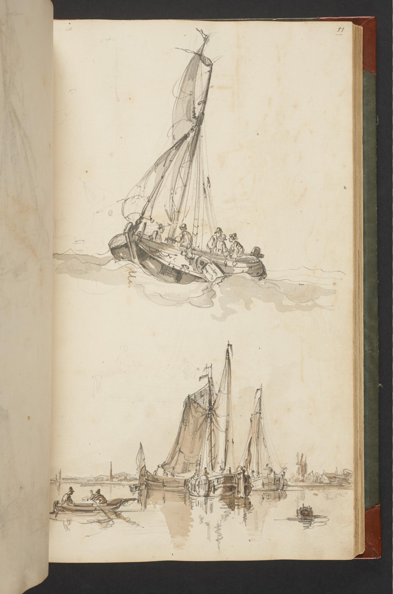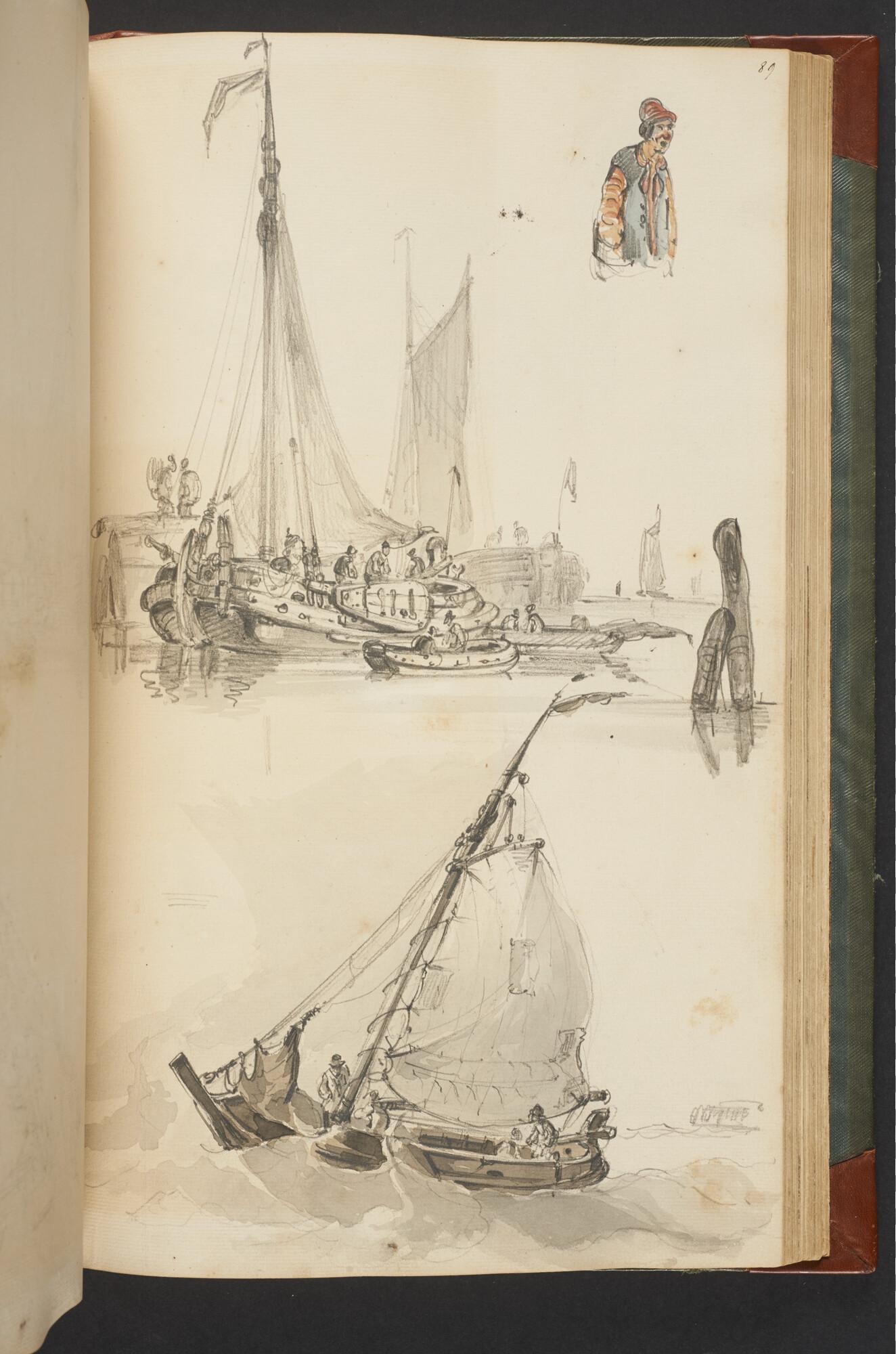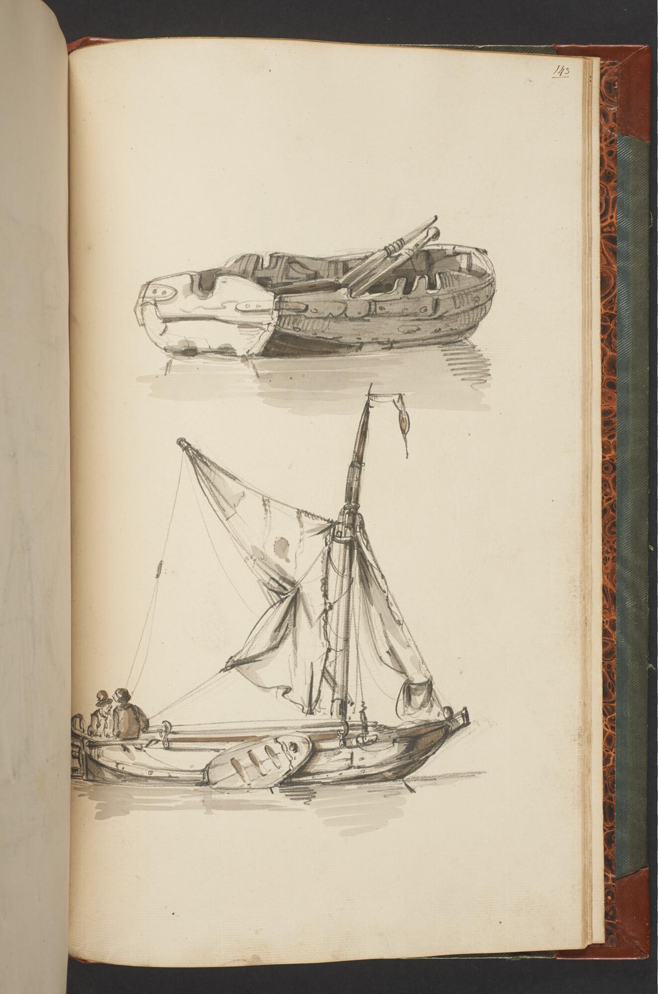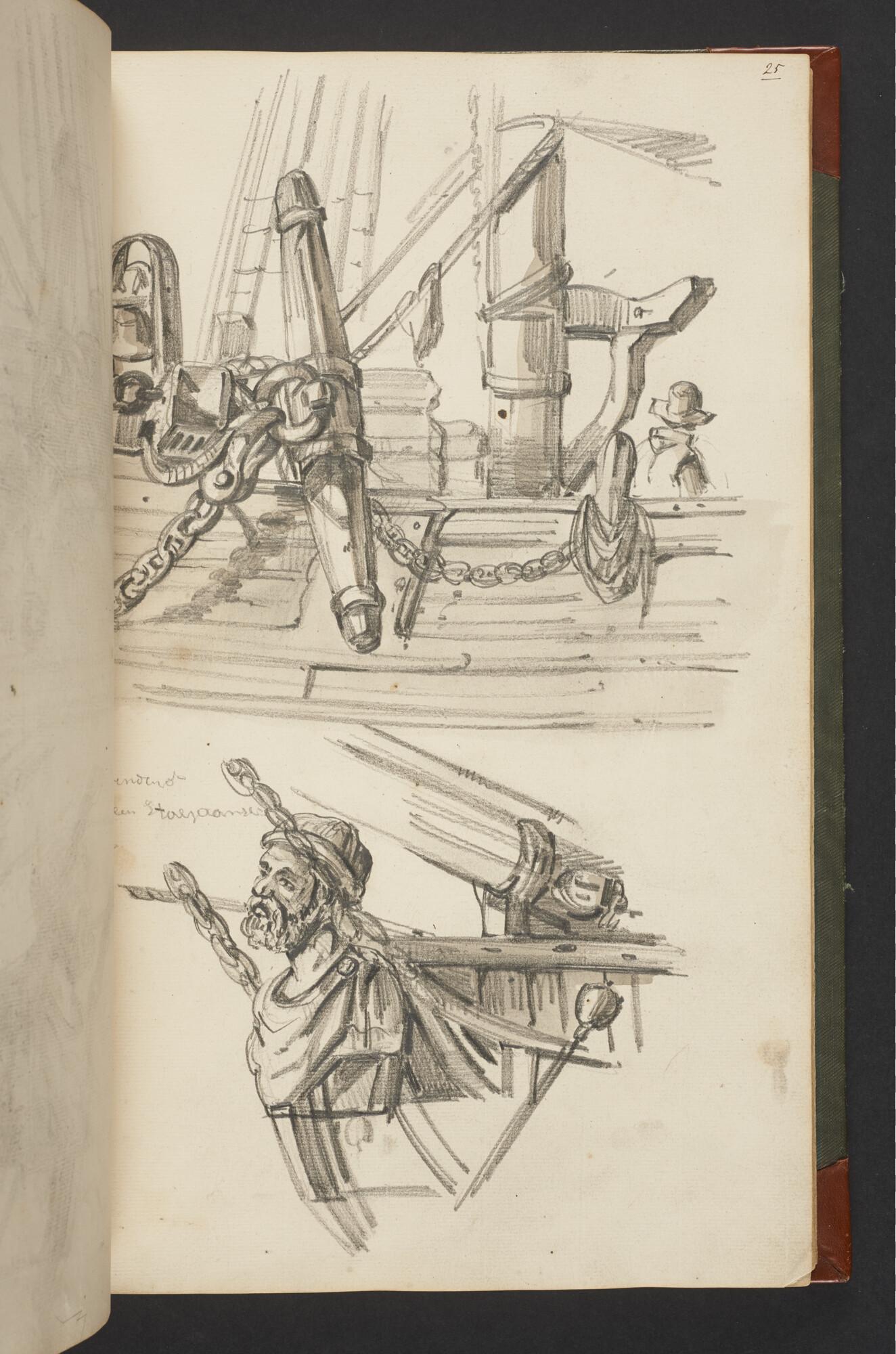 Schetsboek met tekeningen door Albertus van Beest, met achterin twee schetsen door Louis Meijer. Door Van Beest geschonken aan luitenant ter zee C.L.M. Smissaert na een reis die zij samen meemaakten a/b de Rijn in de Middellandse Zee in 1839.
