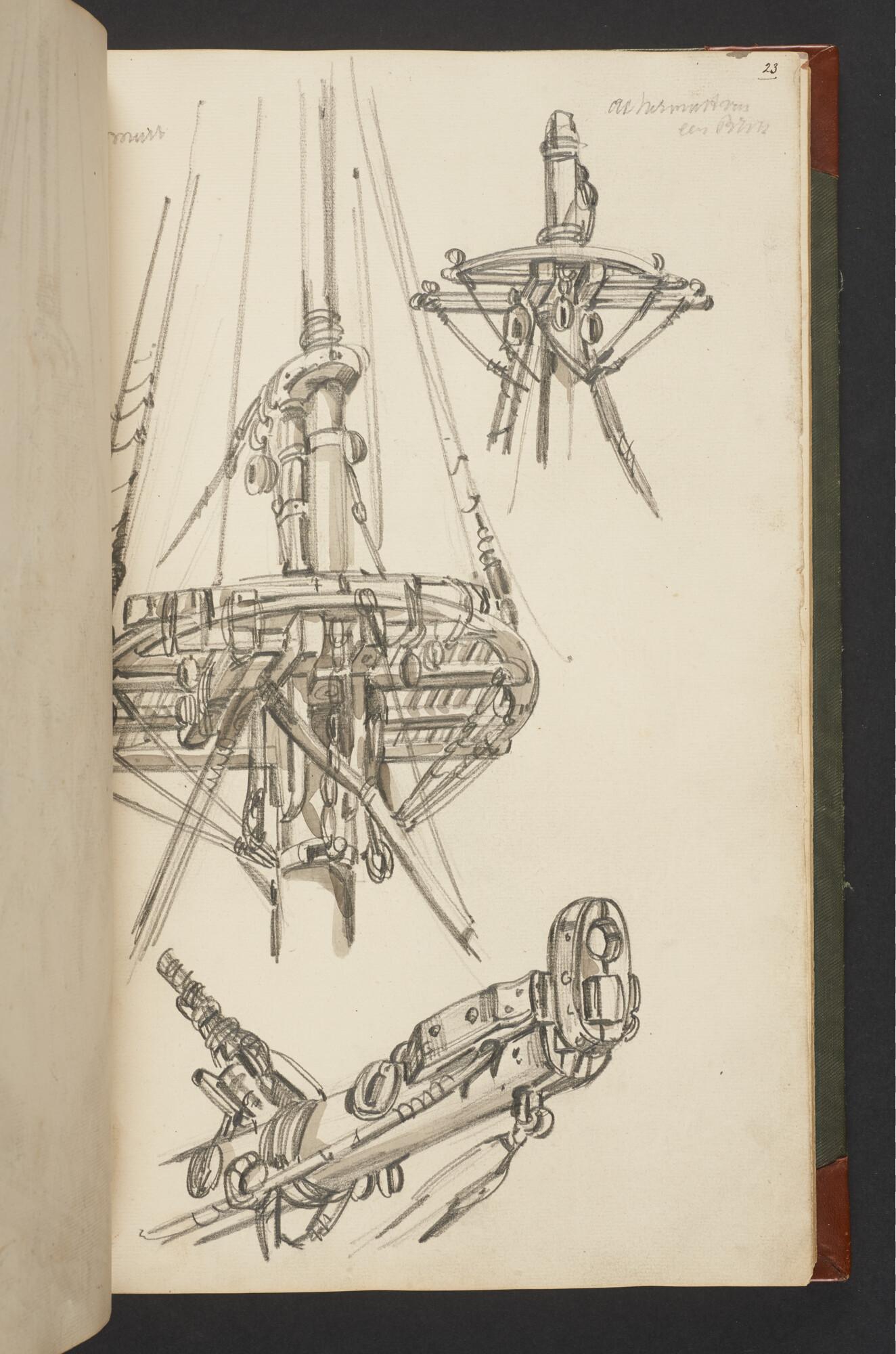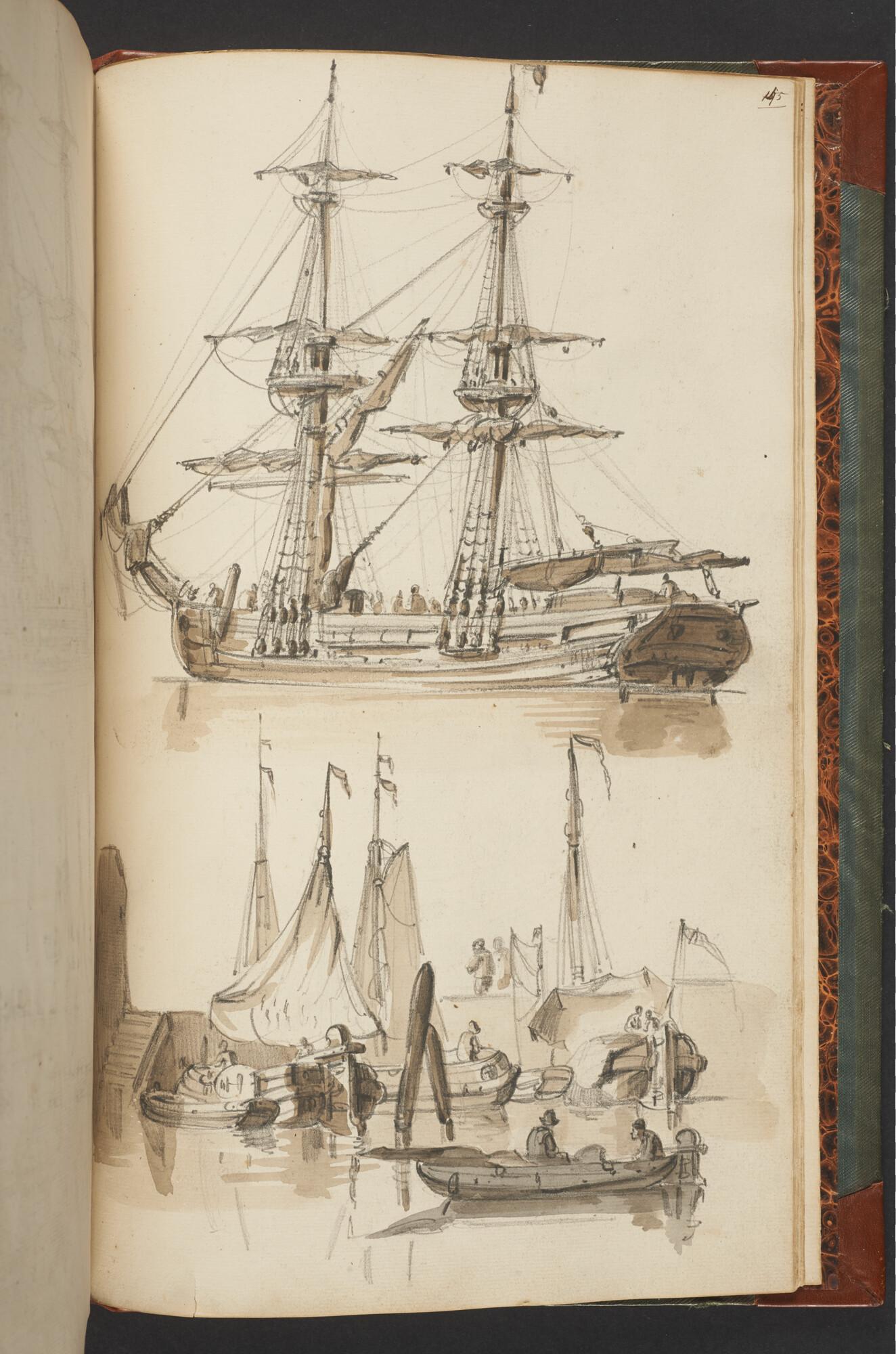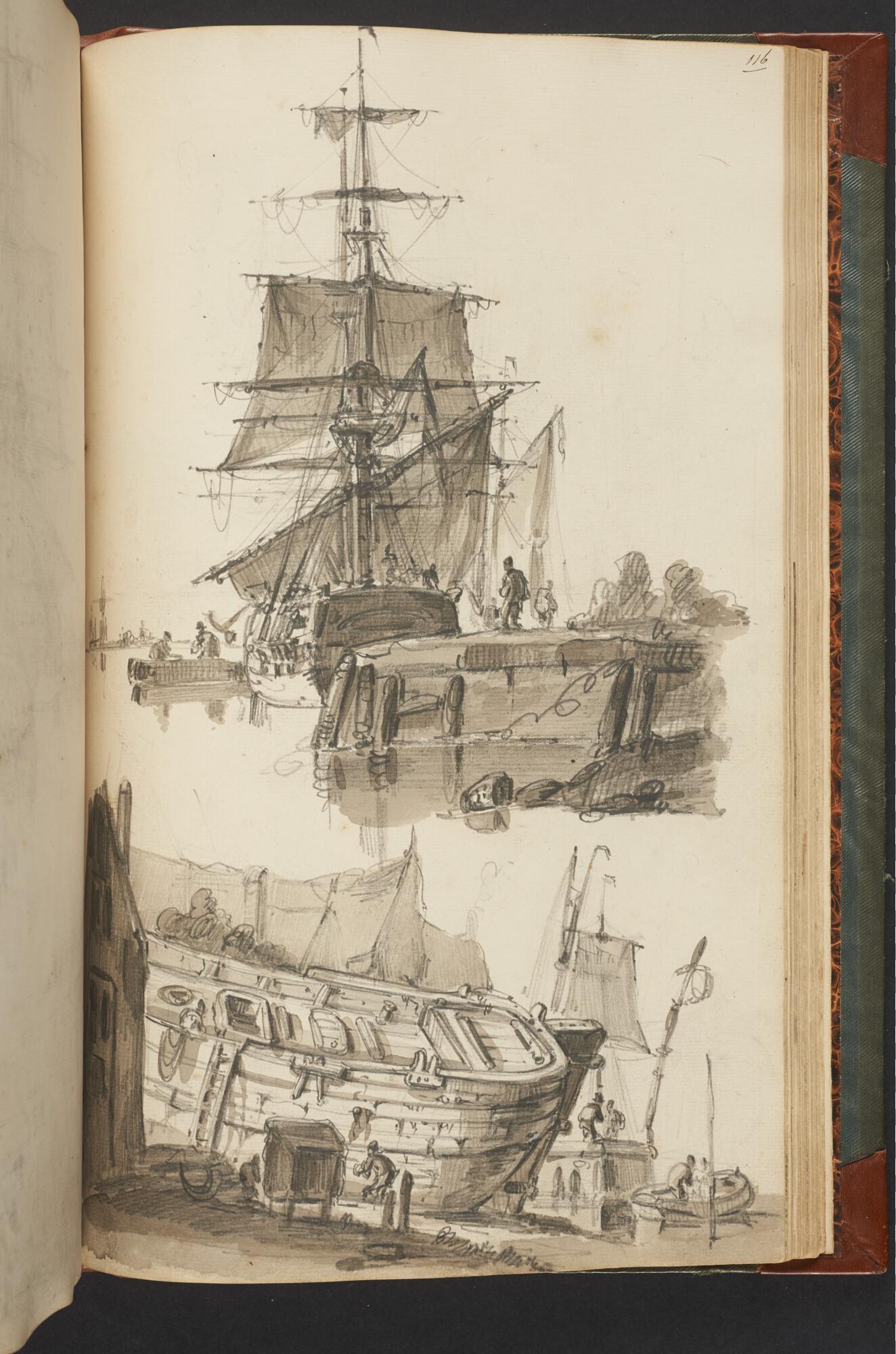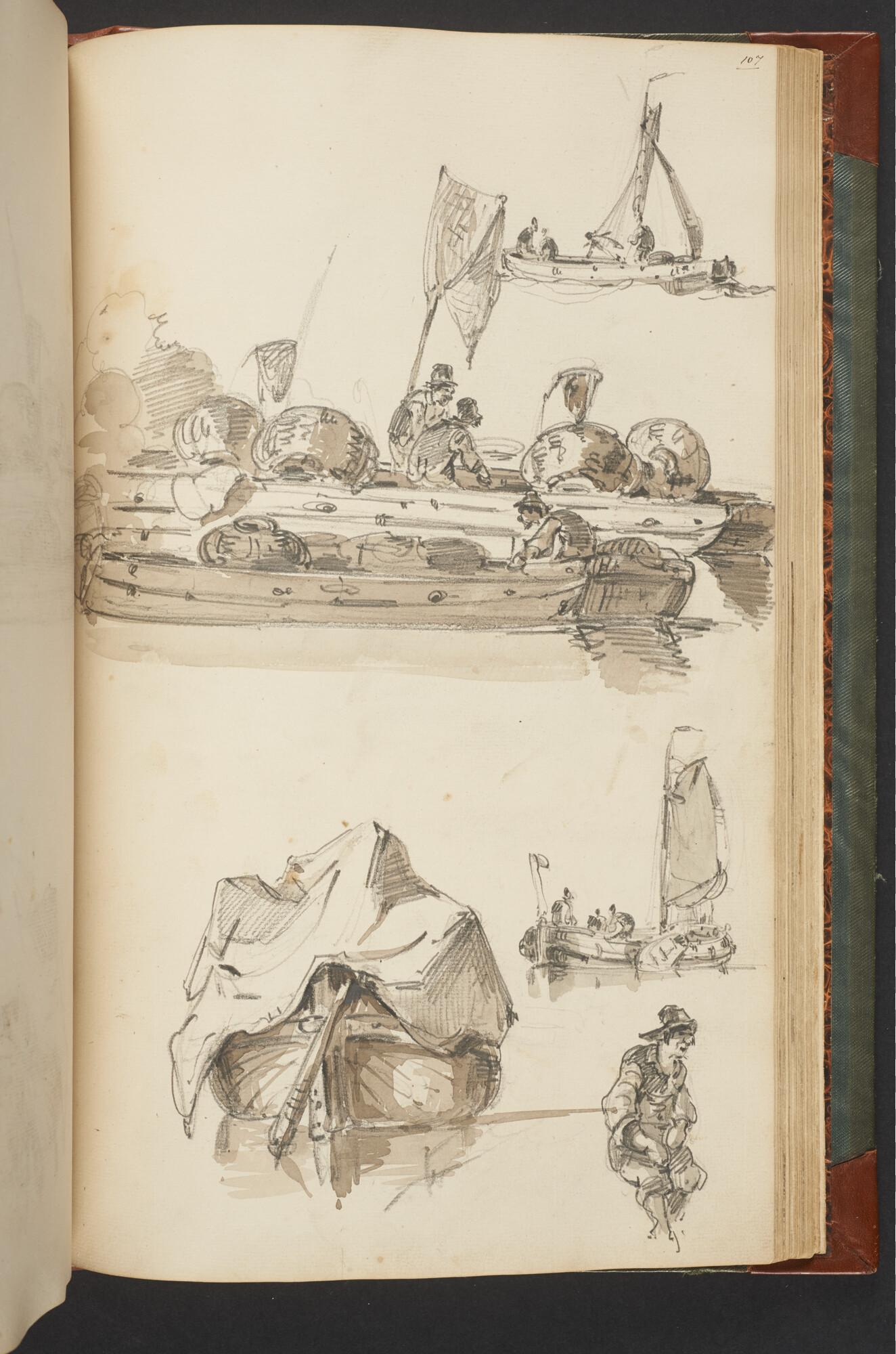 Schetsboek met tekeningen door Albertus van Beest, met achterin twee schetsen door Louis Meijer. Door Van Beest geschonken aan luitenant ter zee C.L.M. Smissaert na een reis die zij samen meemaakten a/b de Rijn in de Middellandse Zee in 1839.