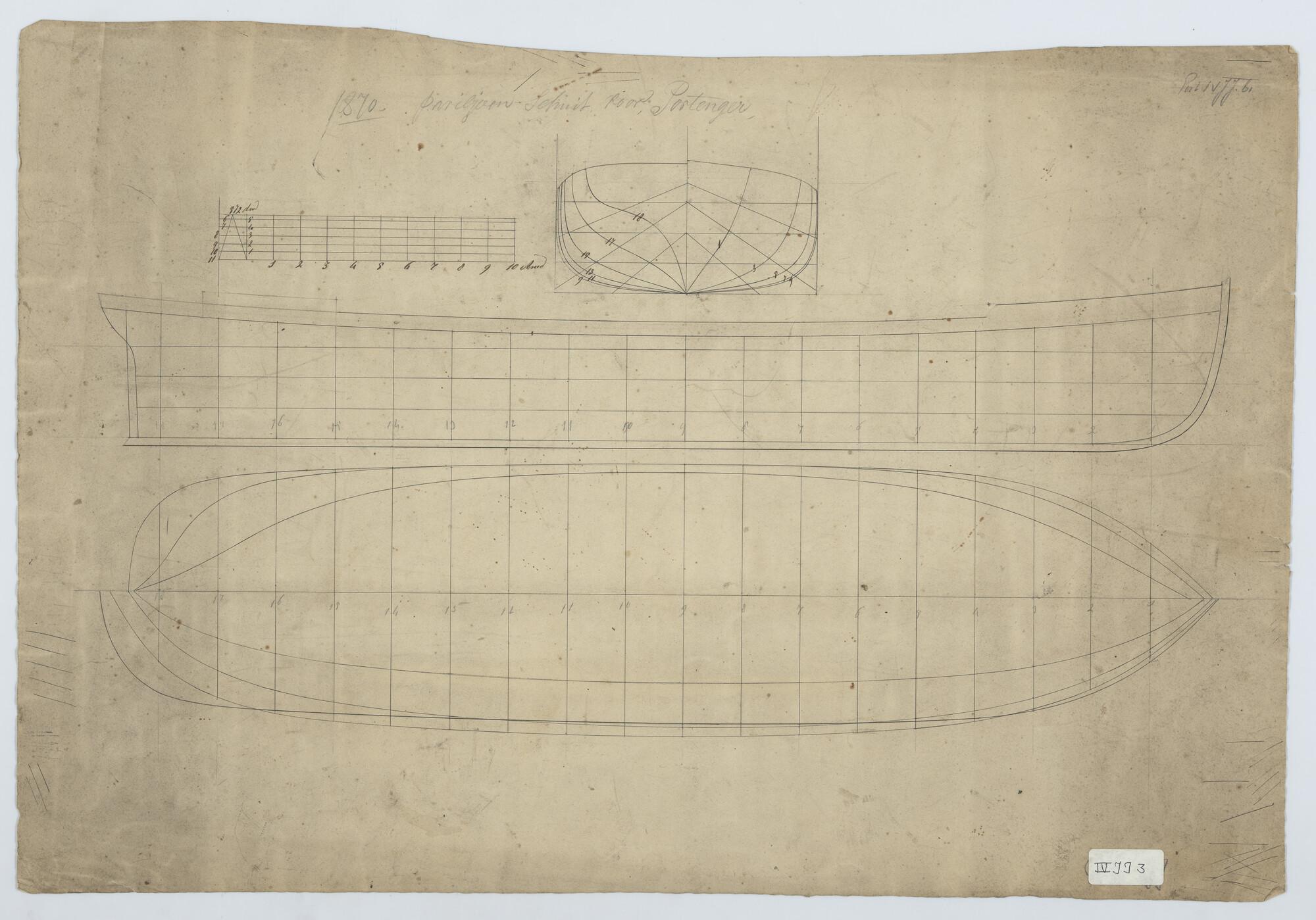 Lijnenplan van ijzeren paviljoenschuit voor Portenger