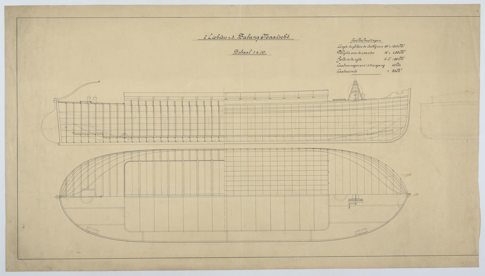 Lijnenplan van twee lichters voor de Sabang Maatschappij