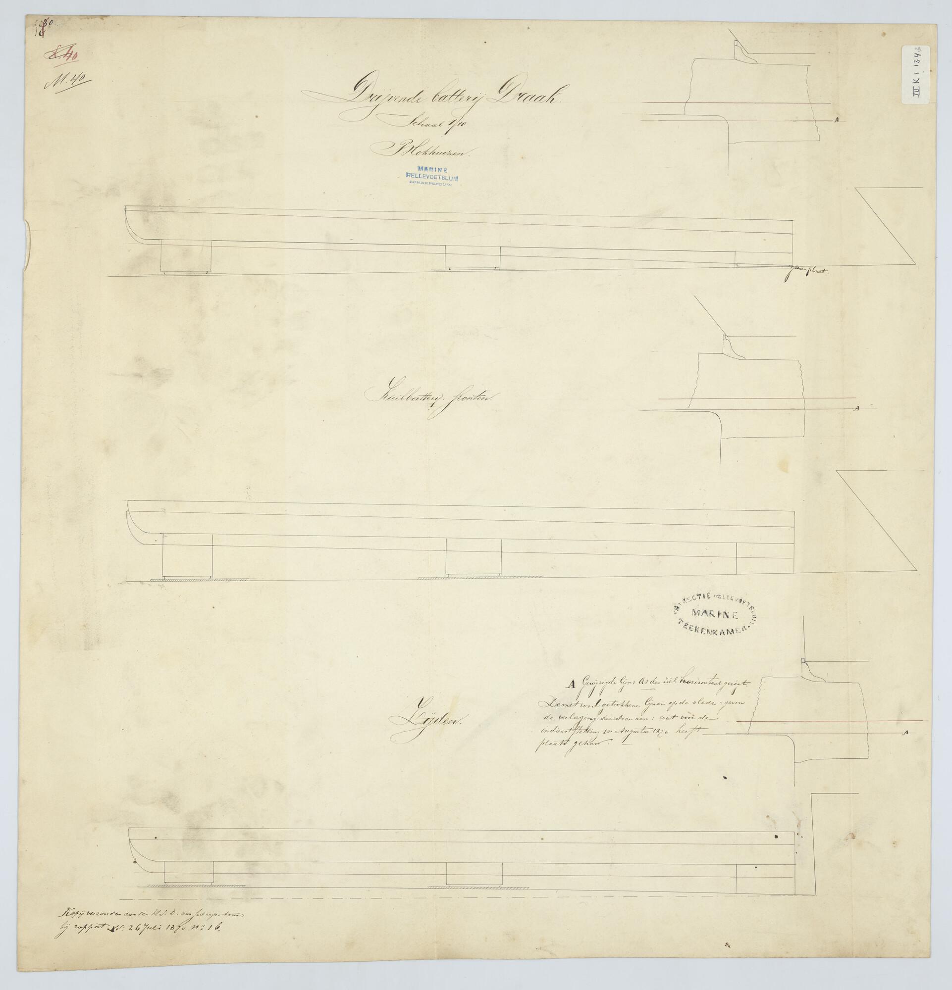 Drijvende batterij "Draak", 1859 (ex- fregat Zr.Ms. "Ceres", 1820). Bovenaanzichten van het blokhuis.