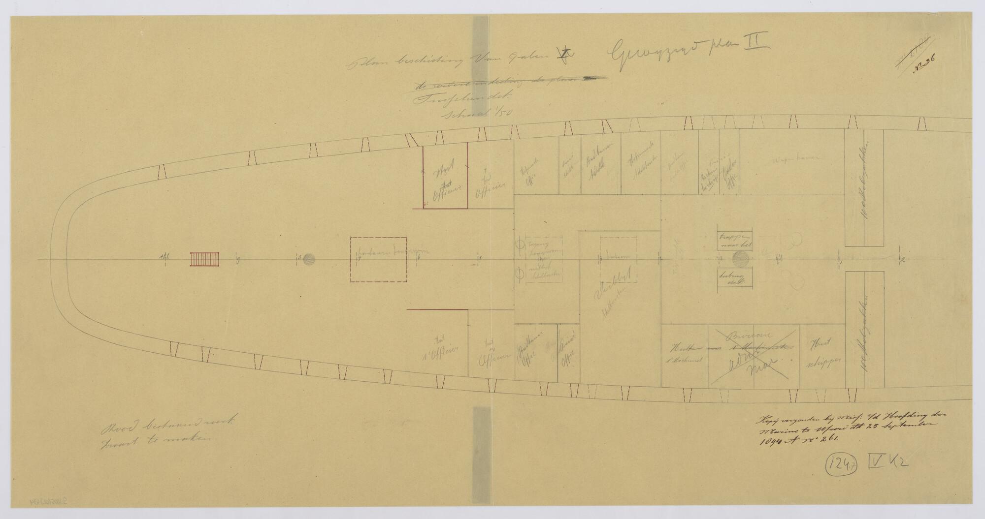 Het schroefstoomschip 1ste klasse Zr.Ms. "Van Galen", 1868. Wijzigingsplannen beschieting 1894.