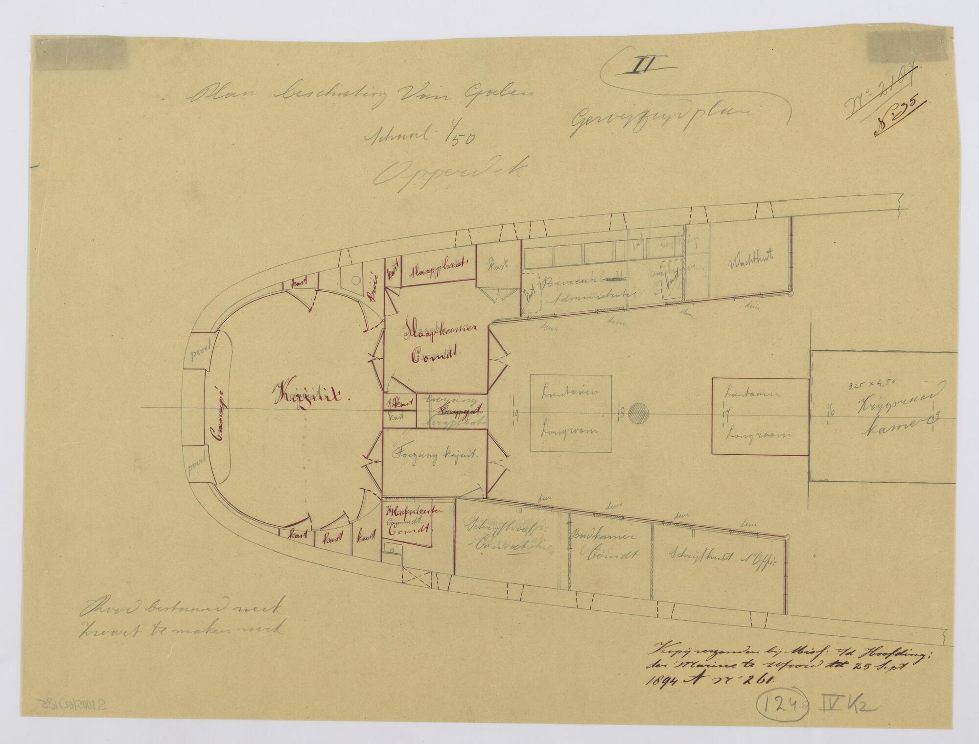 Het schroefstoomschip 1ste klasse Zr.Ms. "Van Galen", 1868. Wijzigingsplannen beschieting 1894.