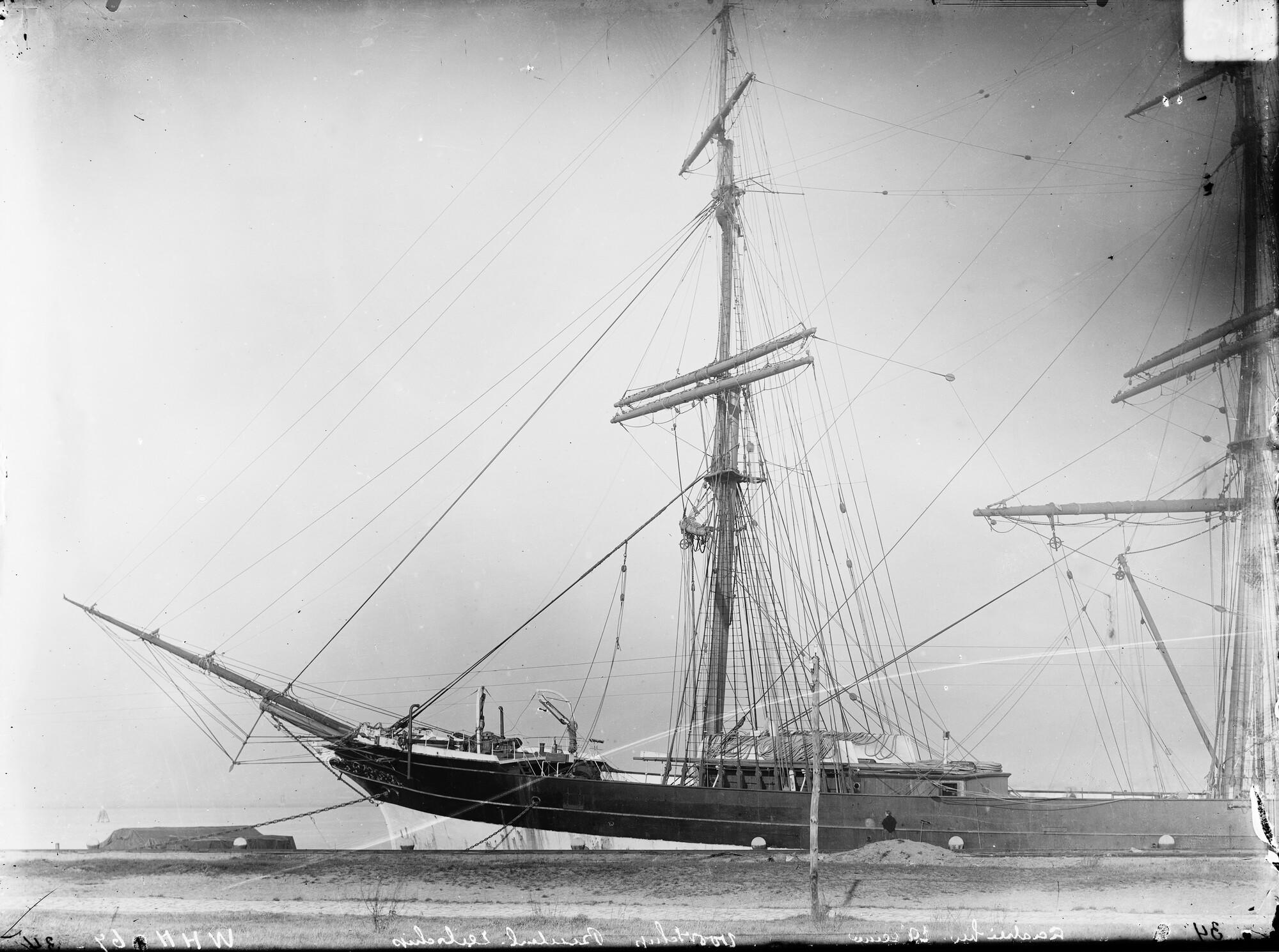 Glasnegatief van de driemast stalen bark Port Patrick afgemeerd aan een kade