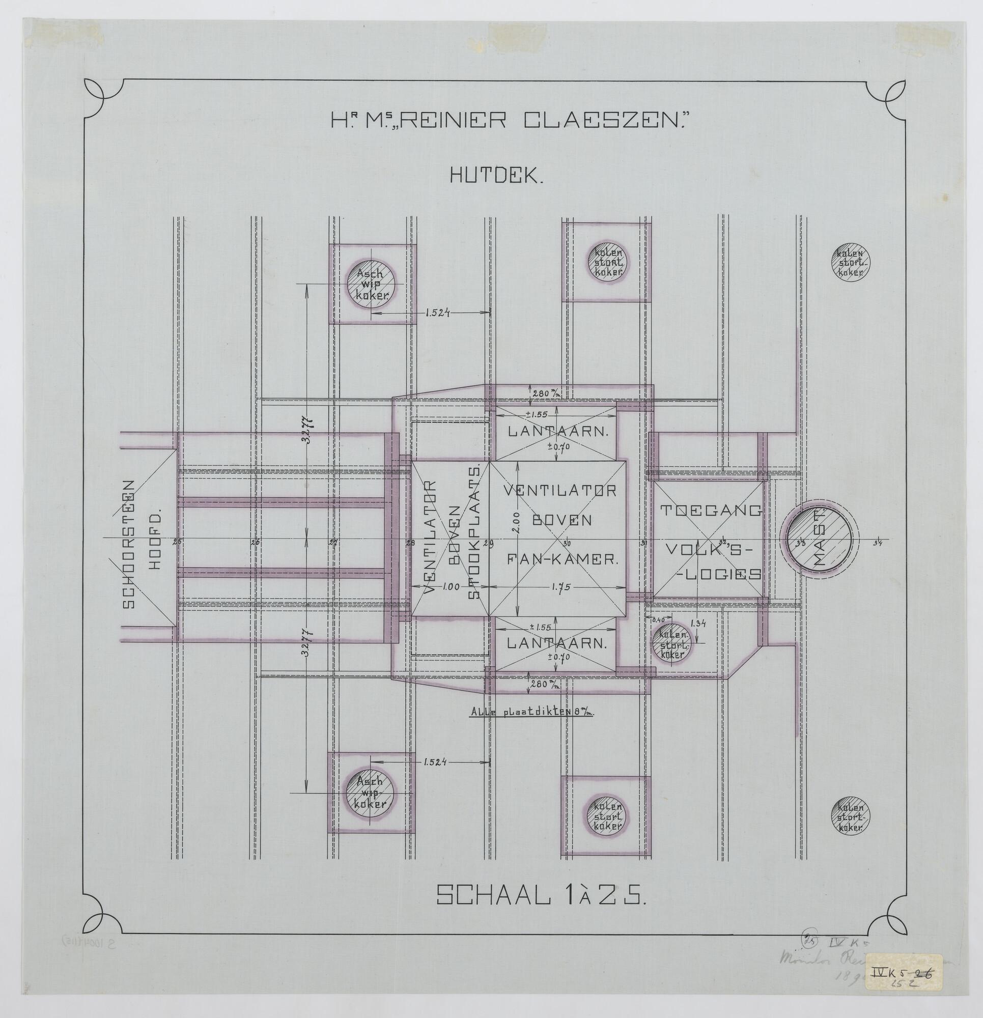 De monitor Zr.Ms. "Reinier Claeszen", 1890. Vernieuwing platen in bovendek.
