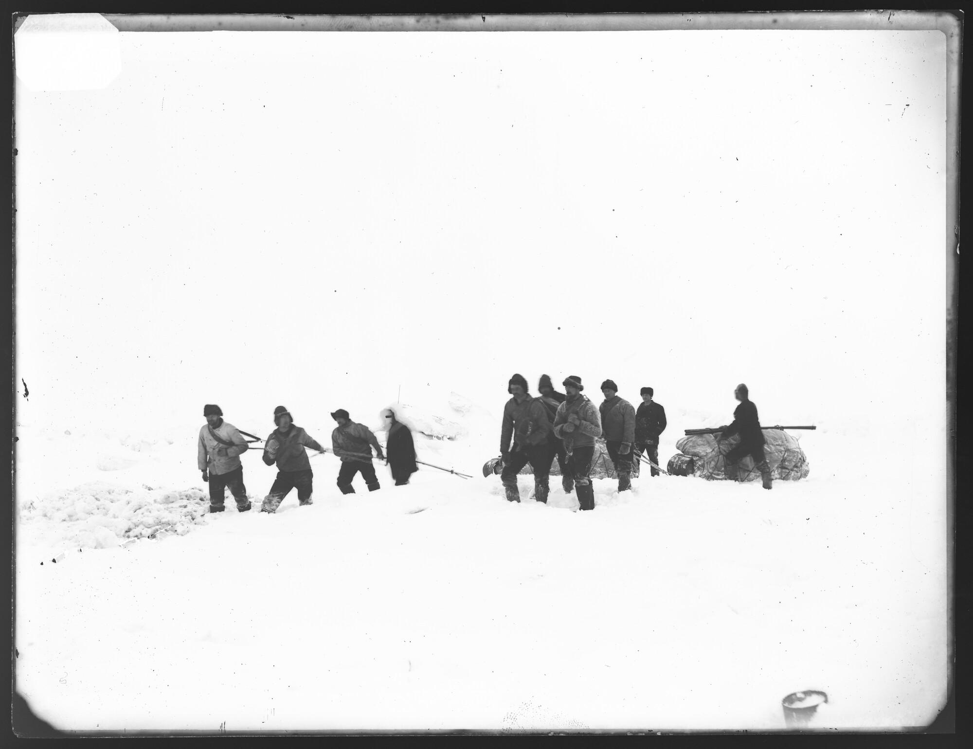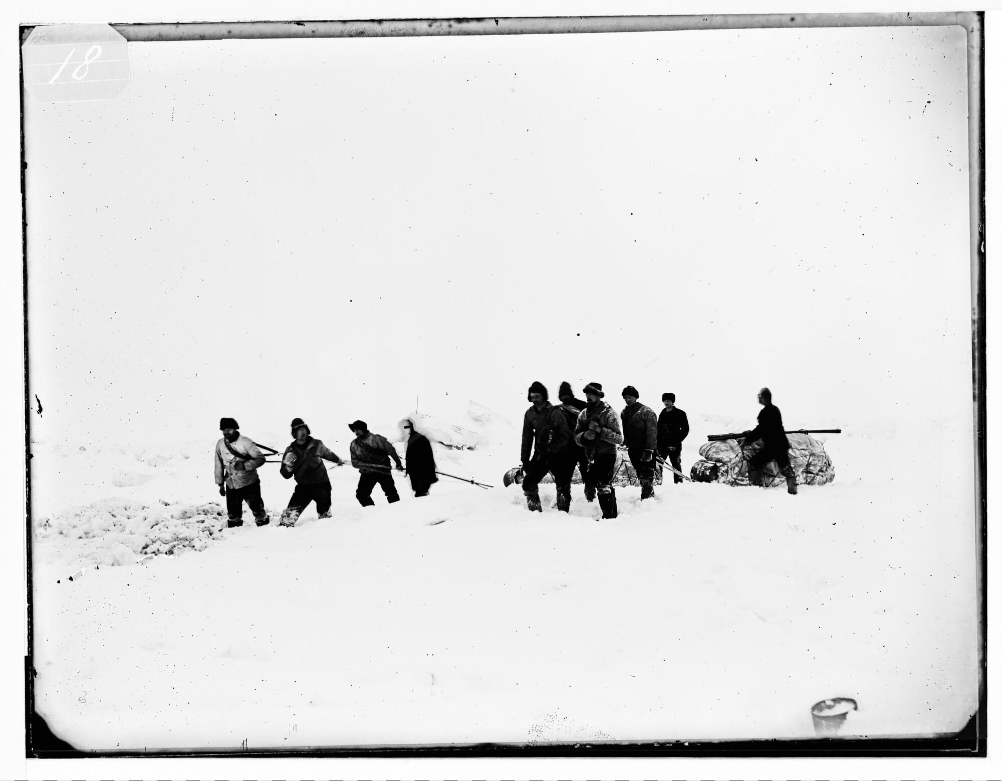 Glasnegatief van de geladen McClintock-sleden van de Dijmphna, 8 maart 1883