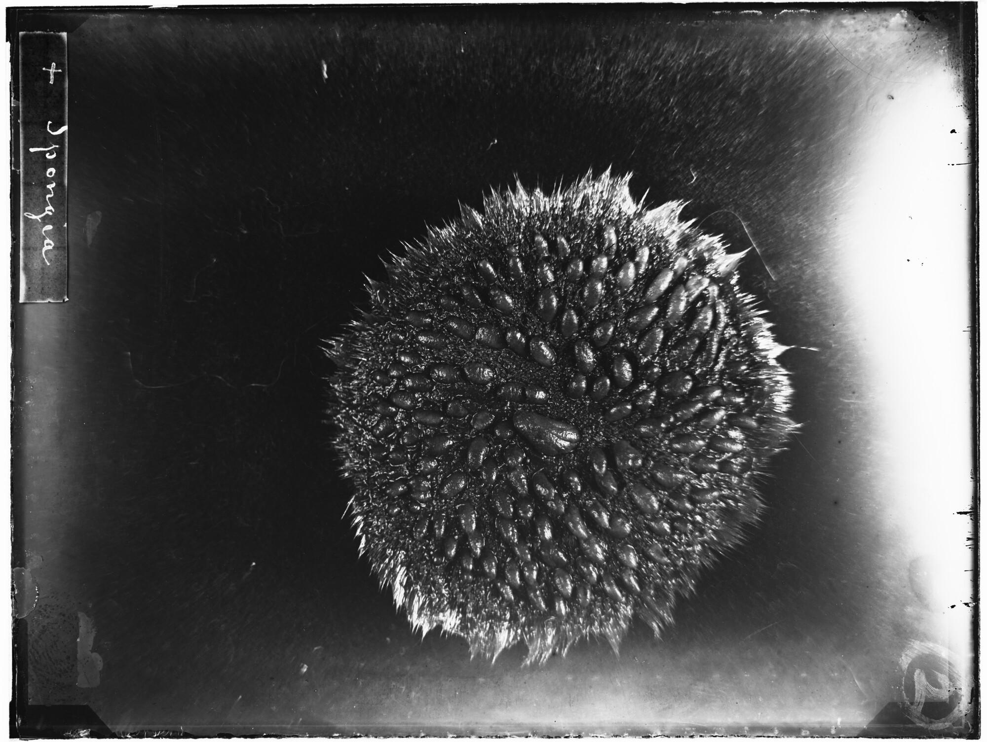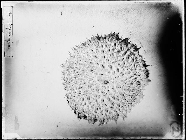 Glasnegatief van een Radiella hemisphaerica, een sponssoort uit de familie Polymastiidae, in de Karazee gevangen door Johannes Marinus Ruijs tijdens de Nederlandse Poolexpeditie van 1882 - 1883.