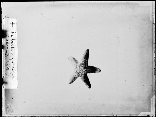 Glasnegatief van een Lophaster furcifer, een zeester uit de familie Solasteridae, in de Karazee gevangen door Johannes Marinus Ruijs tijdens de Nederlandse Poolexpeditie van 1882 - 1883.
