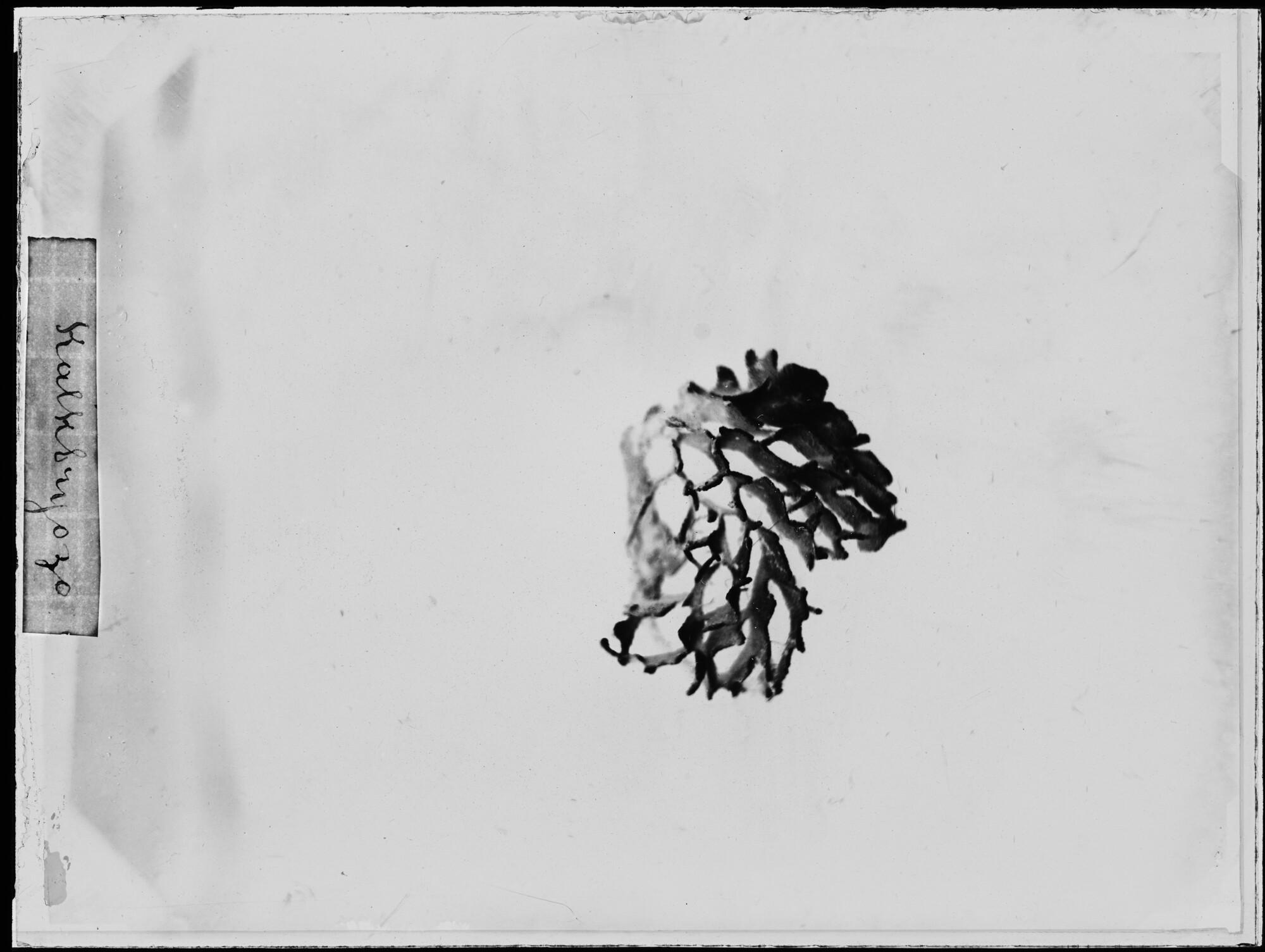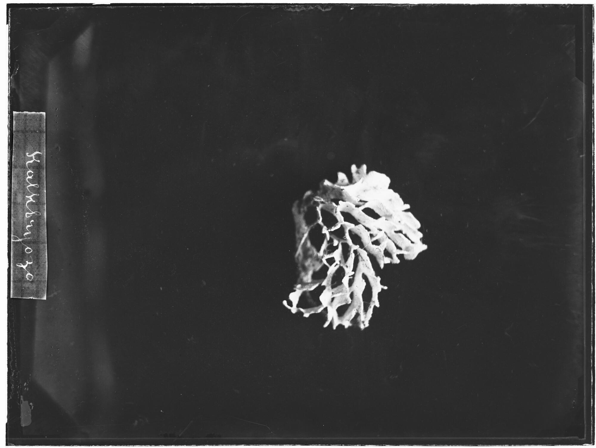 Glasnegatief van een Hornera lichenoides, een mosdiertjessoort uit de familie Horneridae, in de Karazee gevangen door Johannes Marinus Ruijs tijdens de Nederlandse Poolexpeditie van 1882 - 1883.