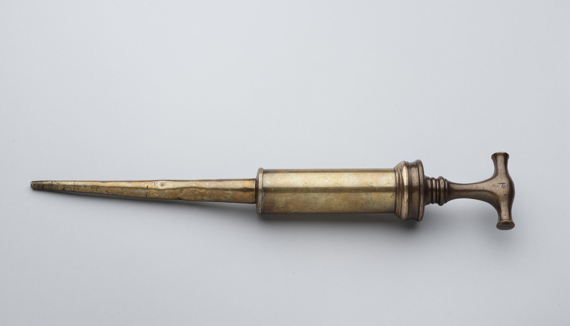 Messing oliespuit. Onderdeel van de uitrusting van ss. Christiaan Brunings.