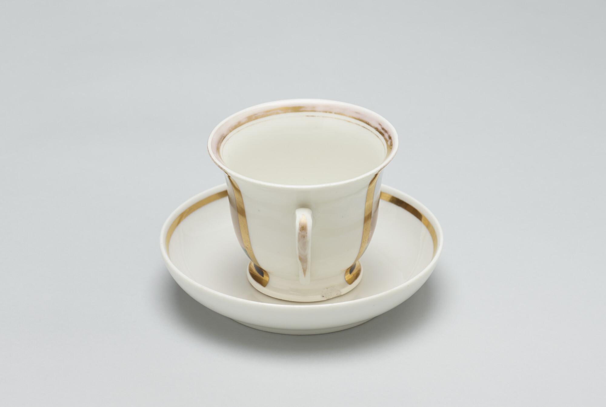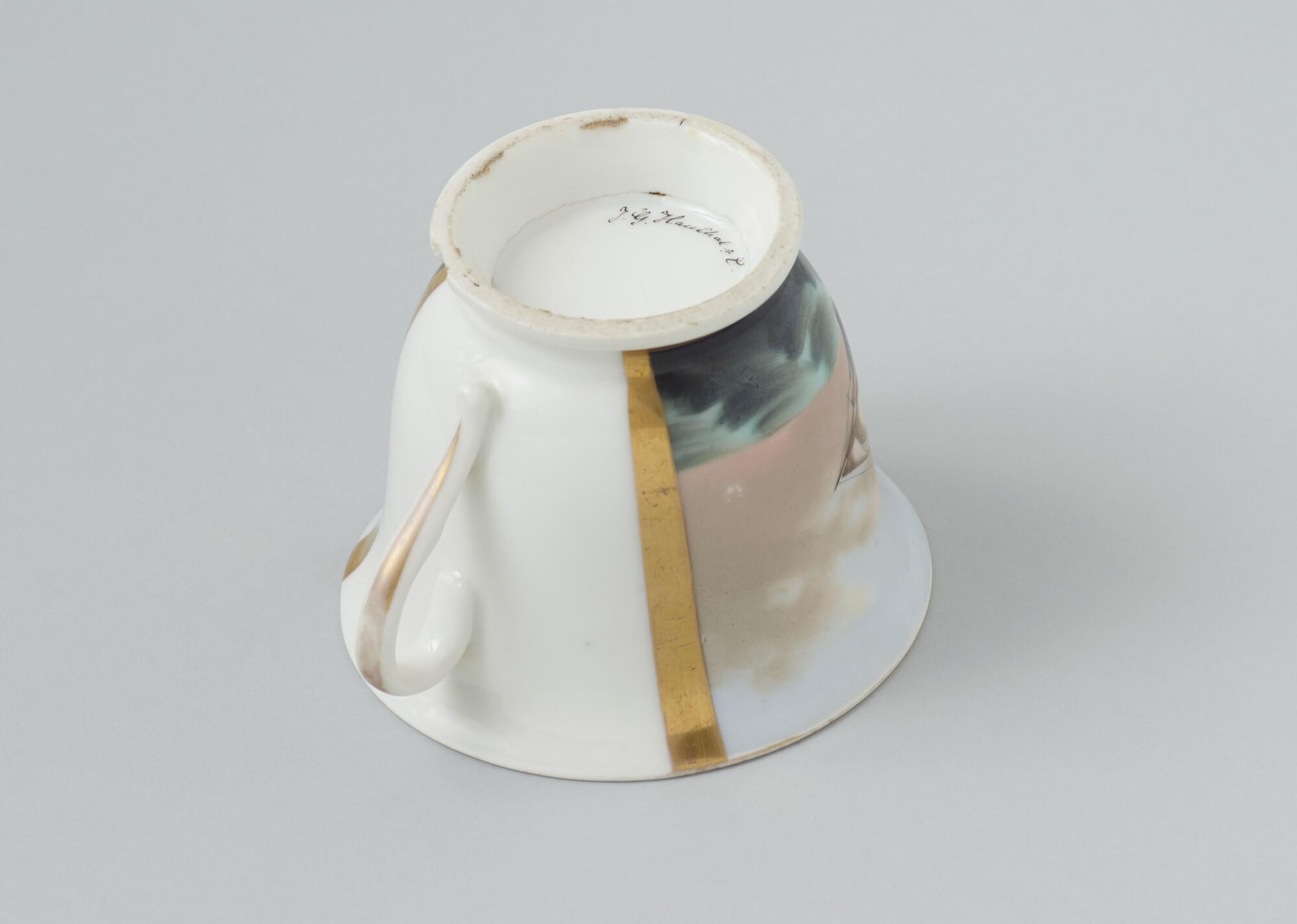 Kop en schotel, zgn. kapitänstasse voor kapitein A.R. de Lang van barkschip Jenny door J.G. Hauthal & C