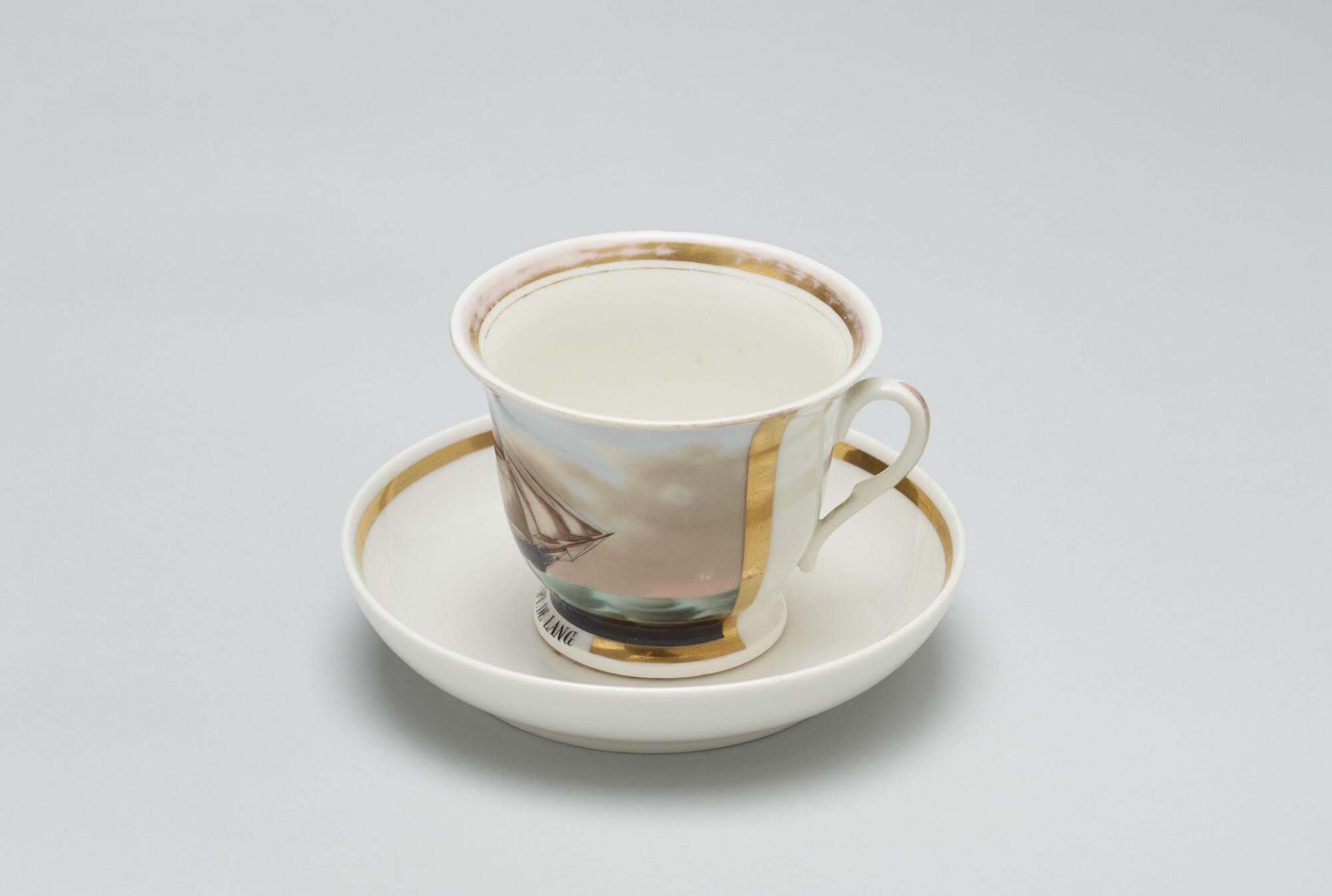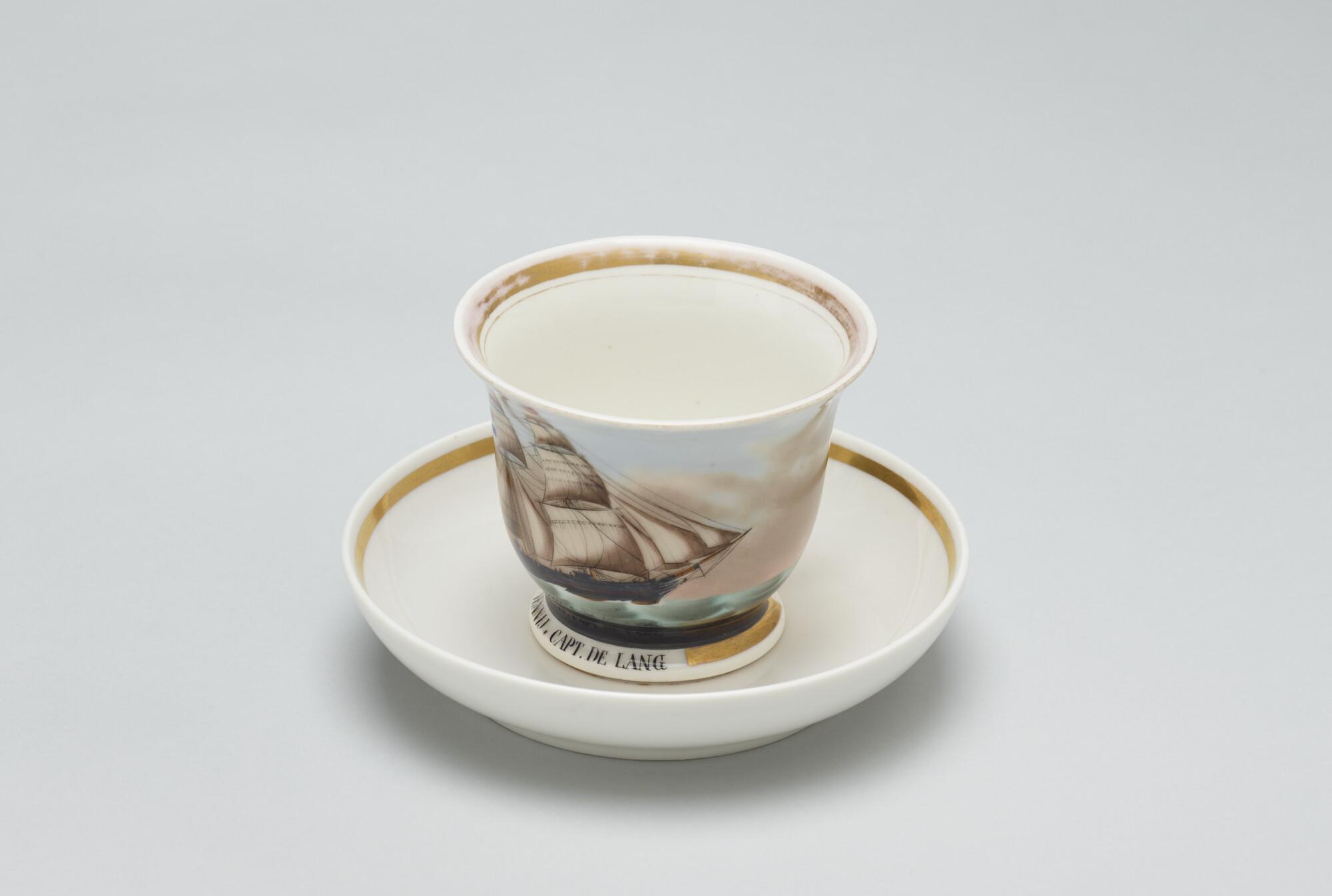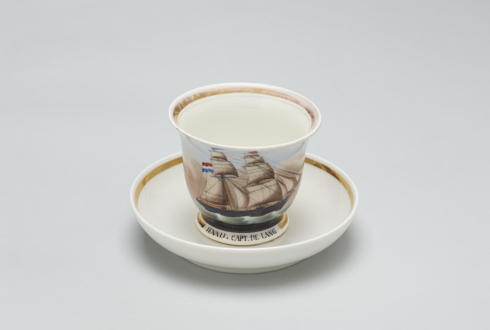 Kop en schotel, zgn. kapitänstasse voor kapitein A.R. de Lang van barkschip Jenny