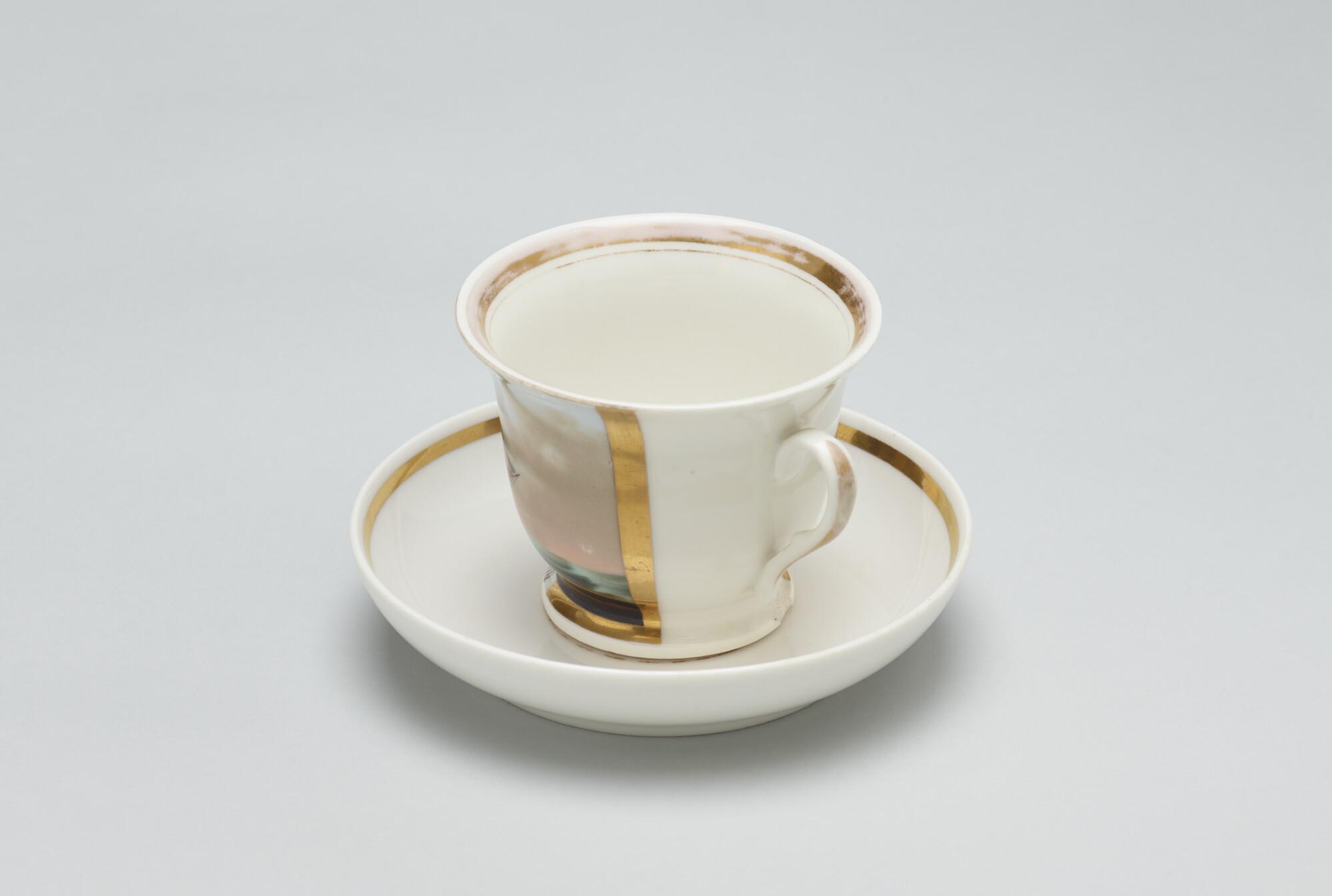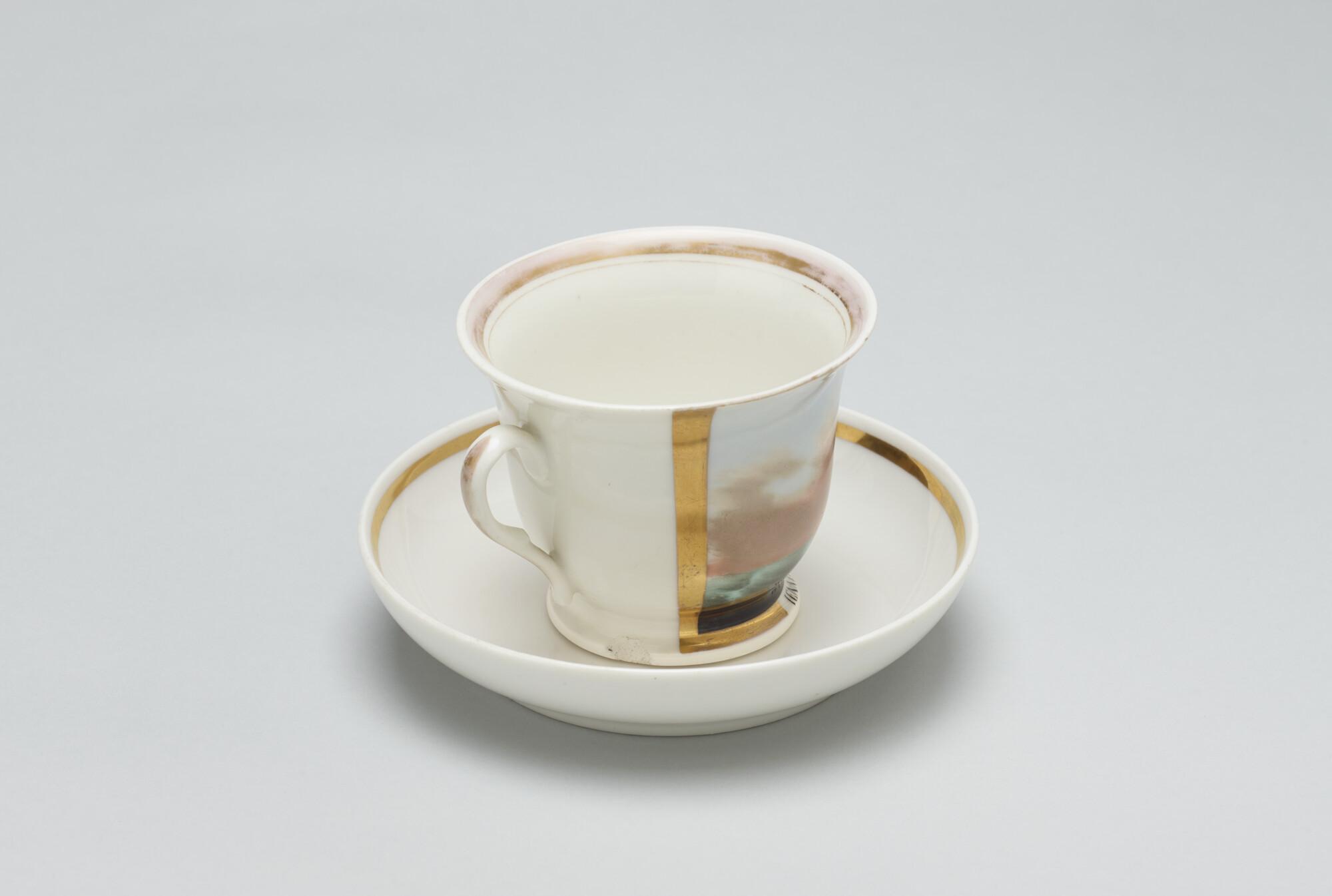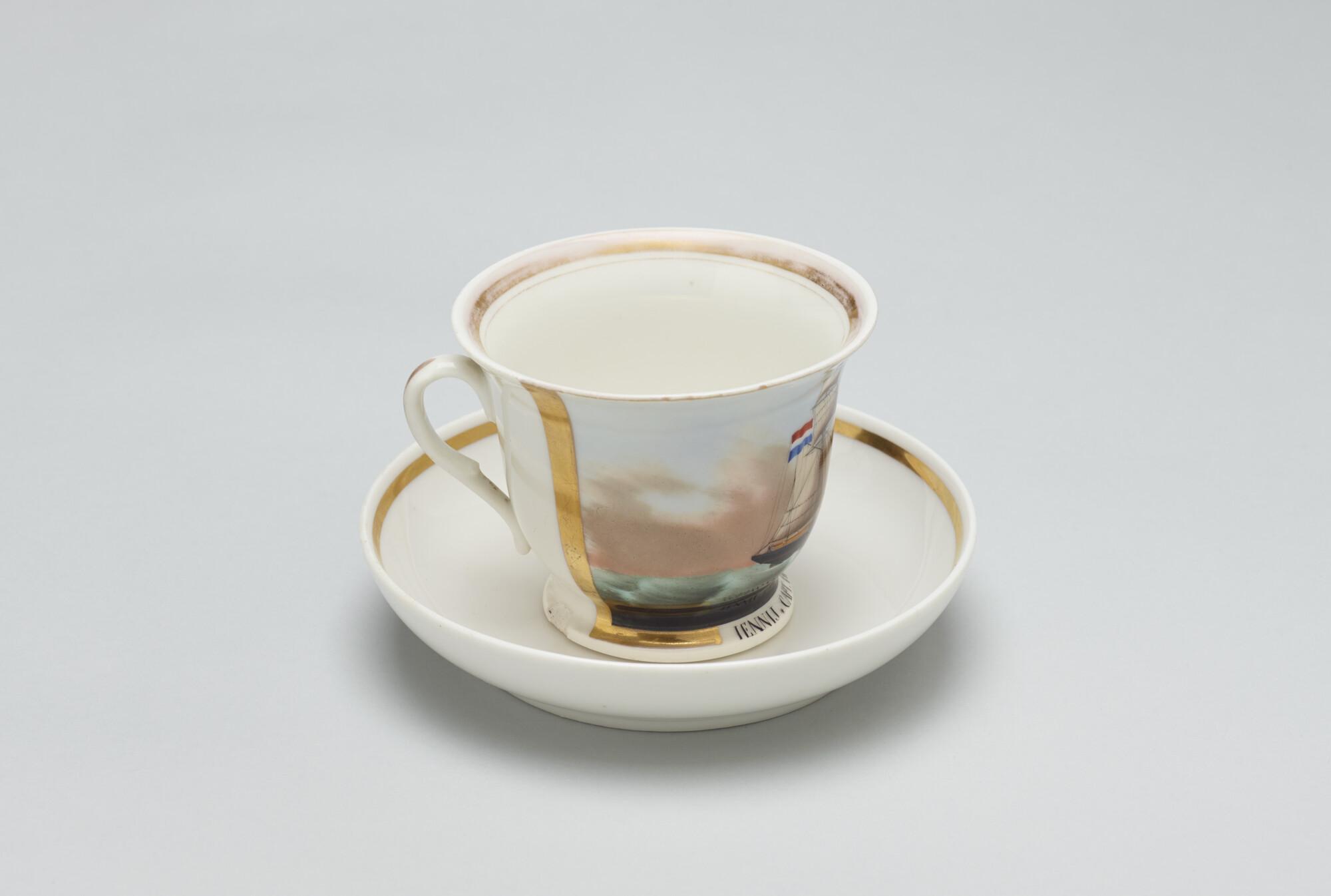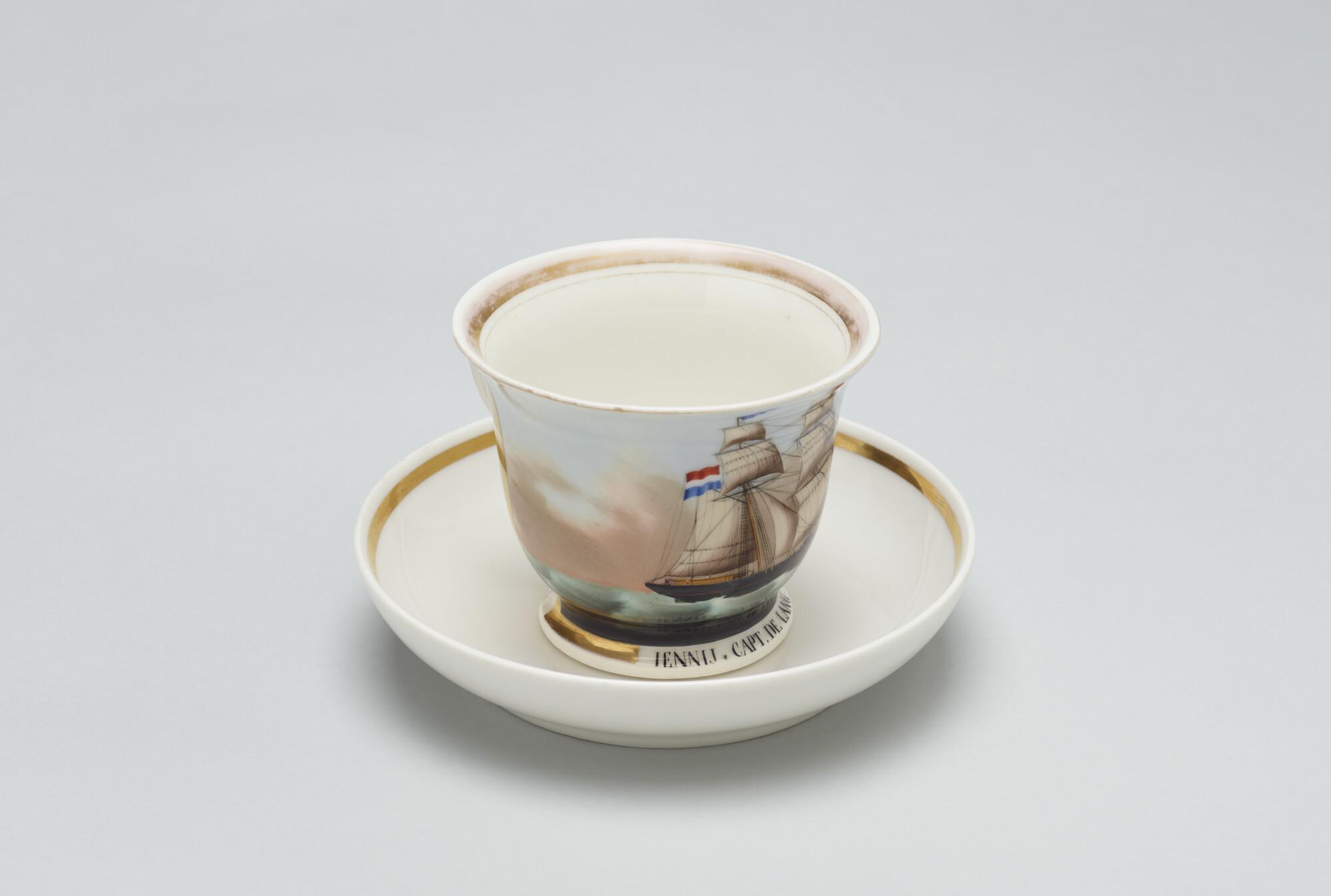 Kop en schotel, zgn. kapitänstasse voor kapitein A.R. de Lang van barkschip Jenny