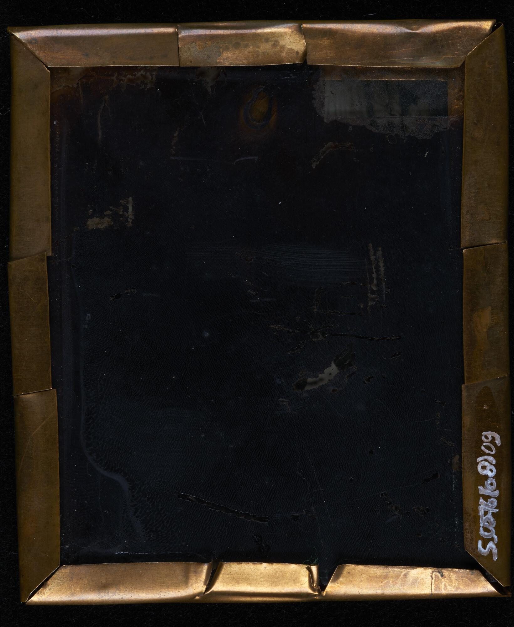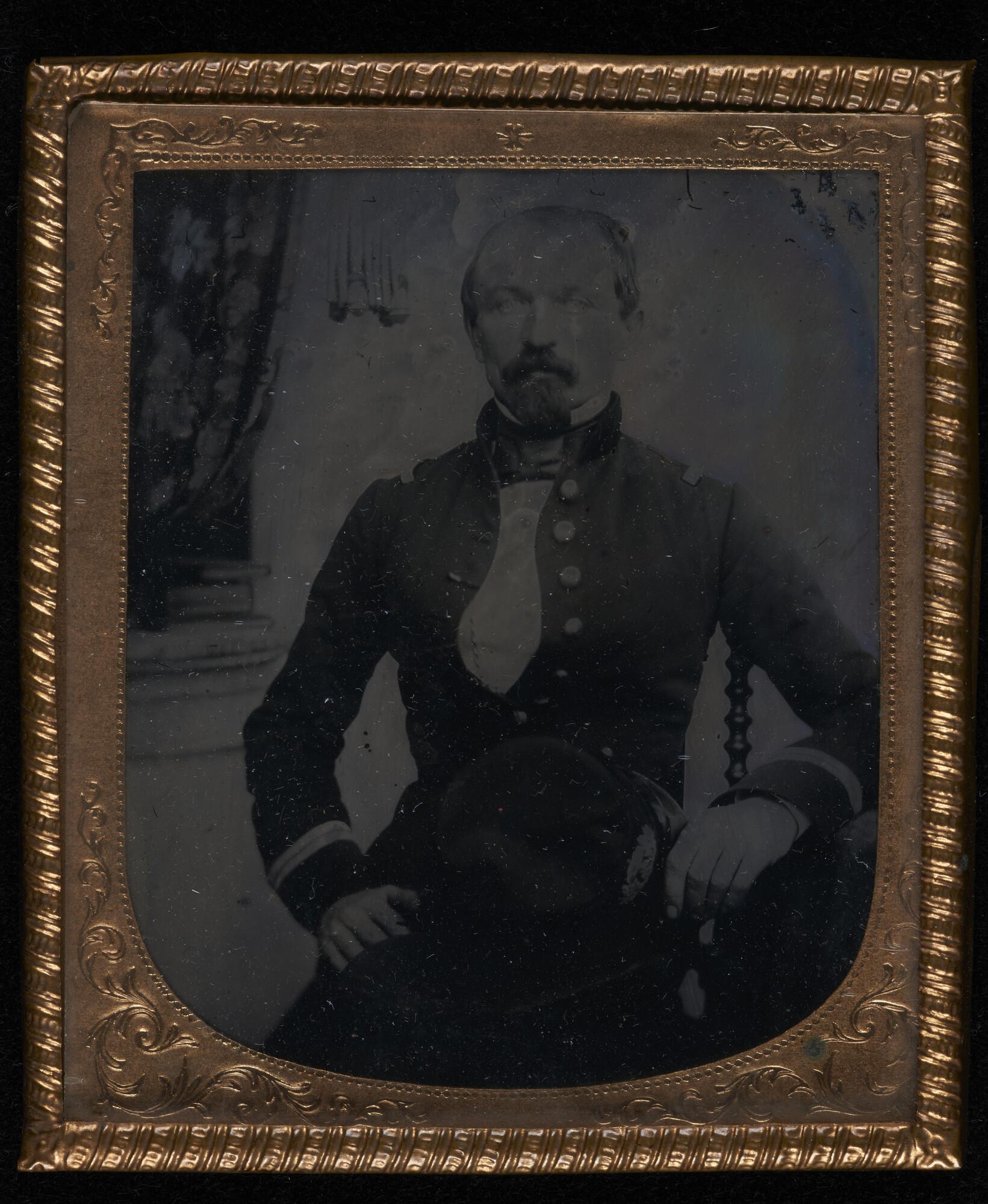Ambrotypie; een portret van een (zee)officier in een lijstje.