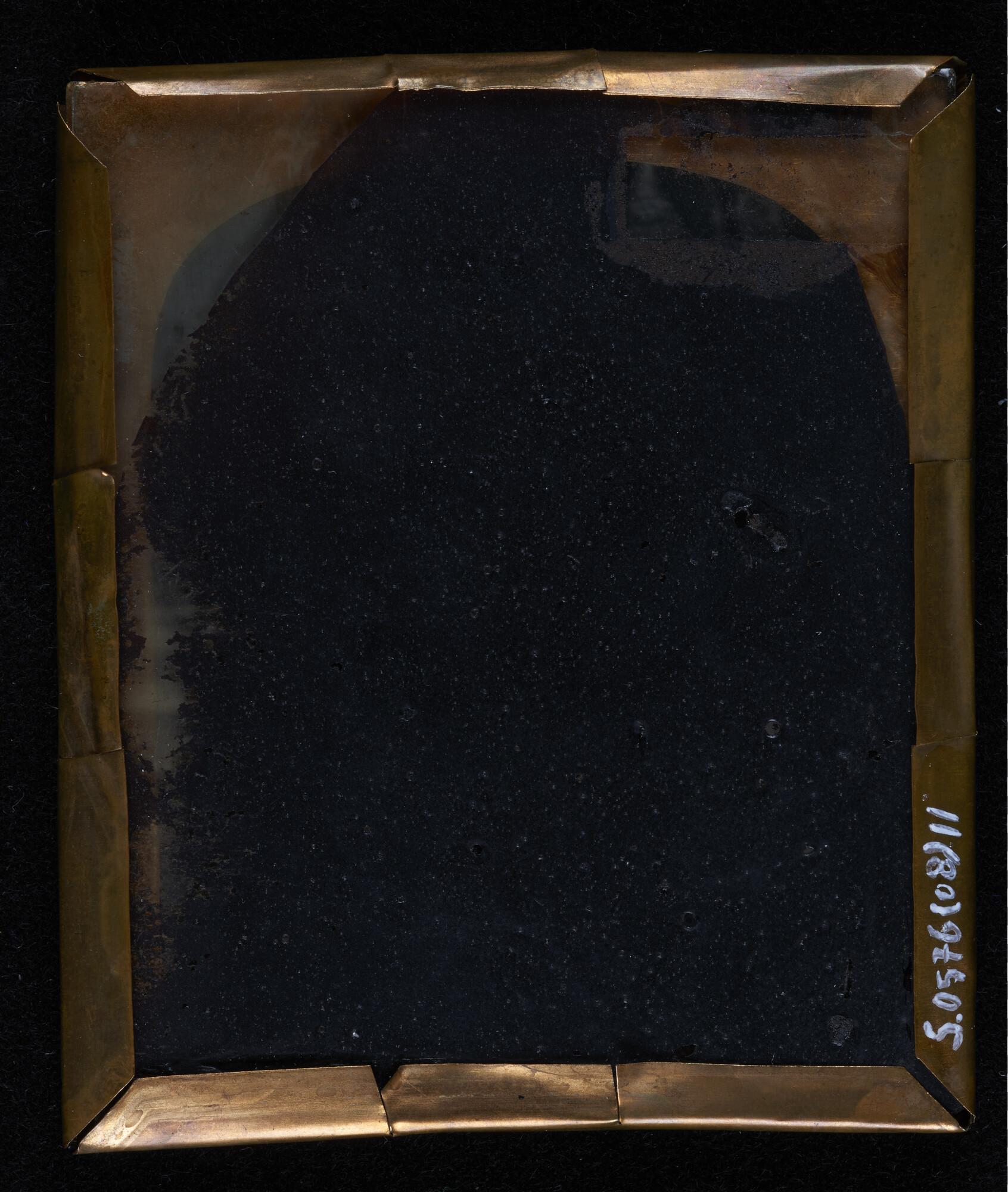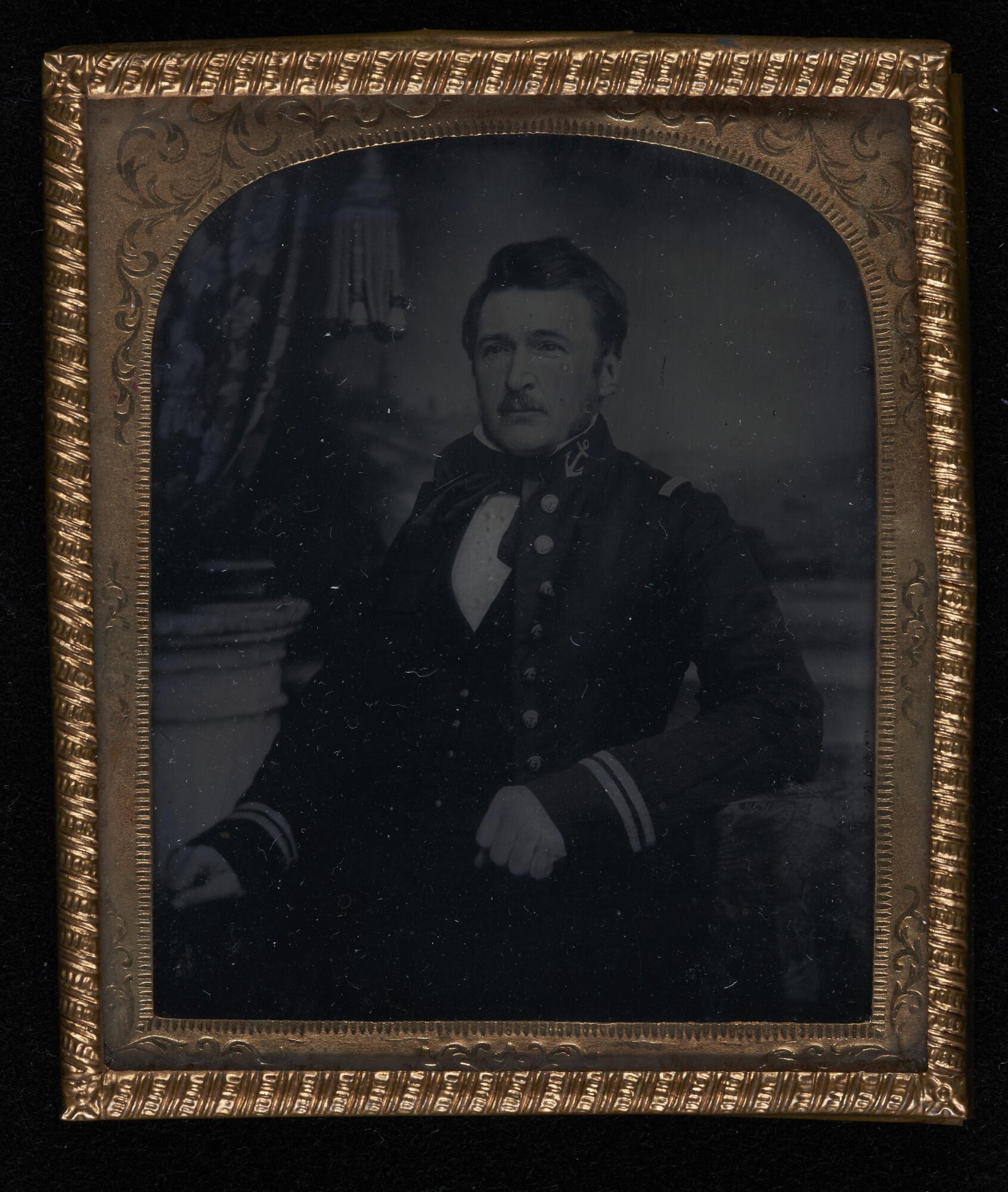 Ambrotypie; een portret van een (zee)officier in een lijstje.