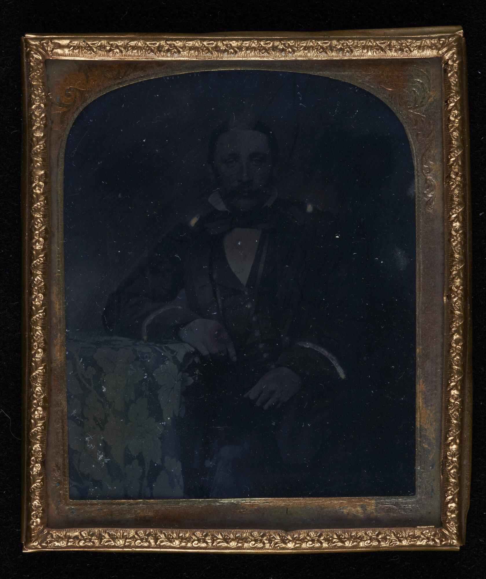 Ambrotypie; een portret van een (zee)officier in een lijstje.