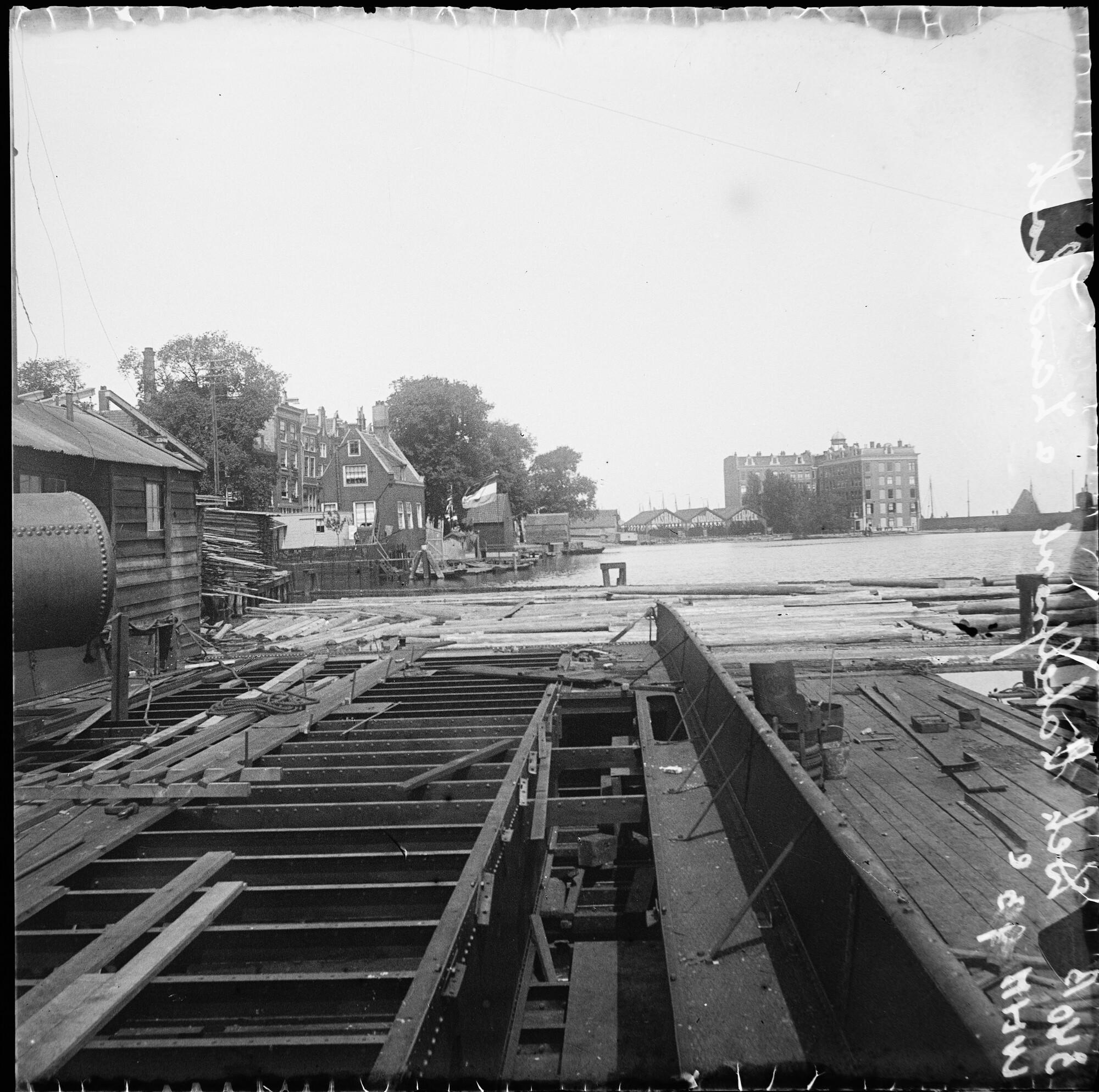 Het dek van de stoomkabelpont voor het Capelsche Veer in aanbouw te Amsterdam, juni 1895.