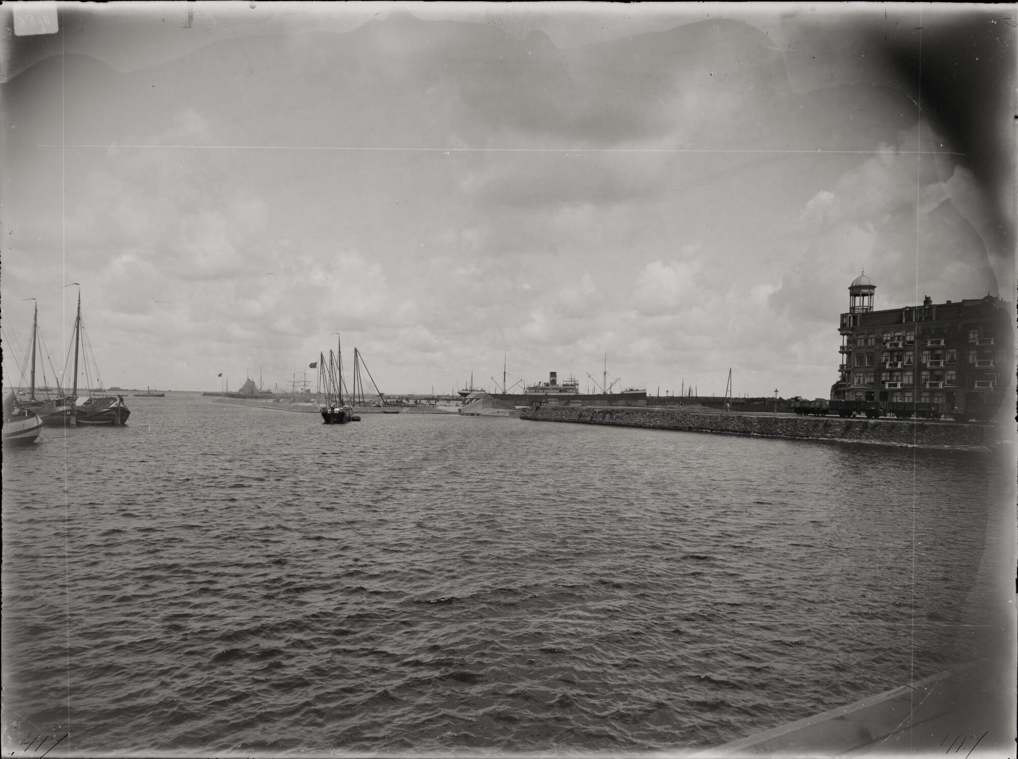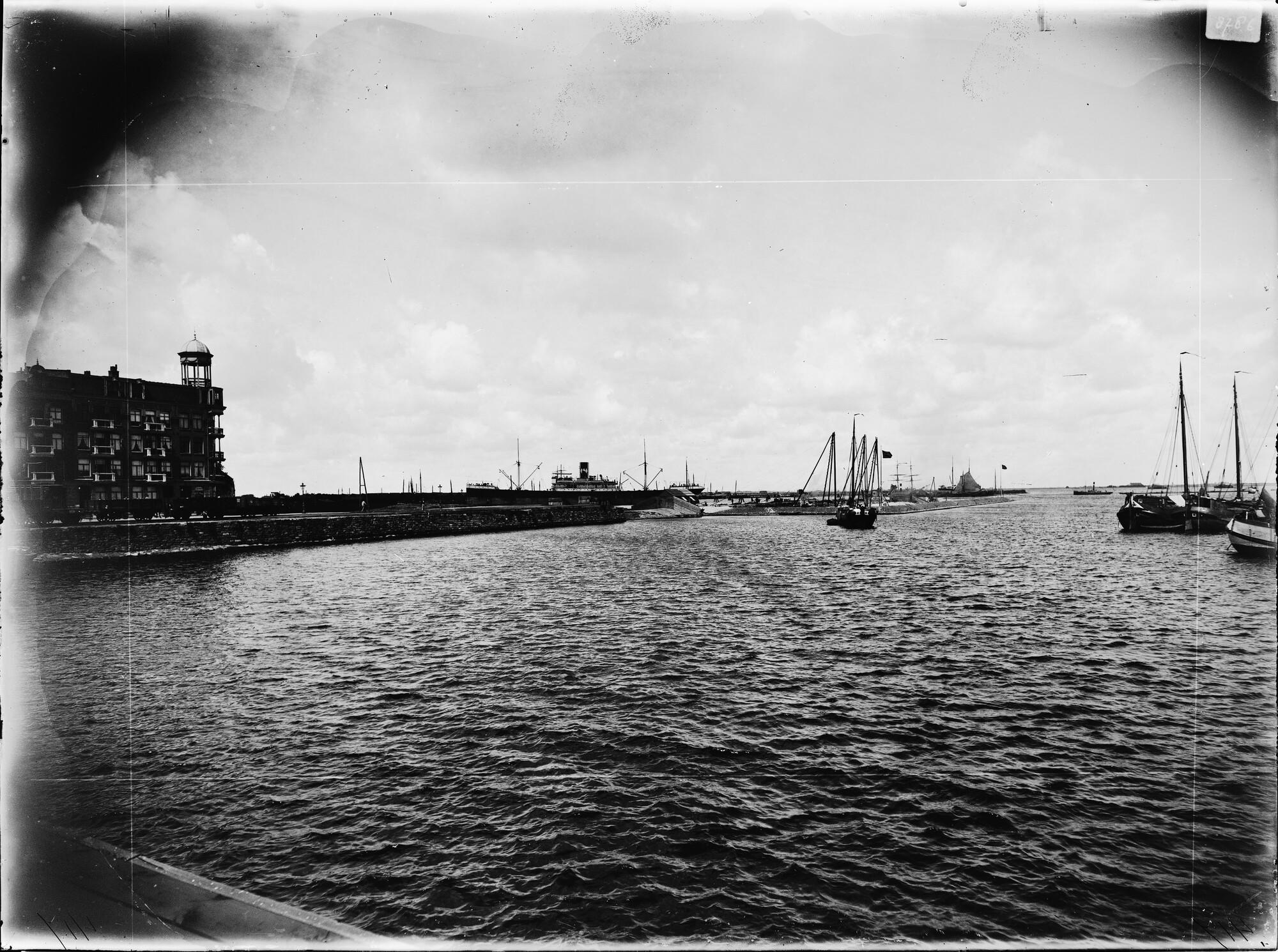 Glasnegatief van de bouw van de graansilo aan de Westerdoksdijk te Amsterdam. Foto is genomen voor de start van de bouw.