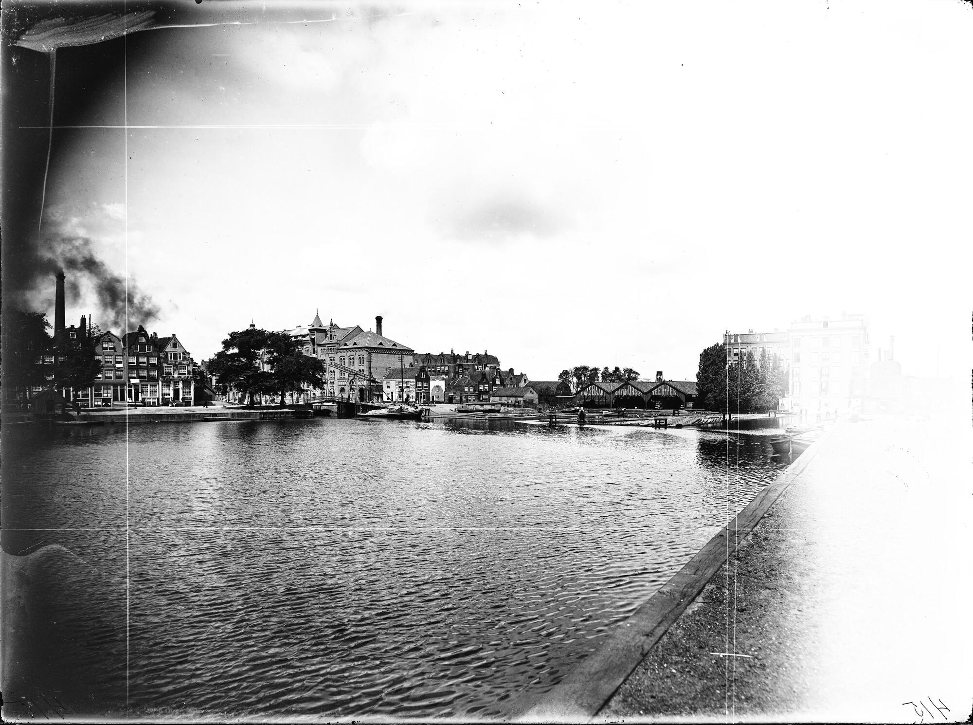 Glasnegatief met gezicht op Bickerseiland vanaf het Westerdok gezien.